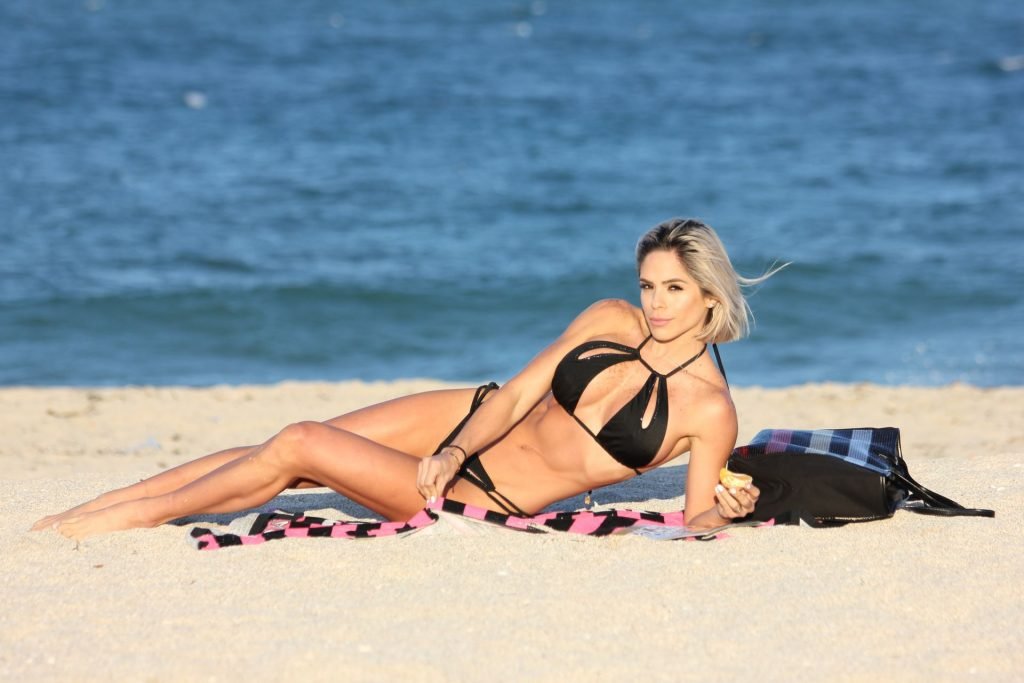 La estrella mundial del fitness es conocida en todo el mundo por sus abdominales y su cuerpo perfecto en bikini. Se tomó un tiempo de su apretada agenda de viajes para tomar el sol en la playa de Miami, 23/04/2019.
