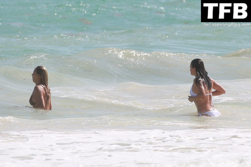 Michelle Rodriguez muestra un poco demasiado en bikini blanco mientras vacaciona con una rubia misteriosa en Tulum, México, 28/12/2021.