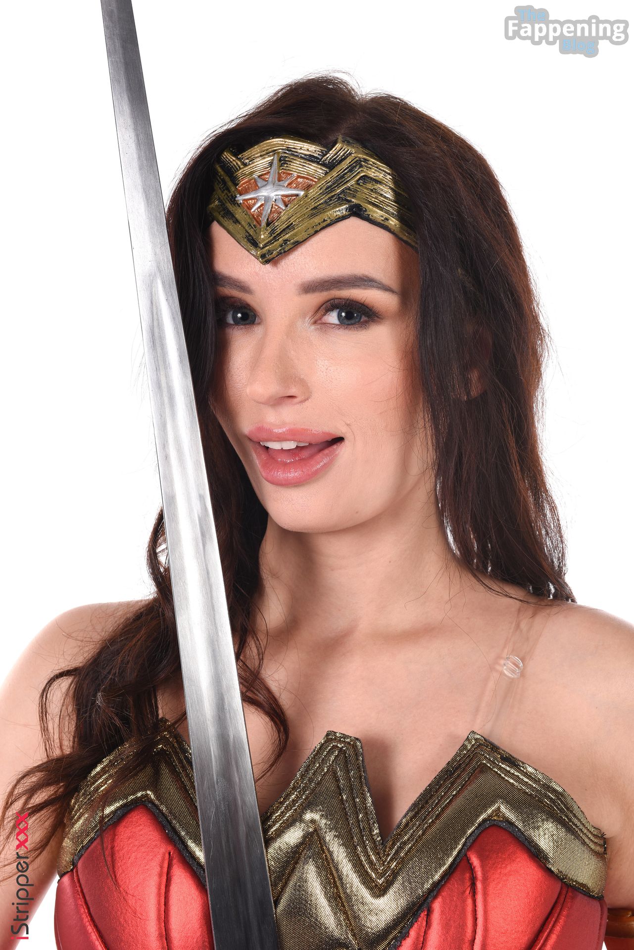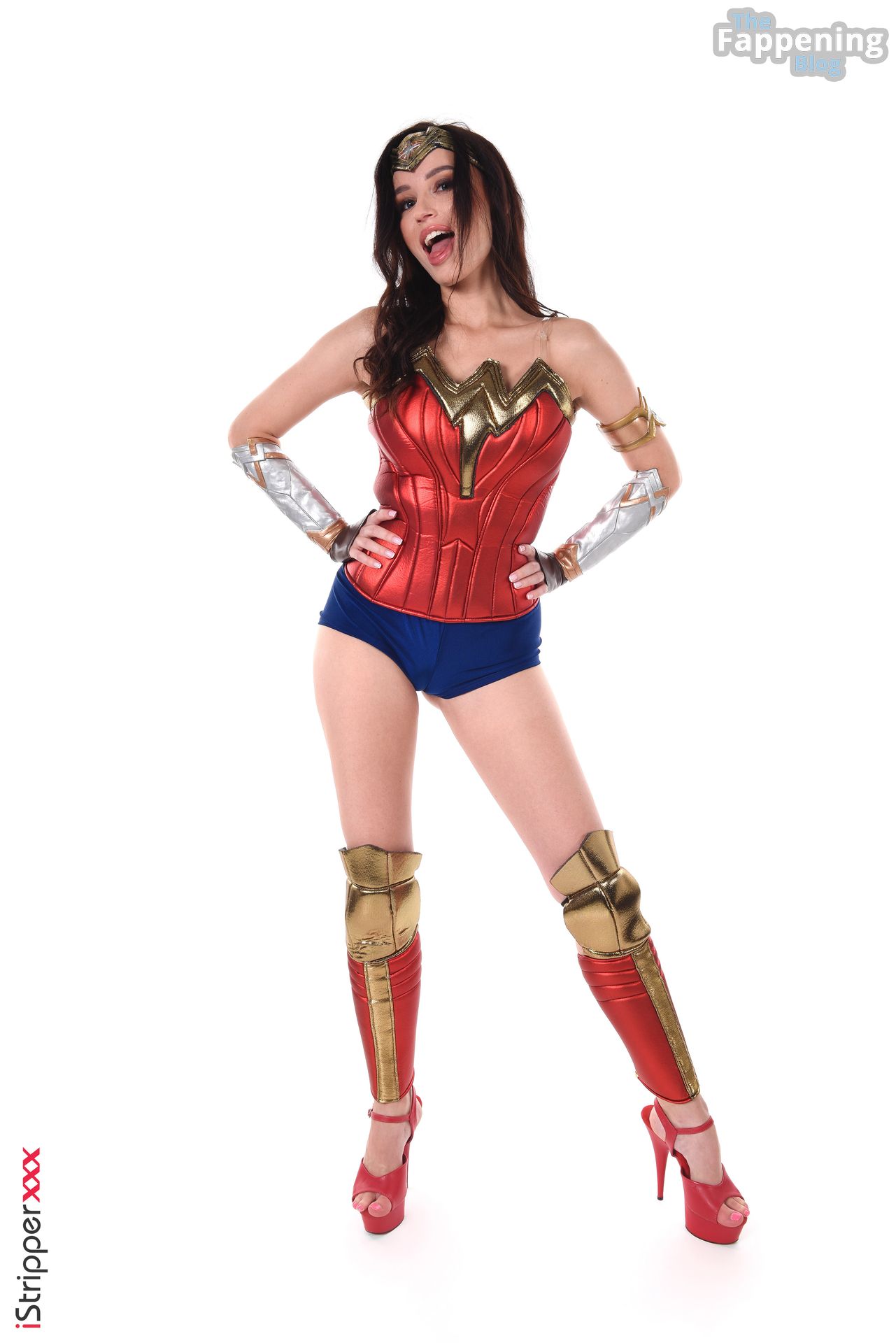 La Mujer Maravilla completamente desnuda en esta foto ardiente de Milena Ray, complaciéndose con un vibrador rojo y complaciendo a los admiradores con su cuerpo desnudo.