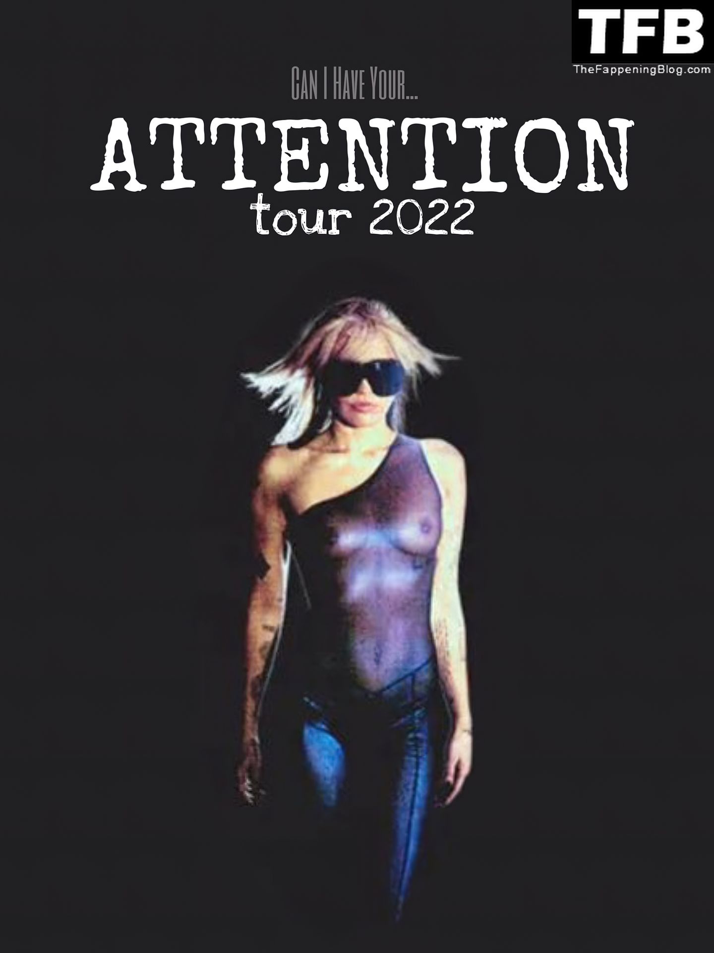 La estrella de The Fappening Miley Cyrus promociona su nueva gira mientras posa con un body transparente sin sostén, mostrando sus pechos desnudos – Instagram, 07/03/2022.