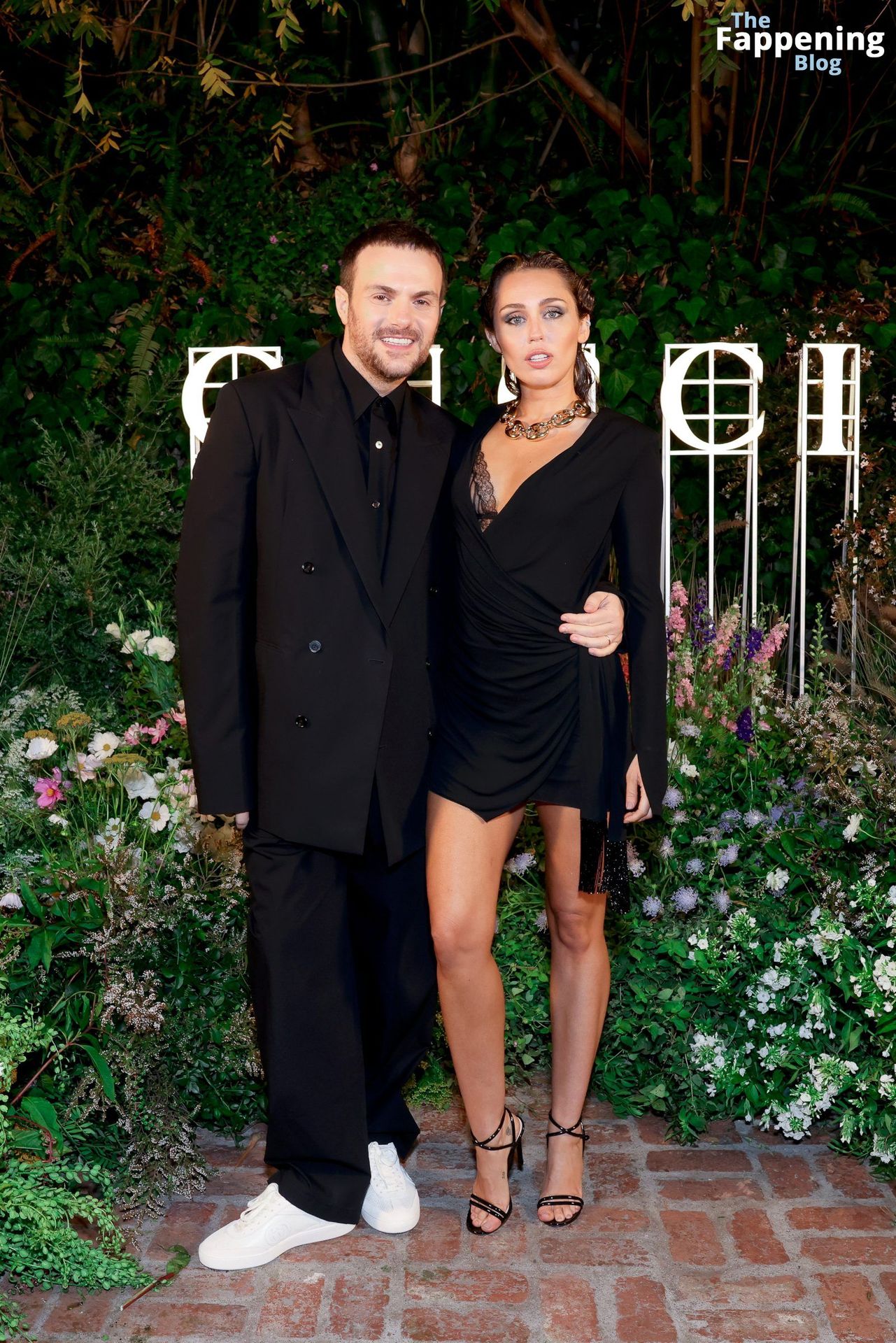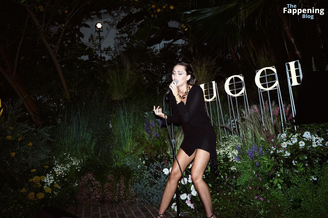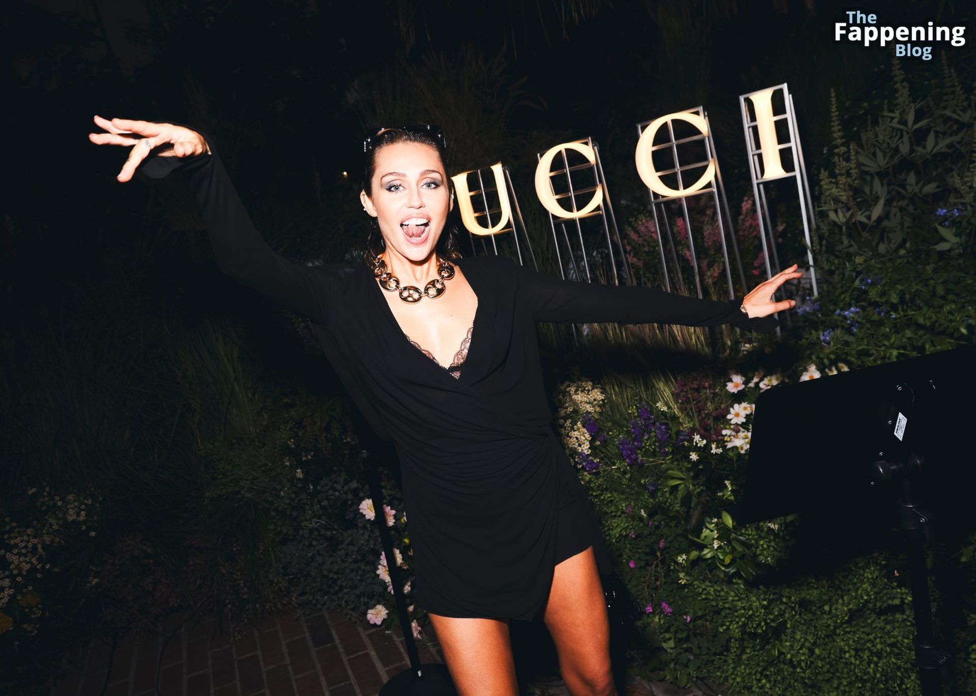 Miley Cyrus deslumbra con un vestido negro, mostrando sus hermosas piernas en la Gucci Summer Celebration en Los Ángeles.
