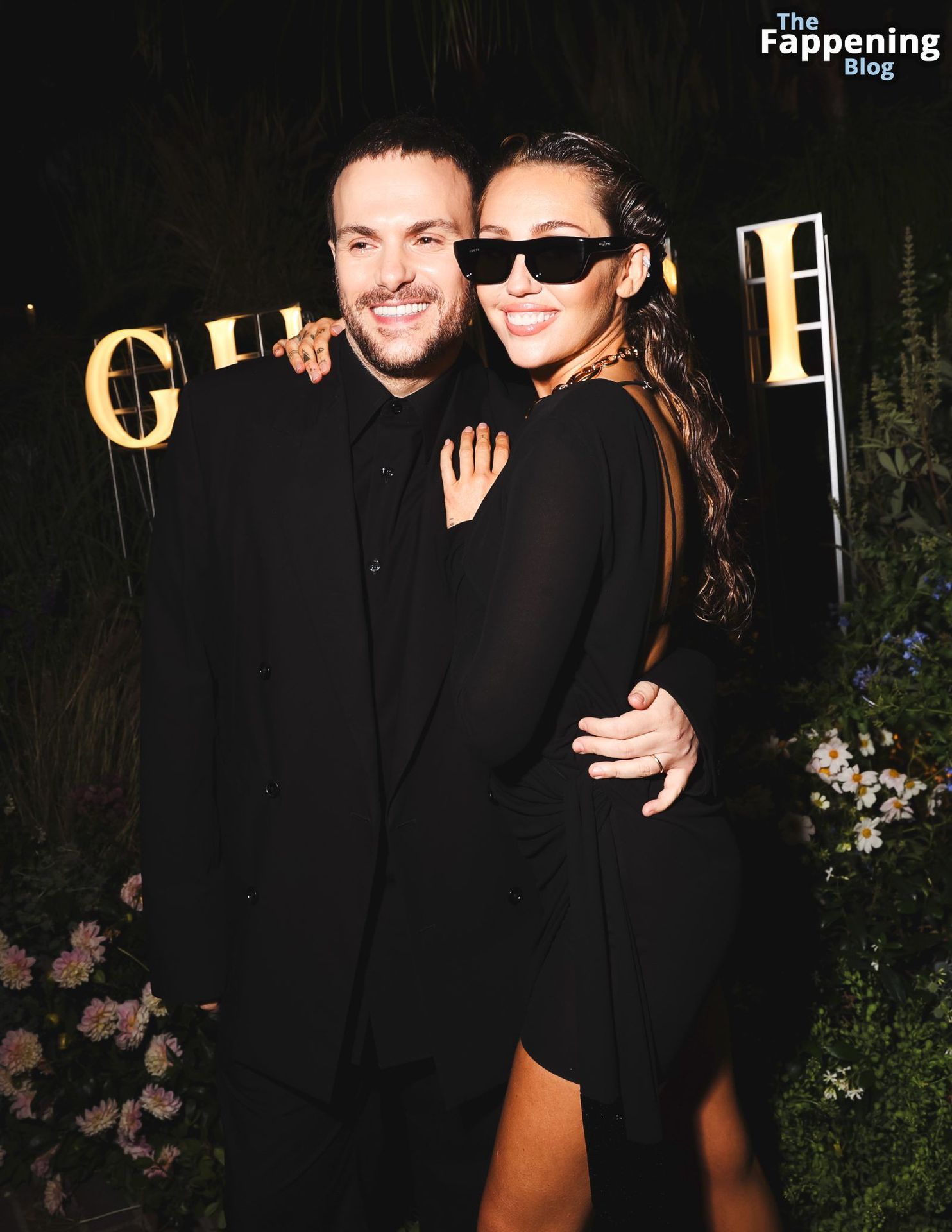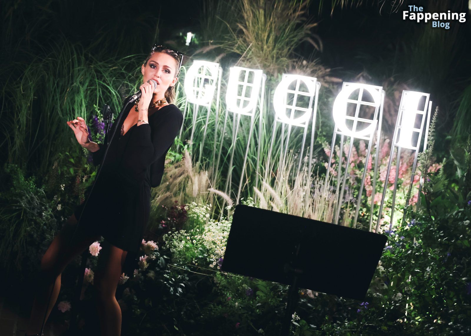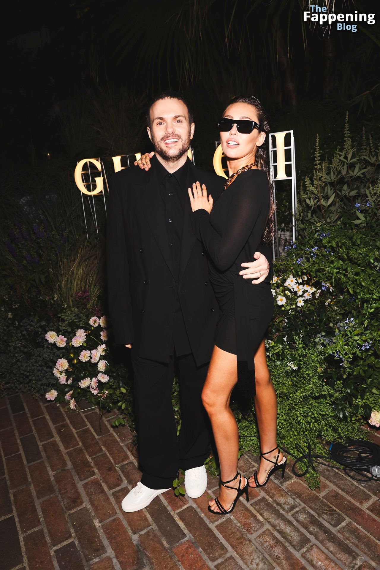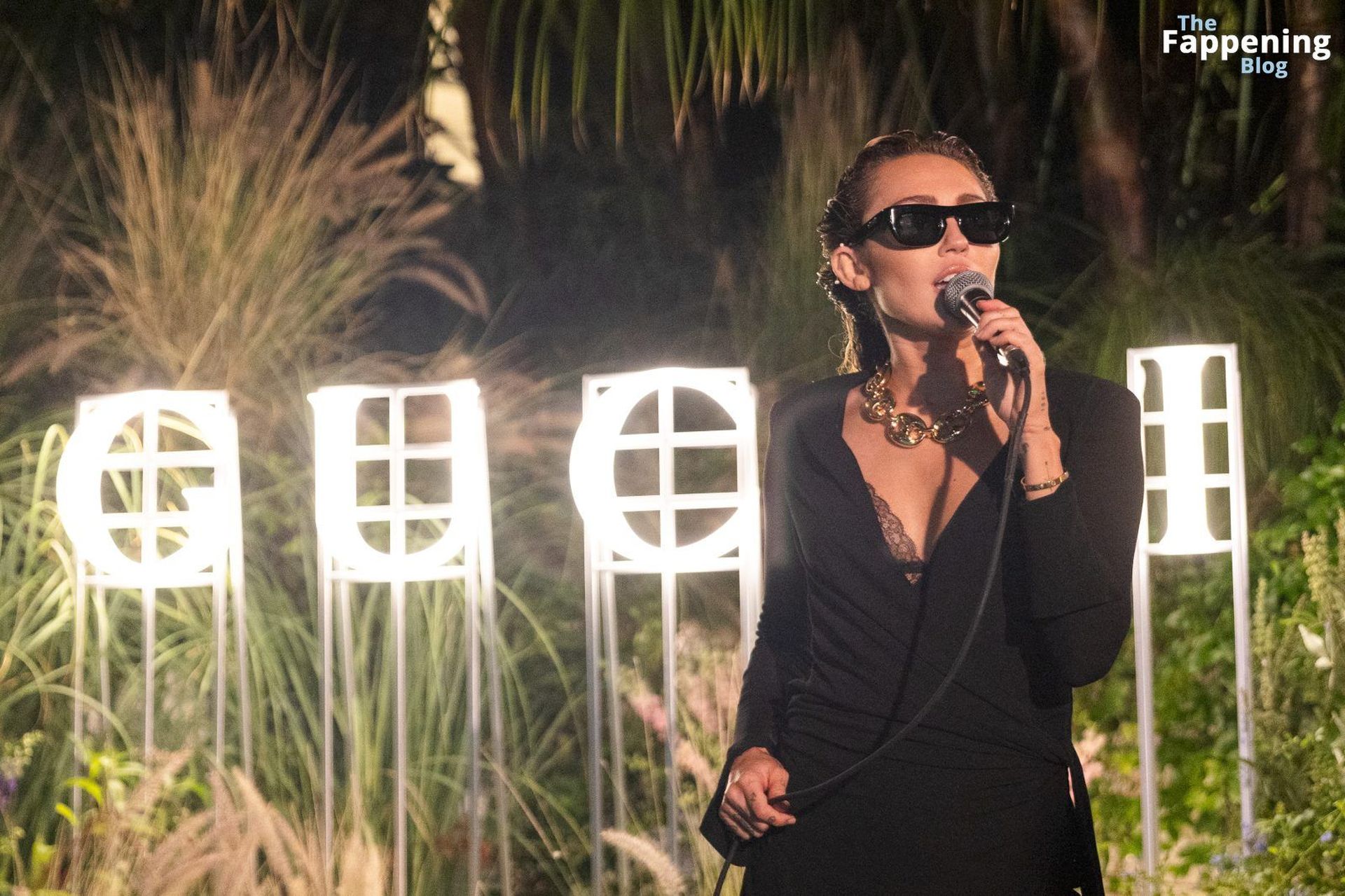 Miley Cyrus deslumbra con un vestido negro, mostrando sus hermosas piernas en la Gucci Summer Celebration en Los Ángeles.