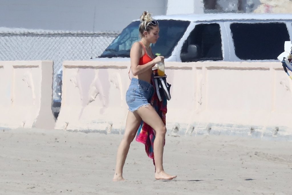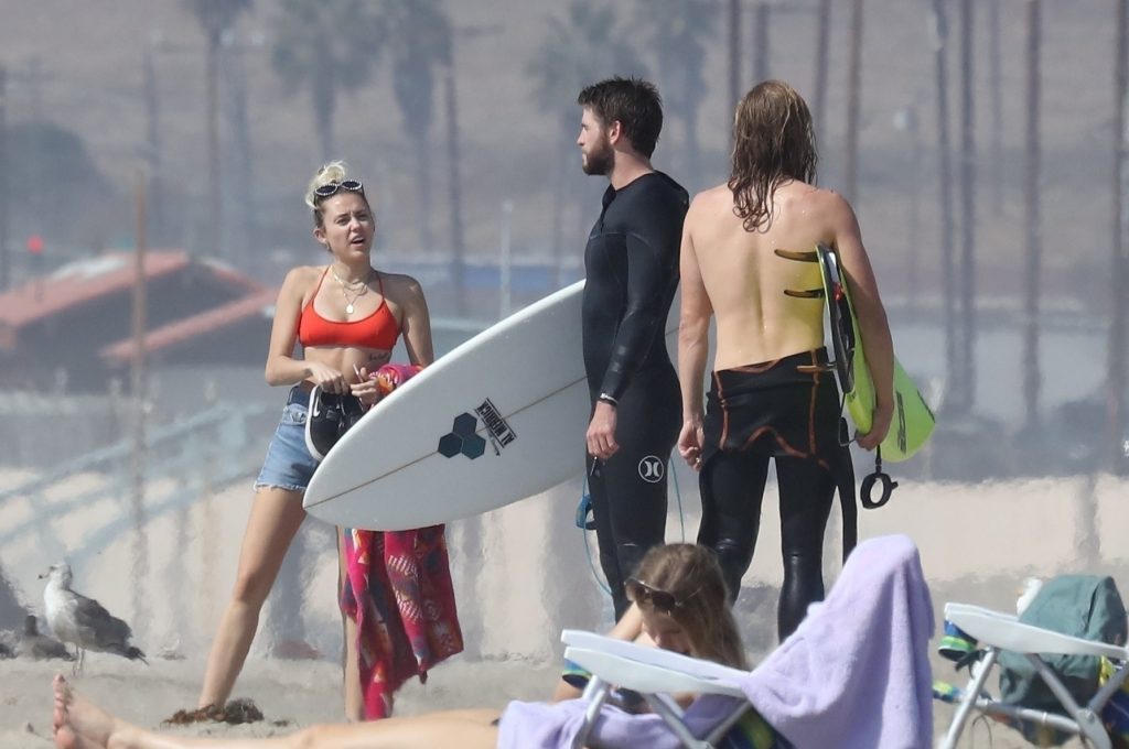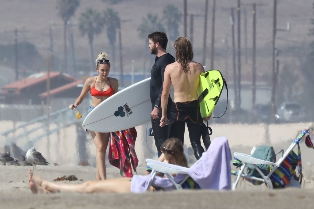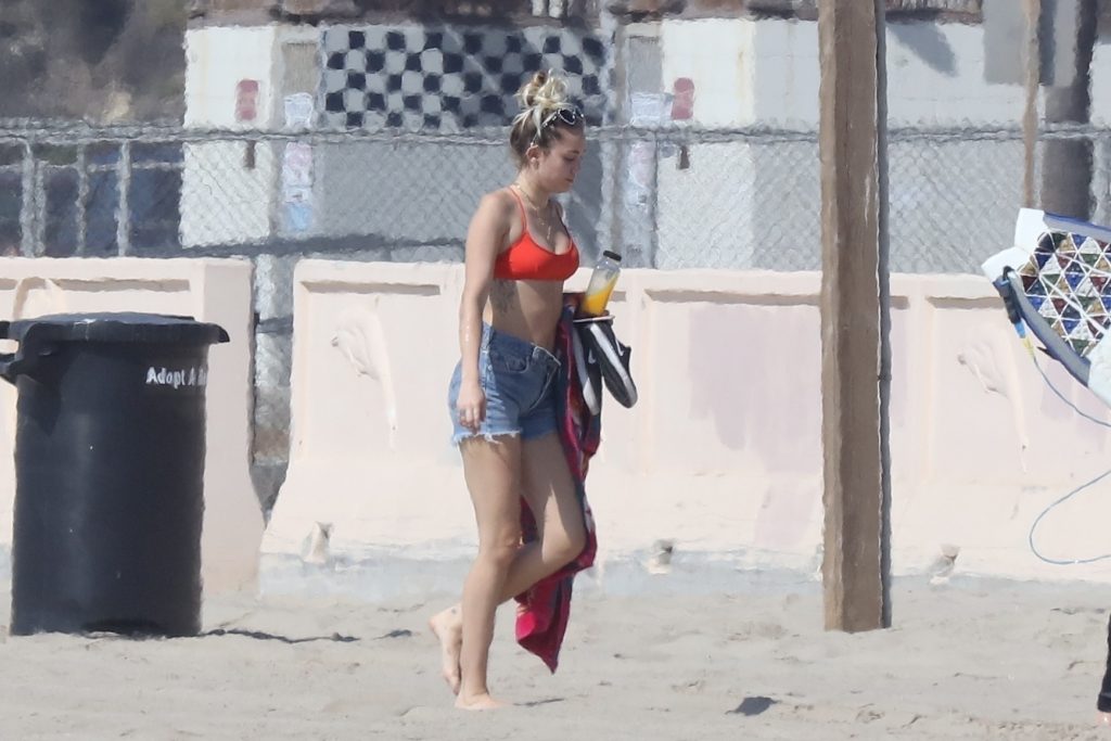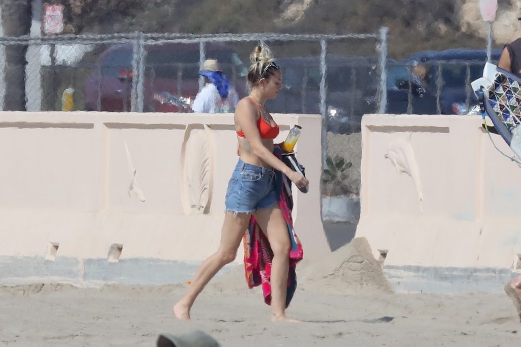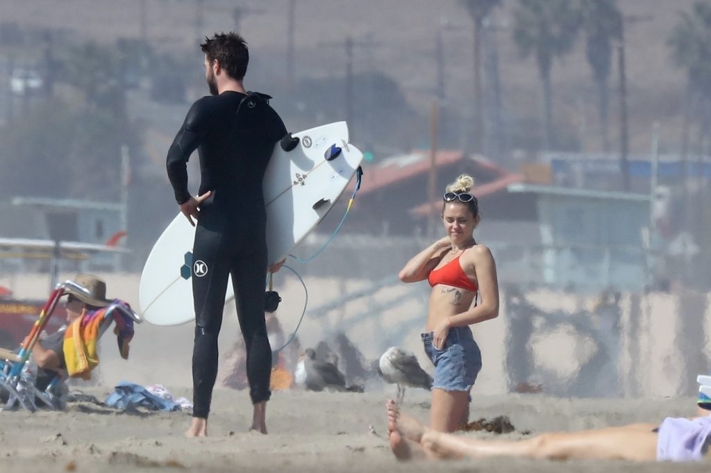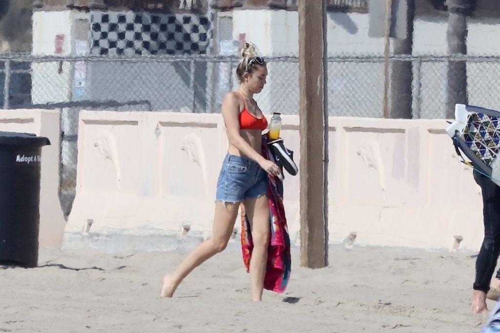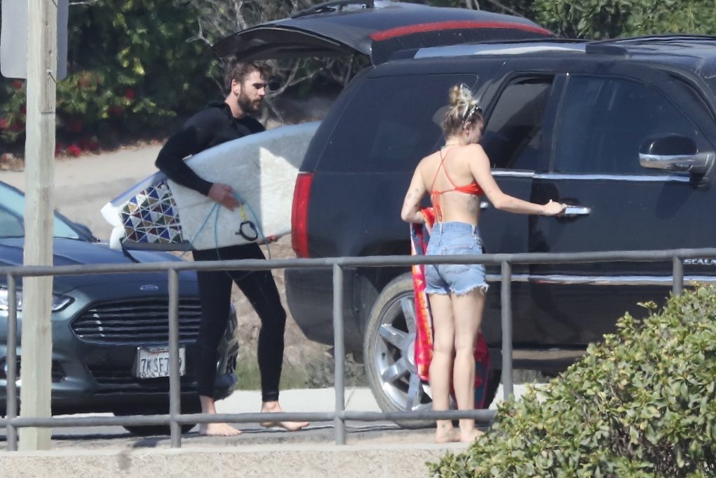 Miley Cyrus, 24, se relajó con un coqueto bikini rojo mientras observaba a su novio Liam Hemsworth enfrentarse a las olas en Malibu, 13/10/2017. La pareja pasó un tiempo descansando en la playa antes de irse juntos. Miley se puso unos shorts de mezclilla sobre su conjunto rojo mientras Liam se quitaba el traje de neopreno antes de partir.