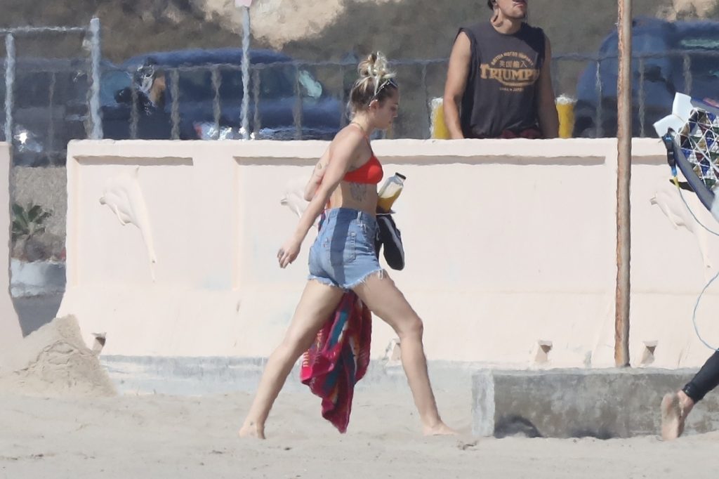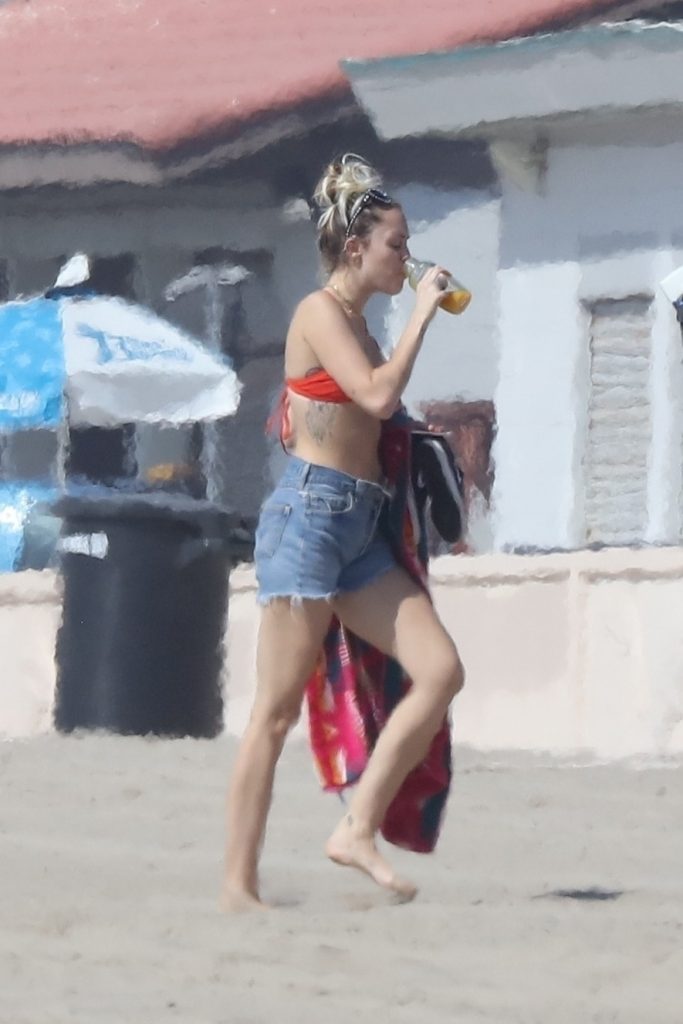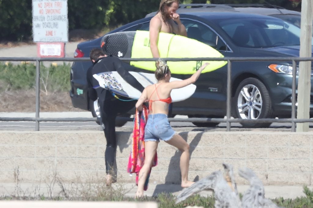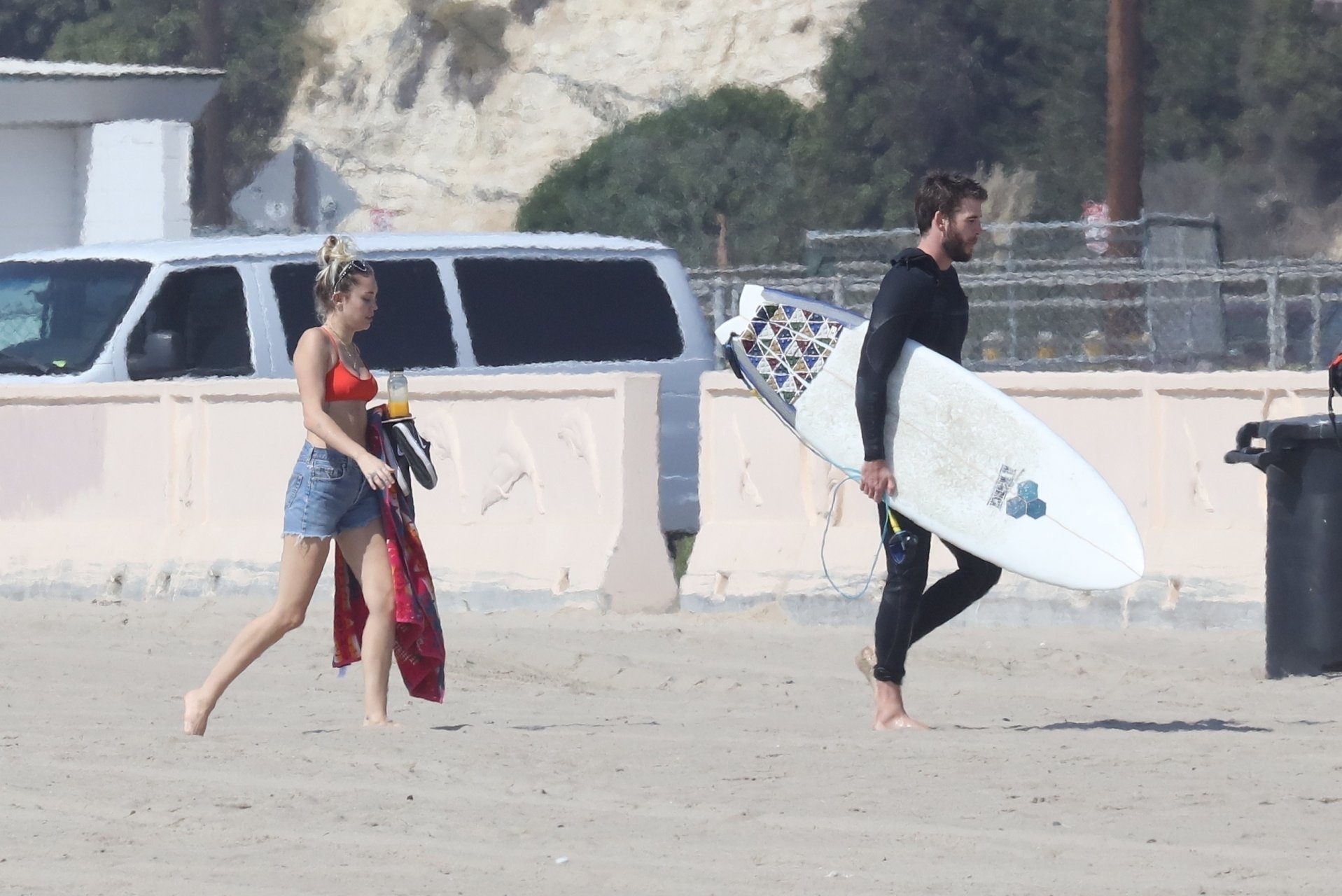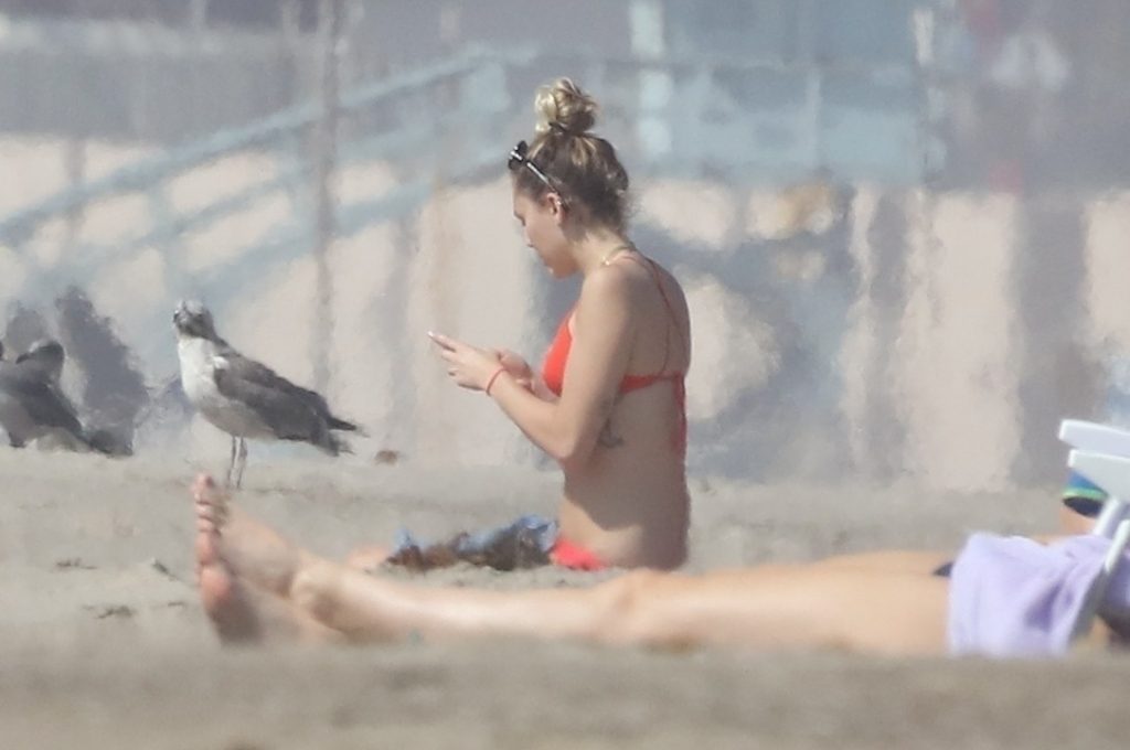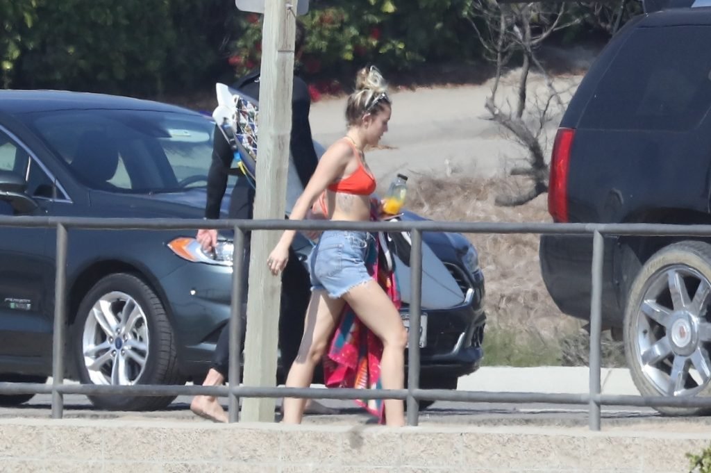 Miley Cyrus, 24, se relajó con un coqueto bikini rojo mientras observaba a su novio Liam Hemsworth enfrentarse a las olas en Malibu, 13/10/2017. La pareja pasó un tiempo descansando en la playa antes de irse juntos. Miley se puso unos shorts de mezclilla sobre su conjunto rojo mientras Liam se quitaba el traje de neopreno antes de partir.