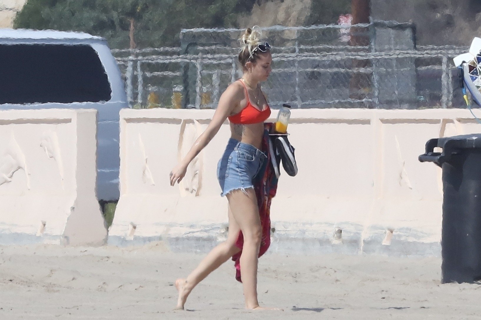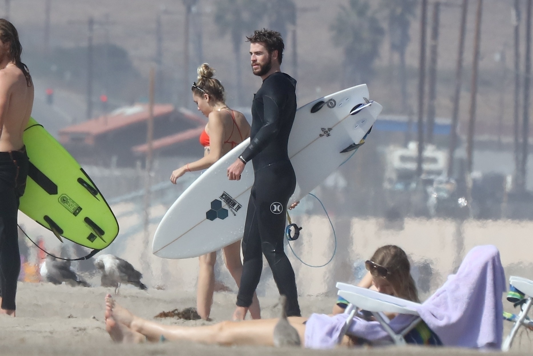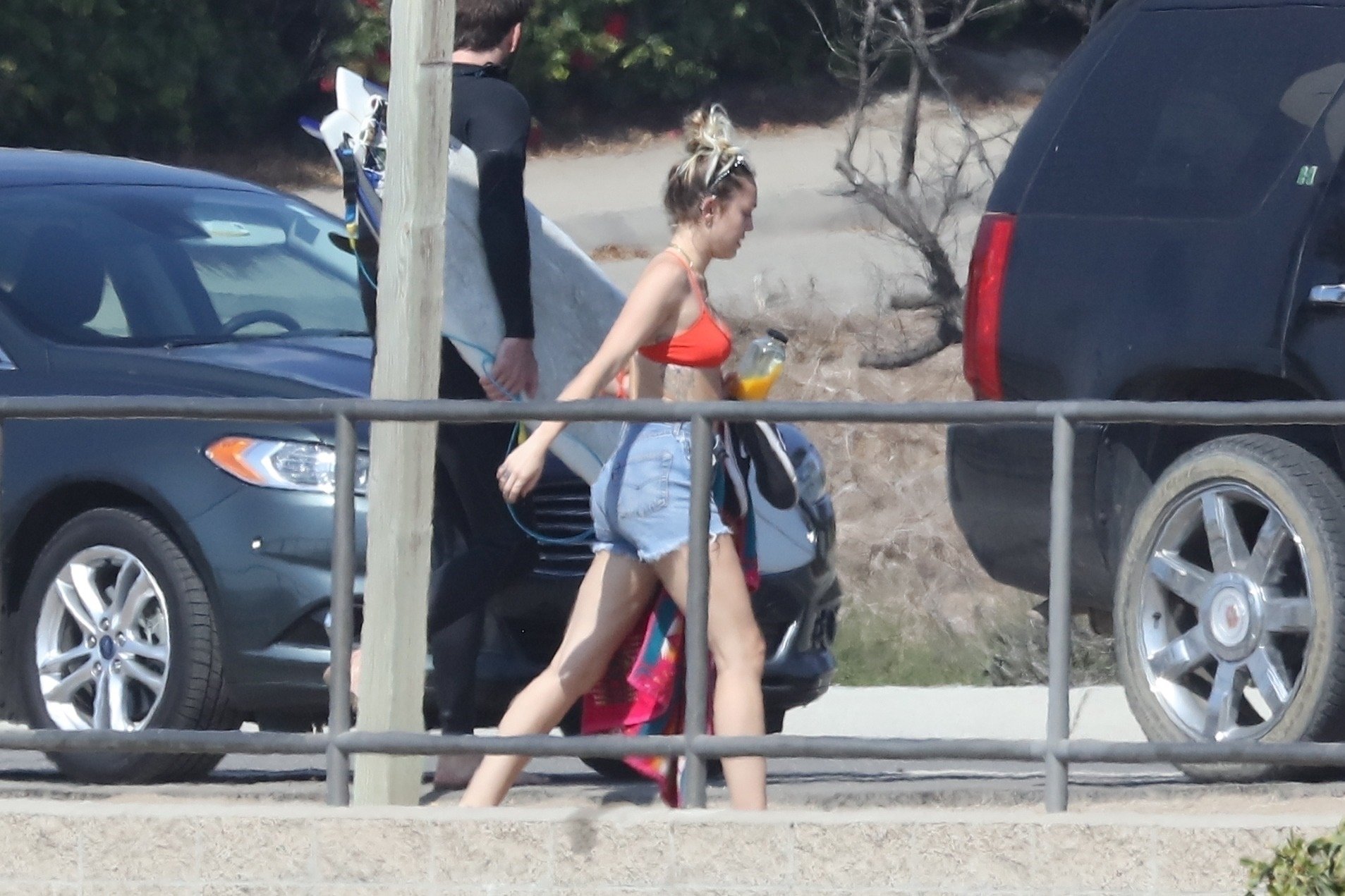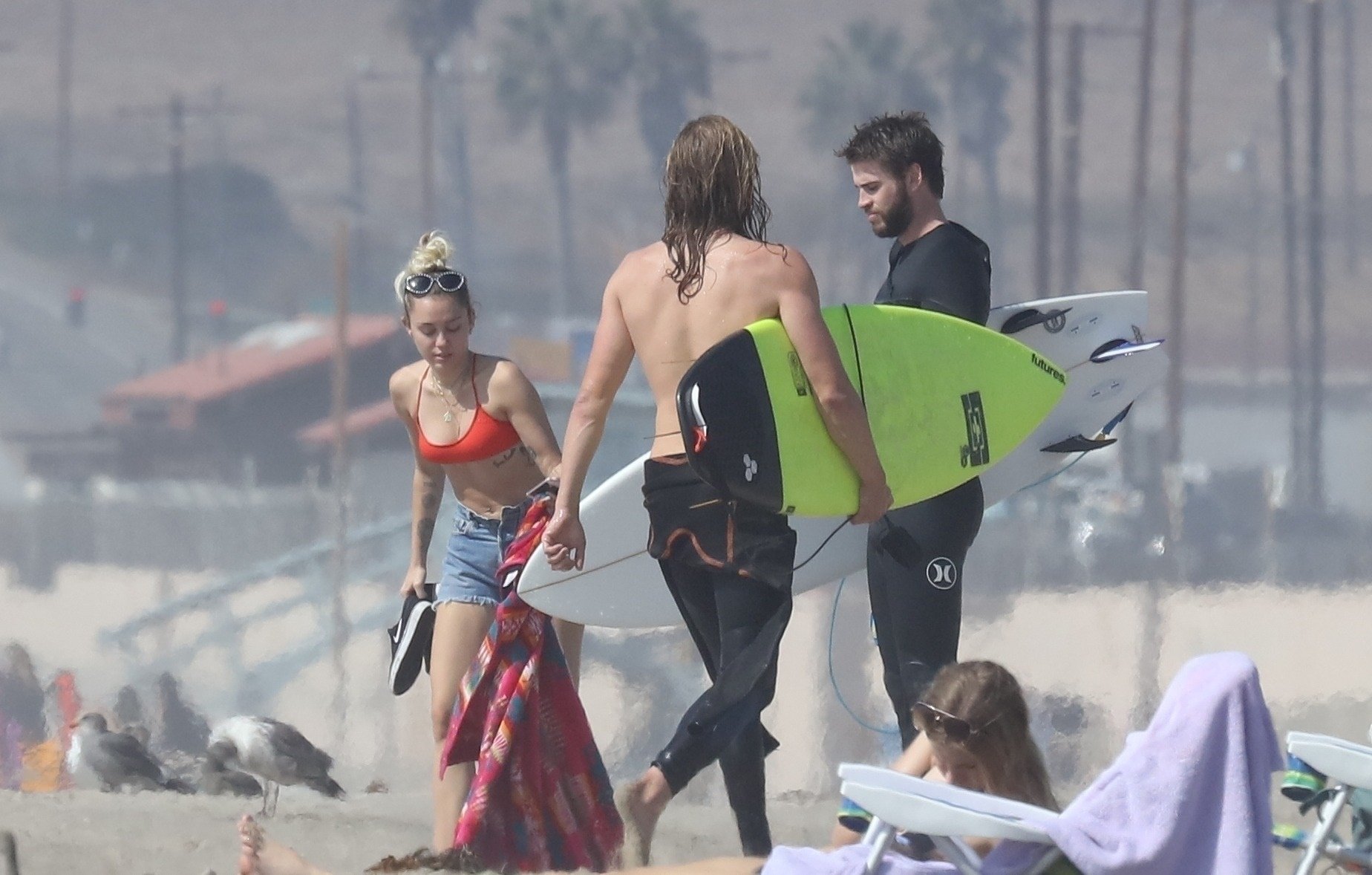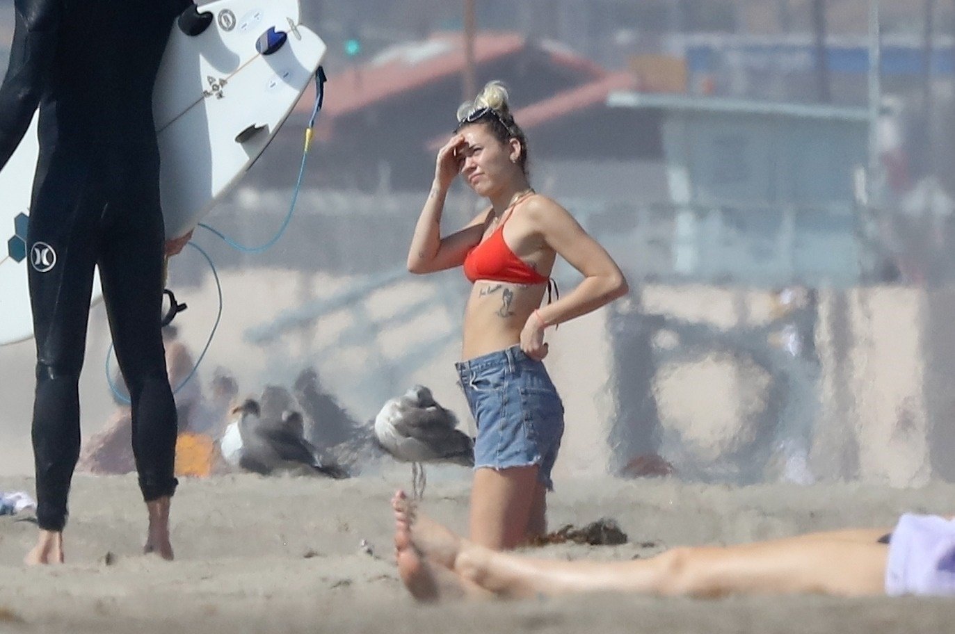 Miley Cyrus, 24, se relajó con un coqueto bikini rojo mientras observaba a su novio Liam Hemsworth enfrentarse a las olas en Malibu, 13/10/2017. La pareja pasó un tiempo descansando en la playa antes de irse juntos. Miley se puso unos shorts de mezclilla sobre su conjunto rojo mientras Liam se quitaba el traje de neopreno antes de partir.