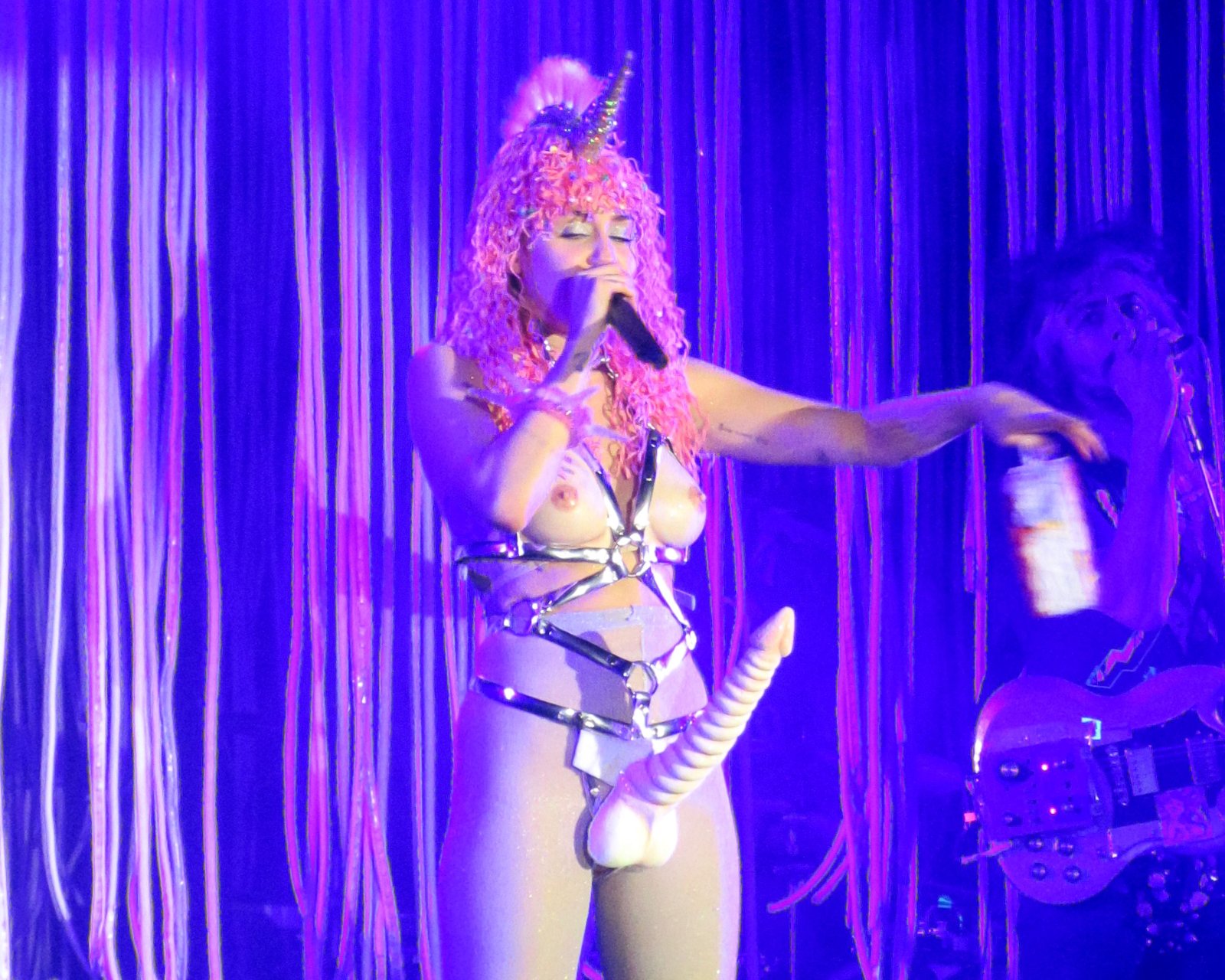 Miley Cyrus actúa en vivo en Echostage en Washington DC, 27/11/2015. Miley Cyrus es una actriz y cantante estadounidense. Edad 23 (23 de noviembre de 1992).