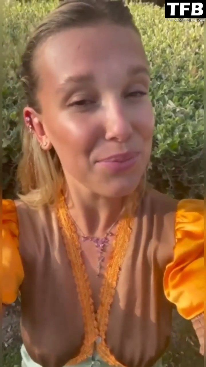 La actriz Millie Bobby Brown muestra sus pechos mientras se graba un video selfie para sus admiradores – Instagram, 19/08/2022.