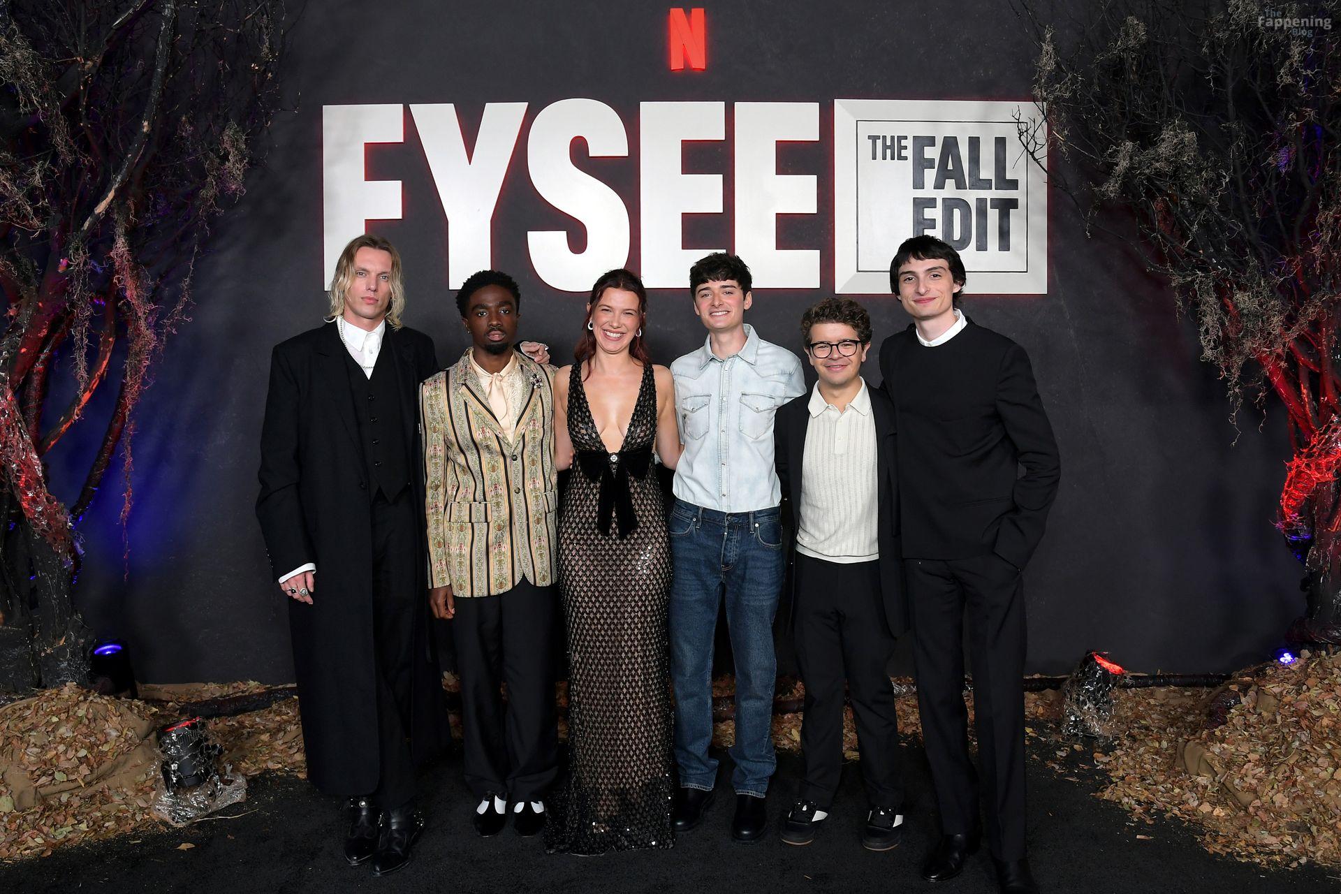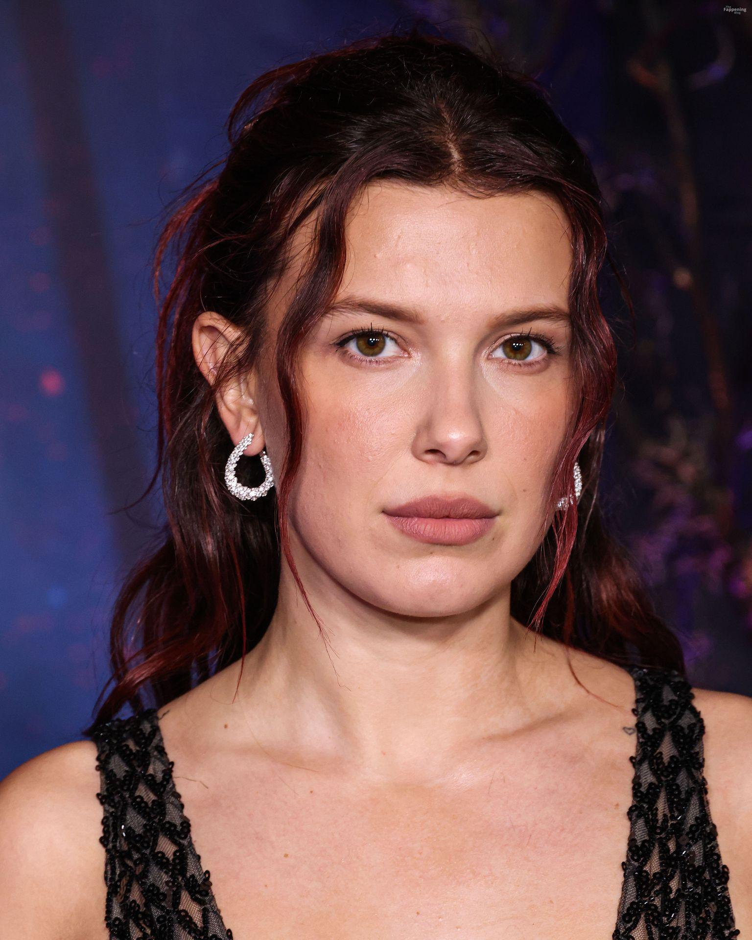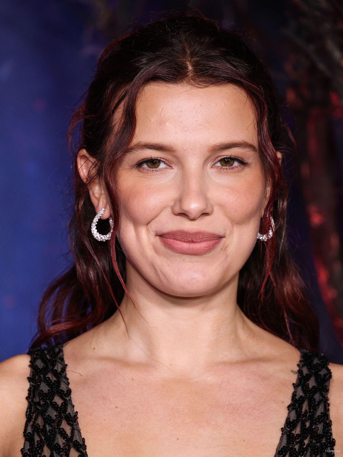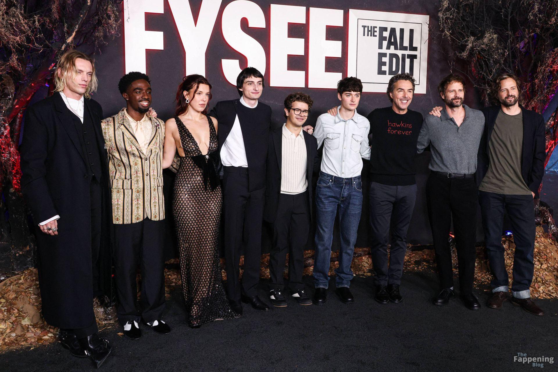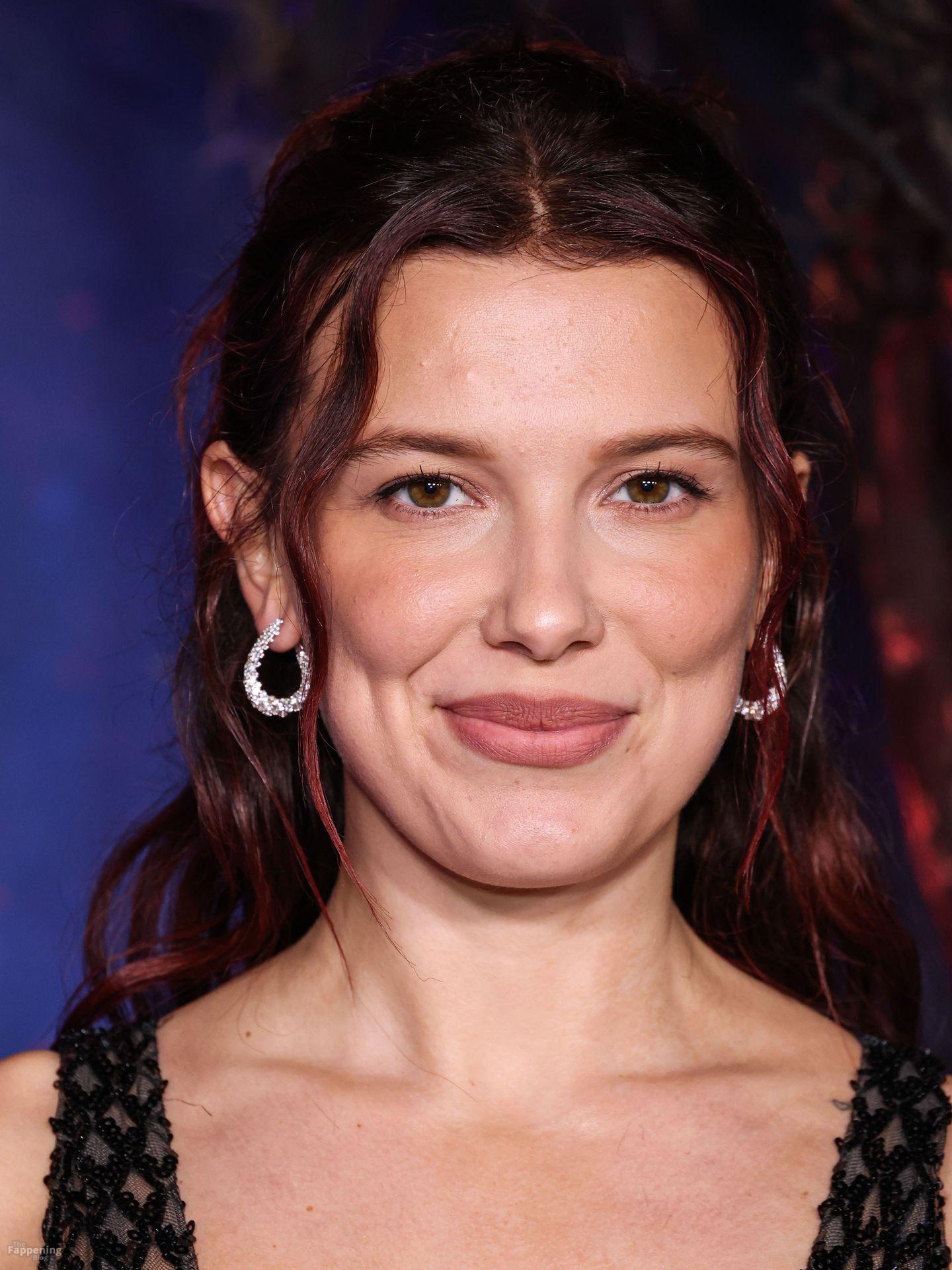 Millie Bobby Brown apareció en el Evento FYC de la Temporada 5 de Stranger Things en Hollywood, luciendo un vestido negro transparente con lentejuelas y un escote pronunciado que dejaba sus pechos a la vista.