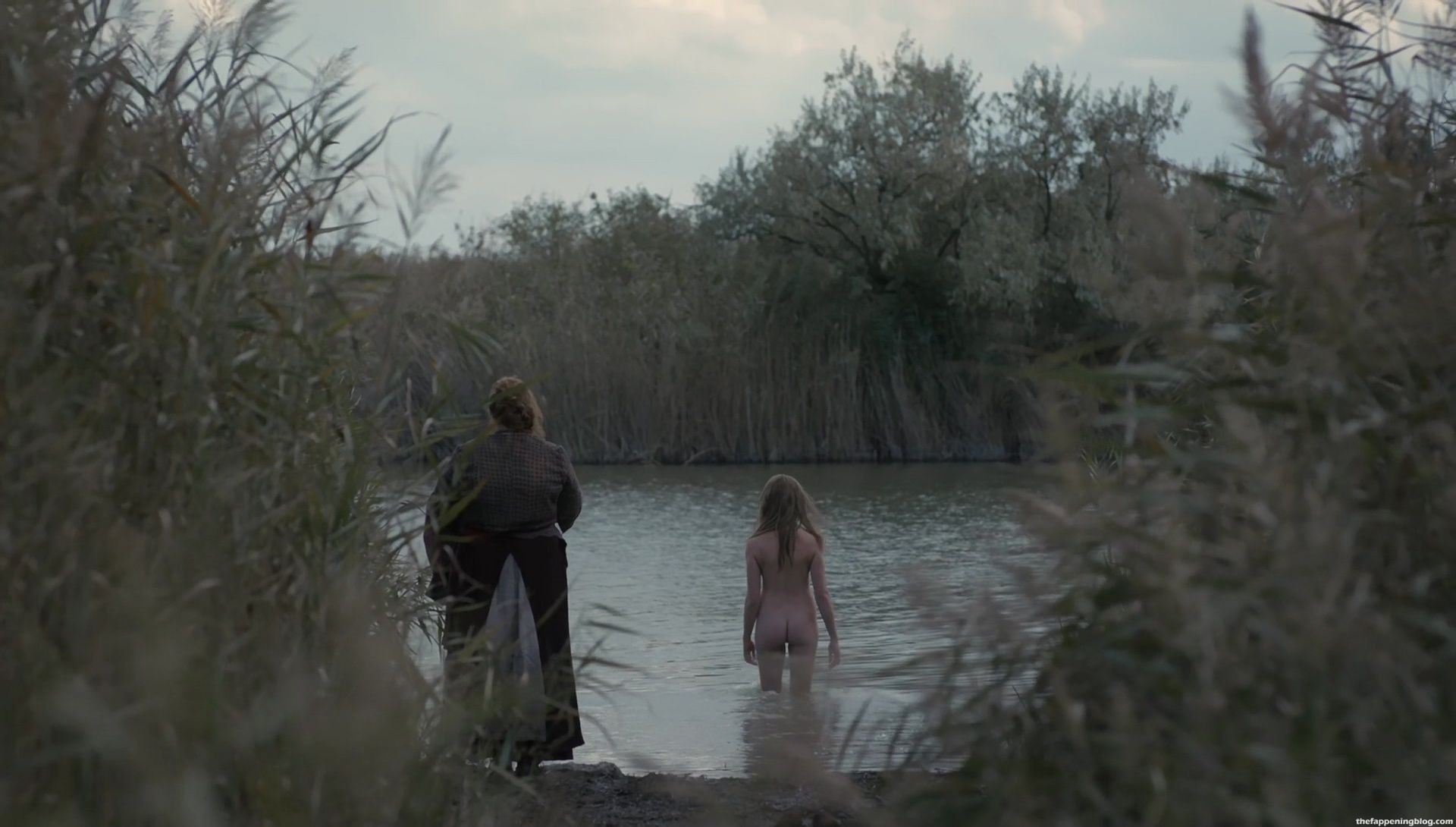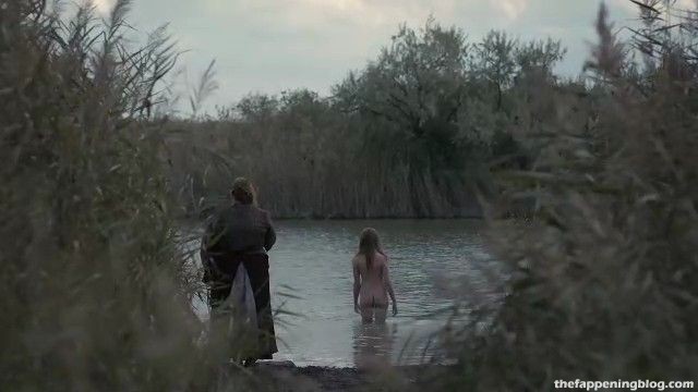 ¡Aquí está la primera escena! Y en esta escena, Millie Brady entra al agua completamente desnuda. Y muestra todo. Podemos ver su lindo trasero y sus perfectos pechos. Además, por un momento, puedes imaginar su vagina tocando el agua fría.