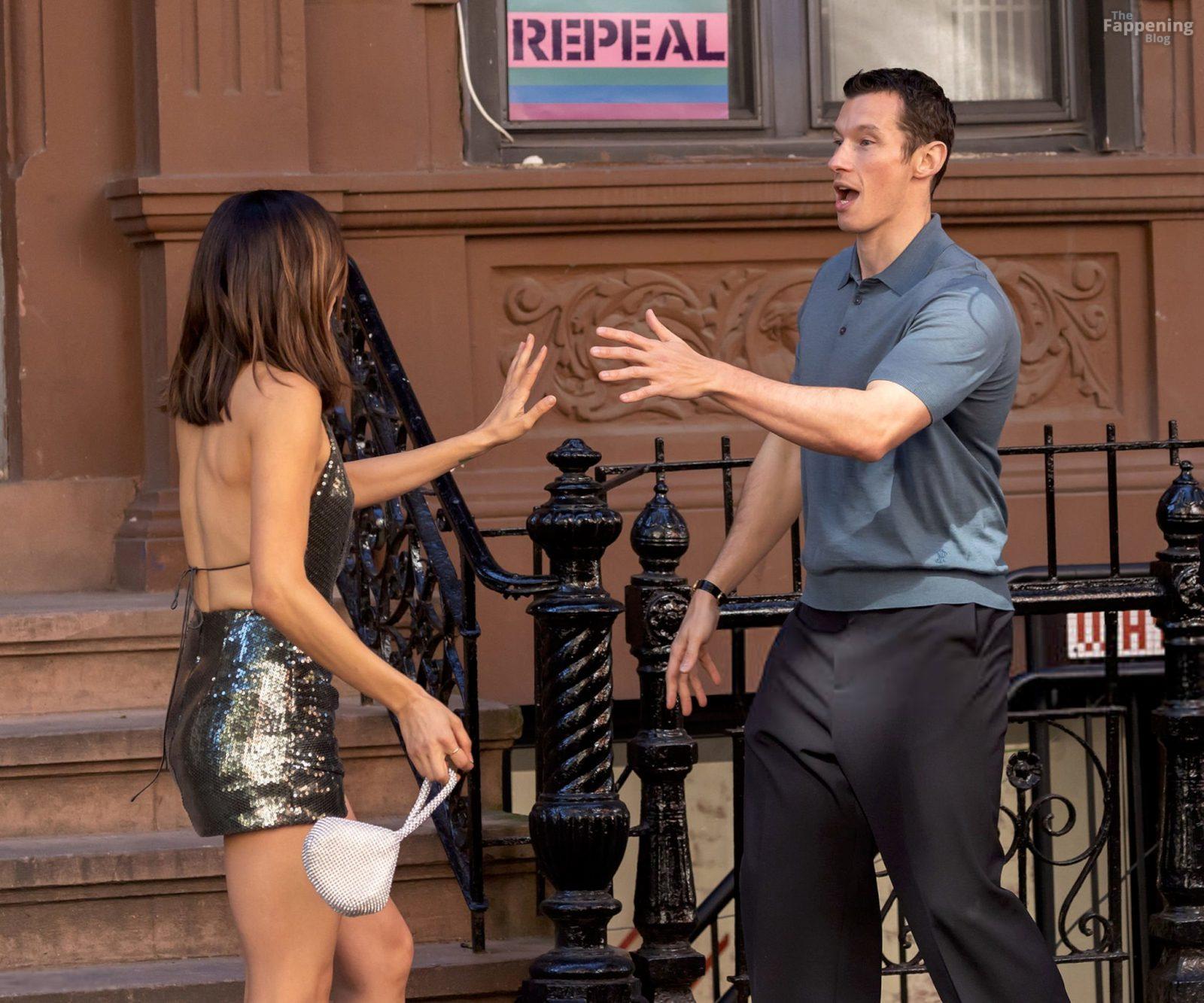 Monica Barbaro mostró su sexy cuerpo con un mini vestido mientras filmaba “One Night Only” en el set de NYC en Downtown Manhattan.