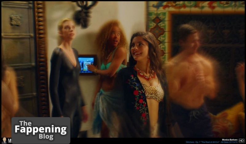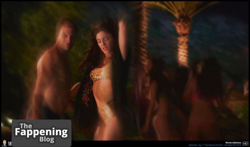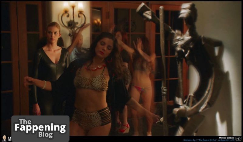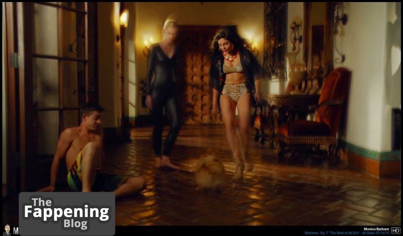 La colección de fotos de Monica Barbaro muestra sus imágenes parcialmente desnudas y seductoras, con sus pechos descubiertos, escote generoso sin sostén, atractivos glúteos, piernas y su impresionante figura adornada con atuendos reveladores y lencería.
