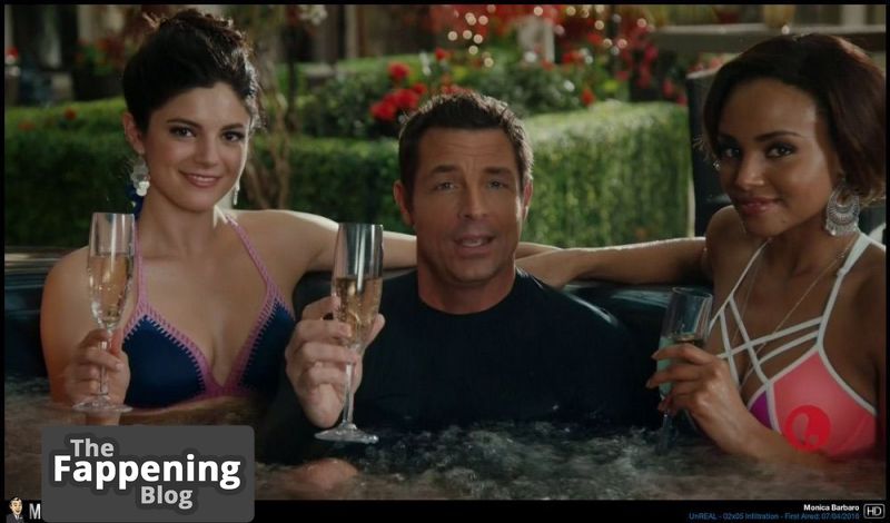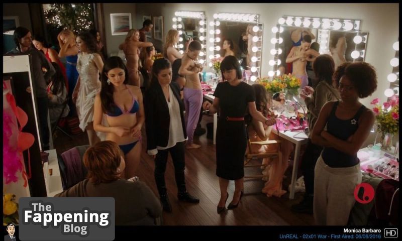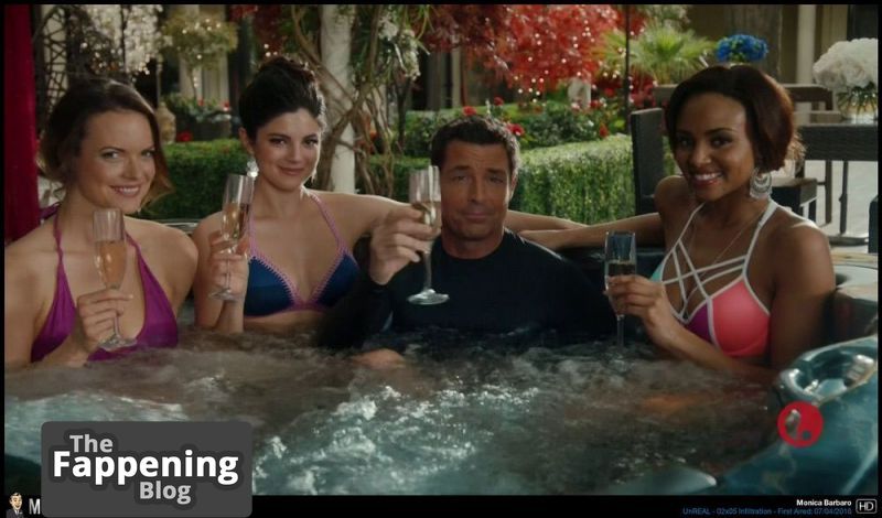 "La colección de fotos de Monica Barbaro muestra sus imágenes parcialmente desnudas y seductoras, incluyendo sus pechos desnudos, un escote amplio sin sujetador, glúteos atractivos, piernas y su impresionante figura vestida con atuendos reveladores y lencería.