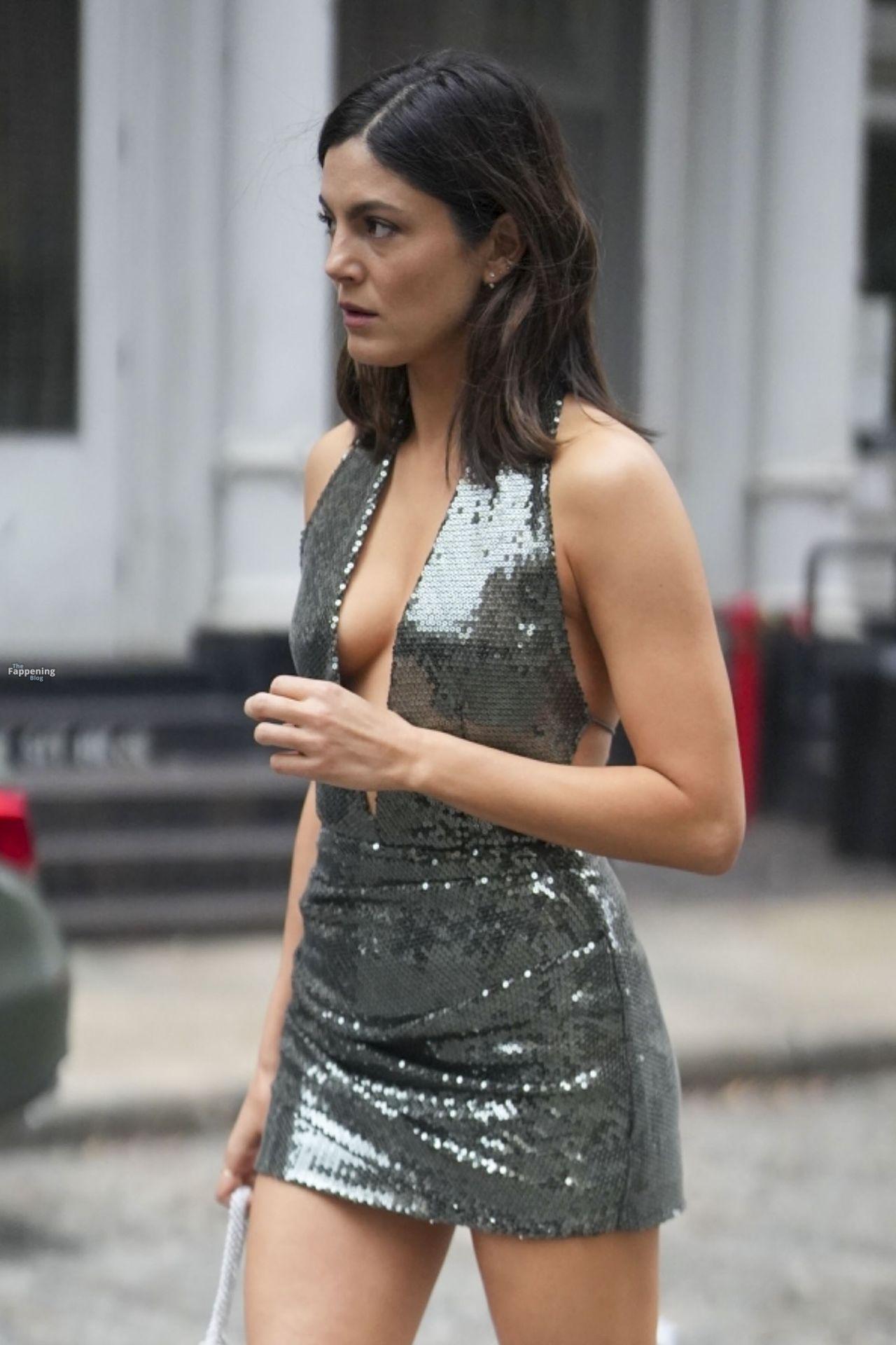 Monica Barbaro sin sujetador deslumbra con un vestido verde de lentejuelas y tacones de aguja filmando ‘One Night Only’ en la ciudad de Nueva York.