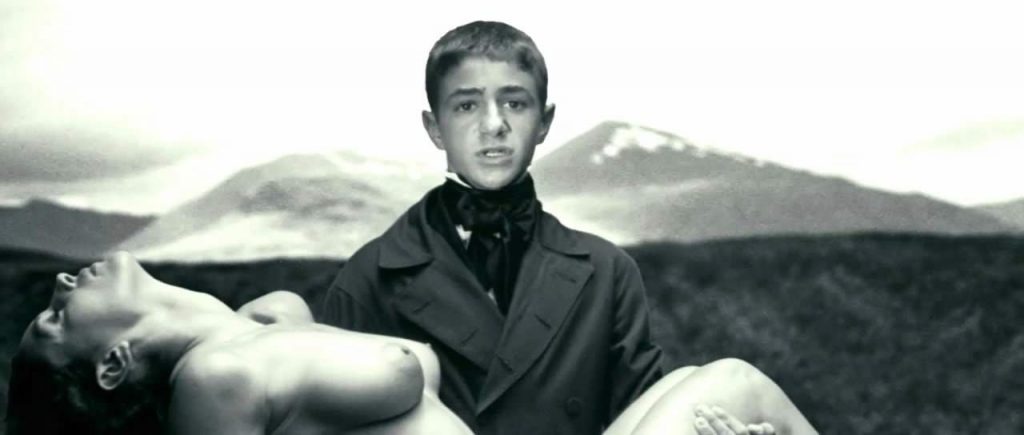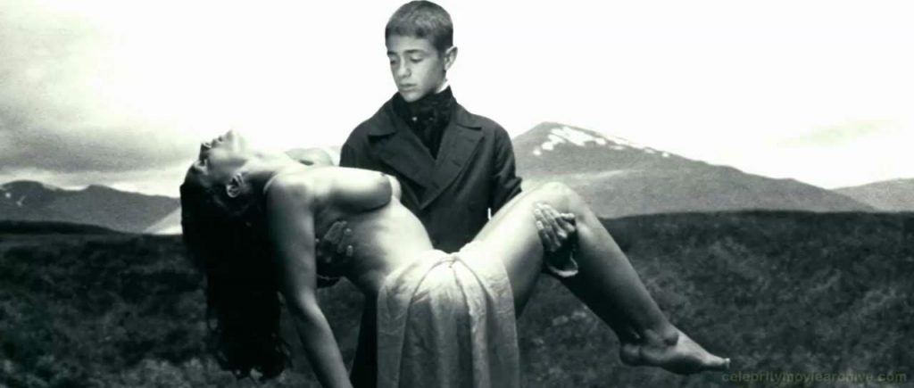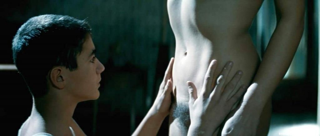 Monica Bellucci stands completely naked in front of a boy who is fascinated by her beauty and, at the same time, grateful for the sight that she provides.