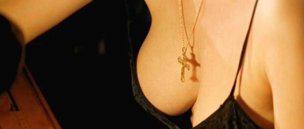 She is an inexhaustible source of sexuality, both desirable and seductive Monica Bellucci’s every sex scene did cult. In this scene, Monica takes off her dress, and large breasts are coming to the fore. She gently washes her nude boobs and then takes a lemon and squeezed it over her breasts and pointed nipples.