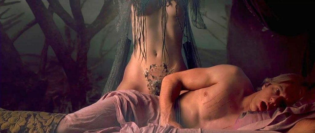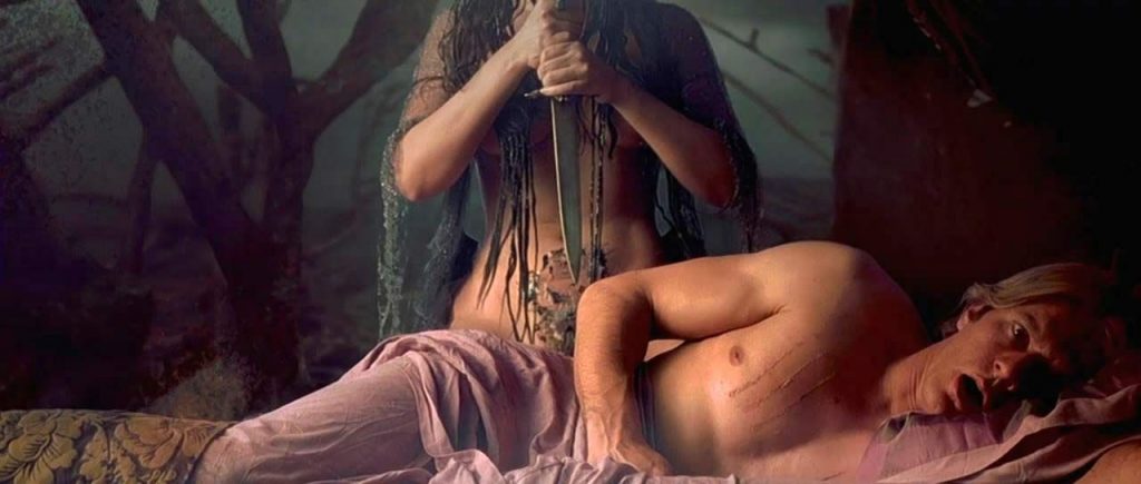 Monica Bellucci, in this somewhat surreal scene, shows her nude boobs and bare buttocks. She is initially lying naked next to her boyfriend, but he dreams of her as a witch trying to kill him, and we here see her huge succulent breasts.