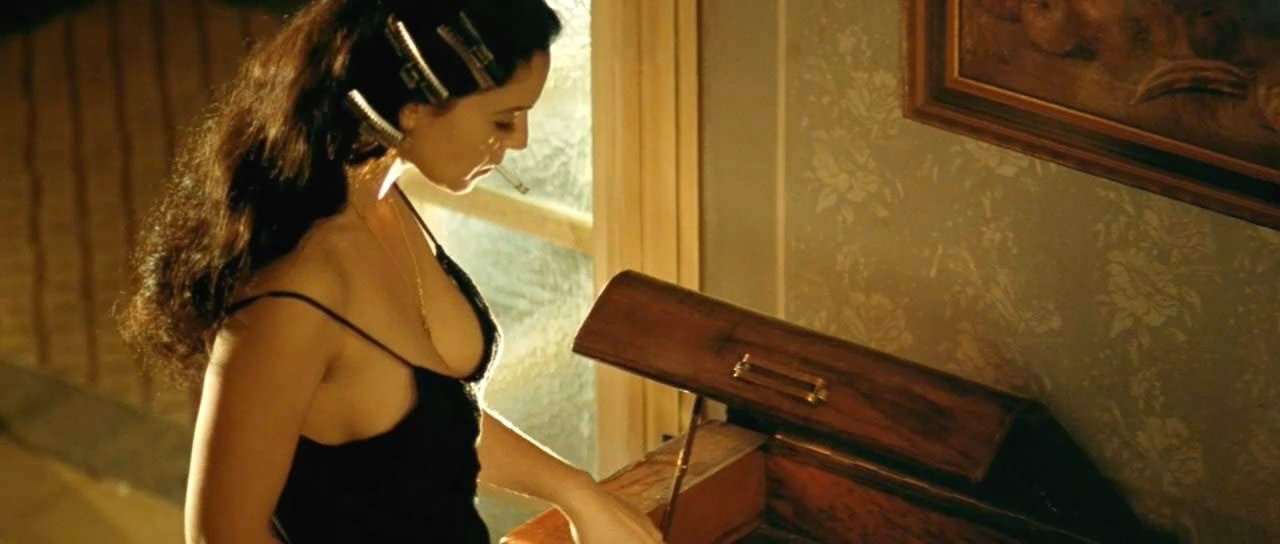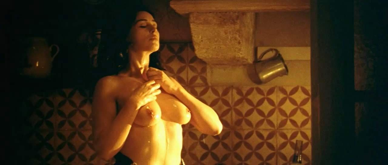 She is an inexhaustible source of sexuality, both desirable and seductive Monica Bellucci’s every sex scene did cult. In this scene, Monica takes off her dress, and large breasts are coming to the fore. She gently washes her nude boobs and then takes a lemon and squeezed it over her breasts and pointed nipples.