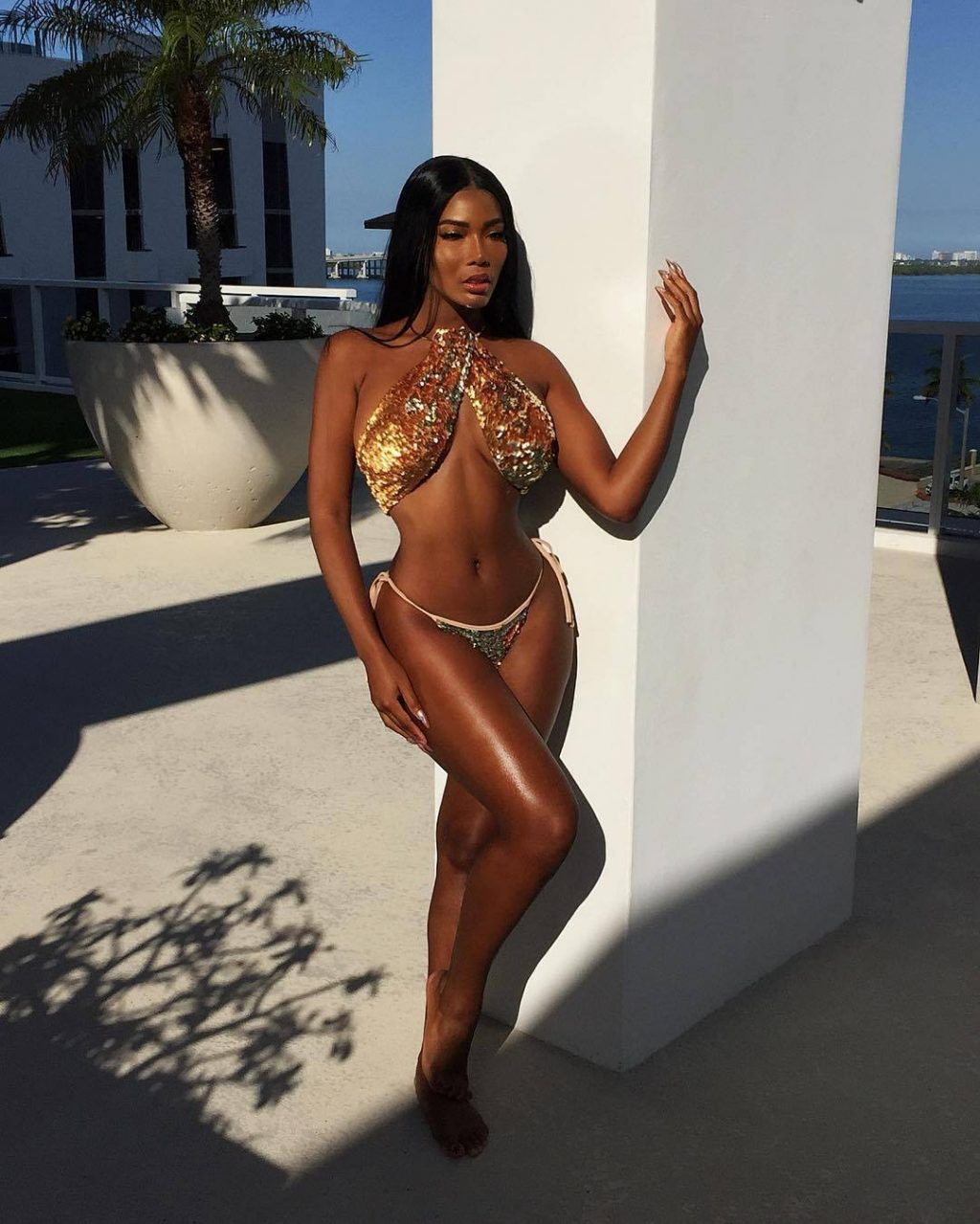 Consulta las fotos ligeramente desnudas y sexys de Monifa Jansen en las redes sociales. Ella tiene unos buenos pechos y un gran trasero y compartió sus fotos semi-desnudas para más de 774K seguidores en Instagram.