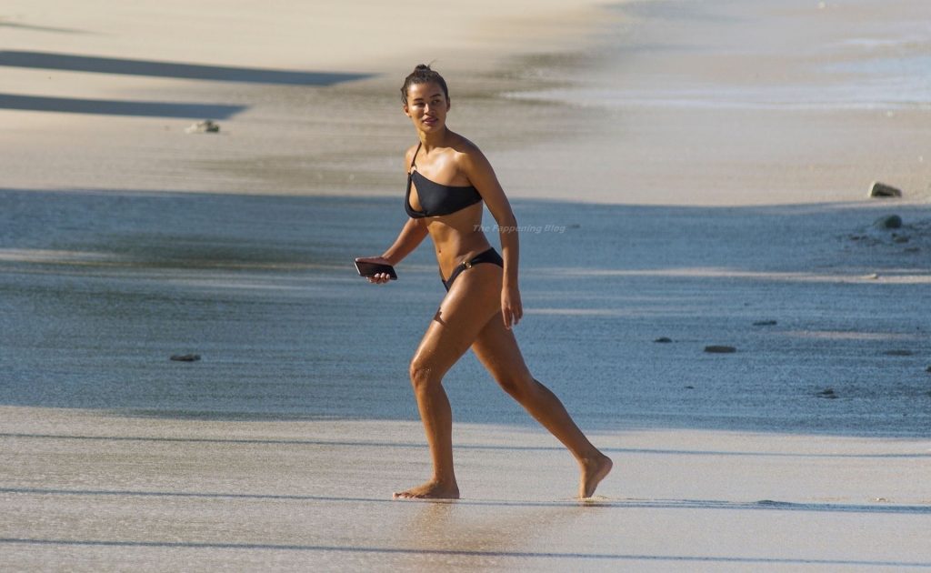 Llevando su pequeño y escueto bikini negro bajo el sol ardiente, Montana lucía espectacular con una exhibición que llamaba la atención, haciendo subir la temperatura y mostrando su físico tonificado con sus voluptuosas curvas.
