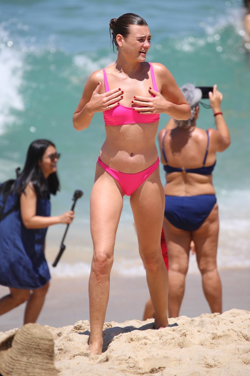 Modelo australiana, estrella de televisión y supuesta novia de Justin Hemmes, Montana Cox luce increíble con un traje de baño rosa en Tamarama Beach en Sídney, 11/03/2018.