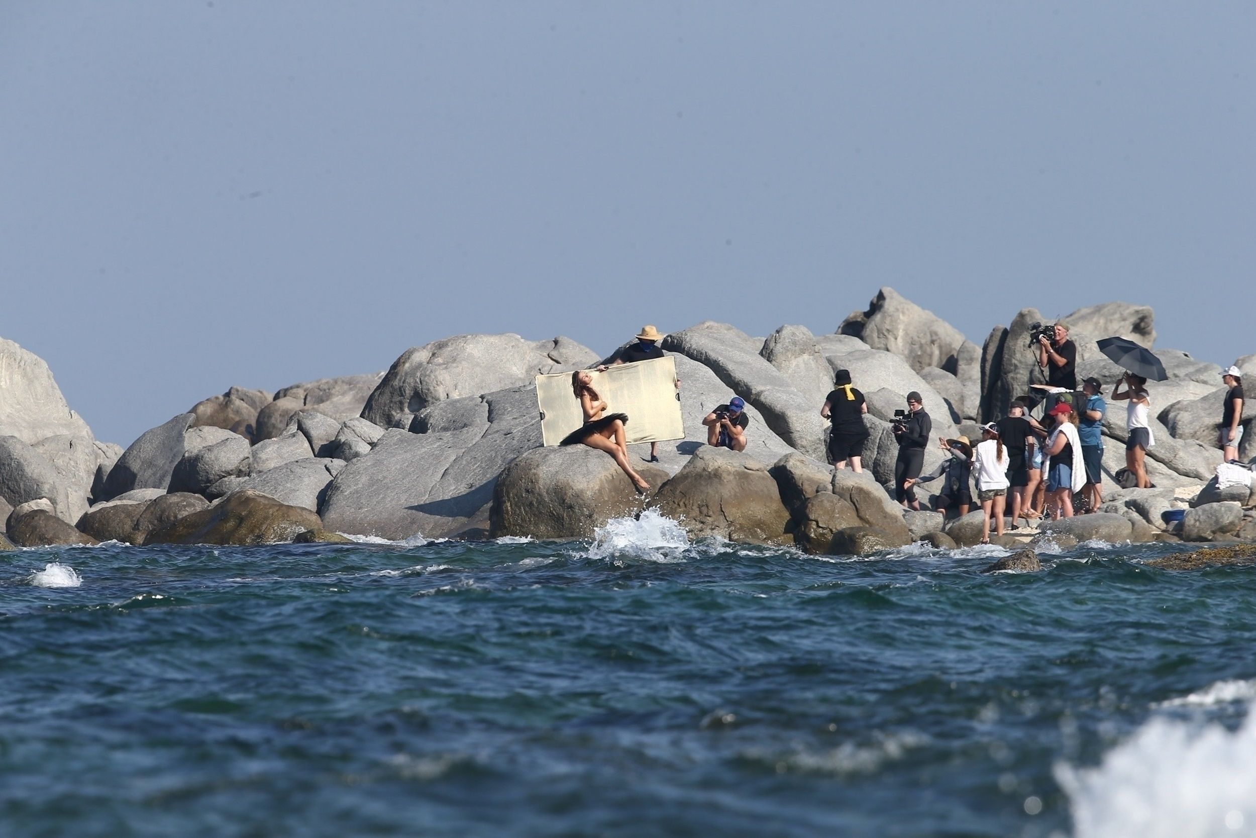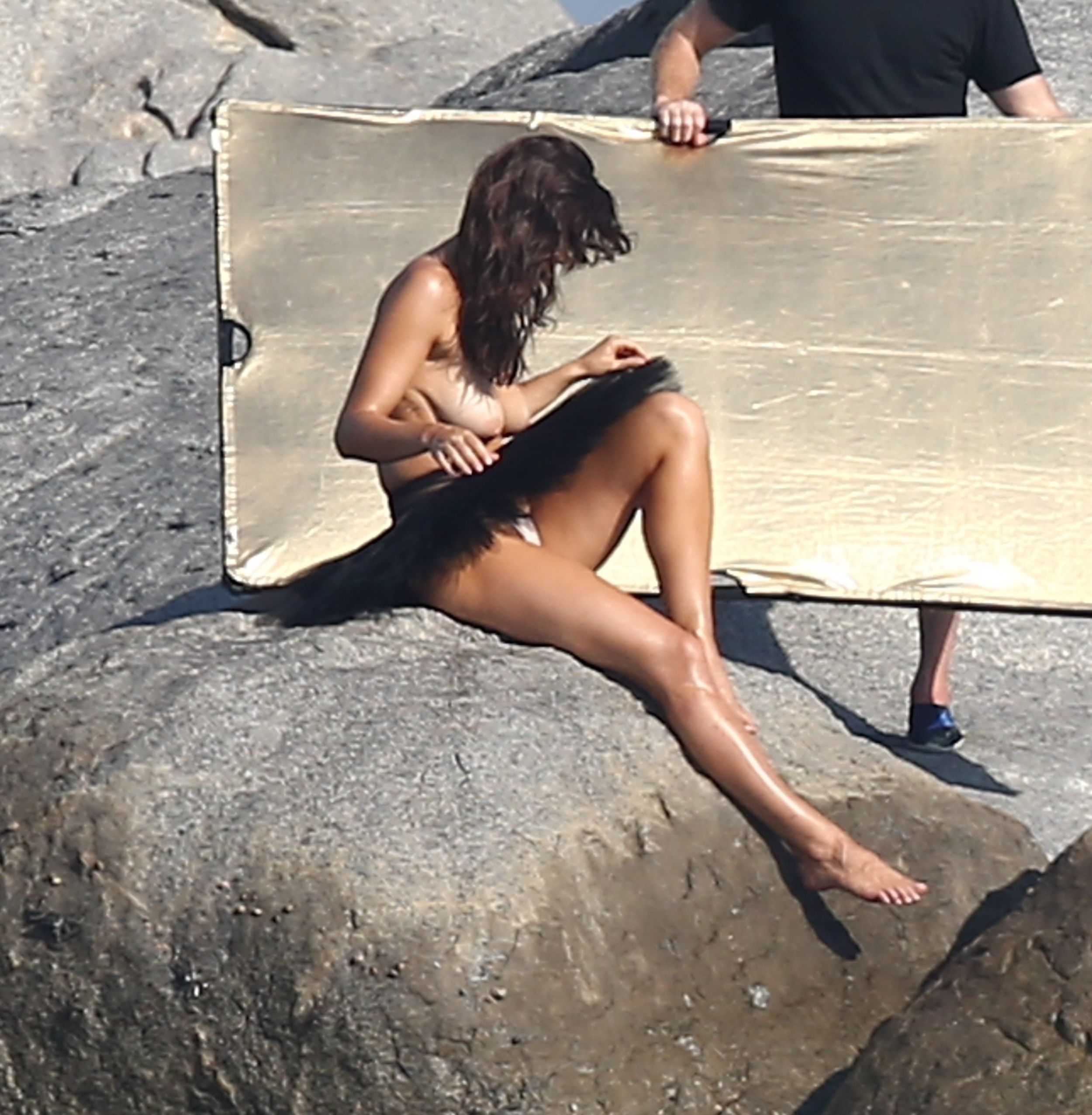 La modelo estadounidense Myla Dalbesio, de 30 años, posa topless con un tutú para una sesión fotográfica de Sports Illustrated en las costas de Aruba, 10/10/2017.