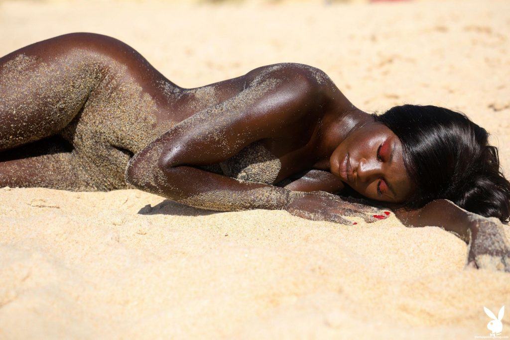 Mira las fotos desnudas de la impresionante modelo francesa Naomi Nash posando desnuda en la playa para Playboy (2021).