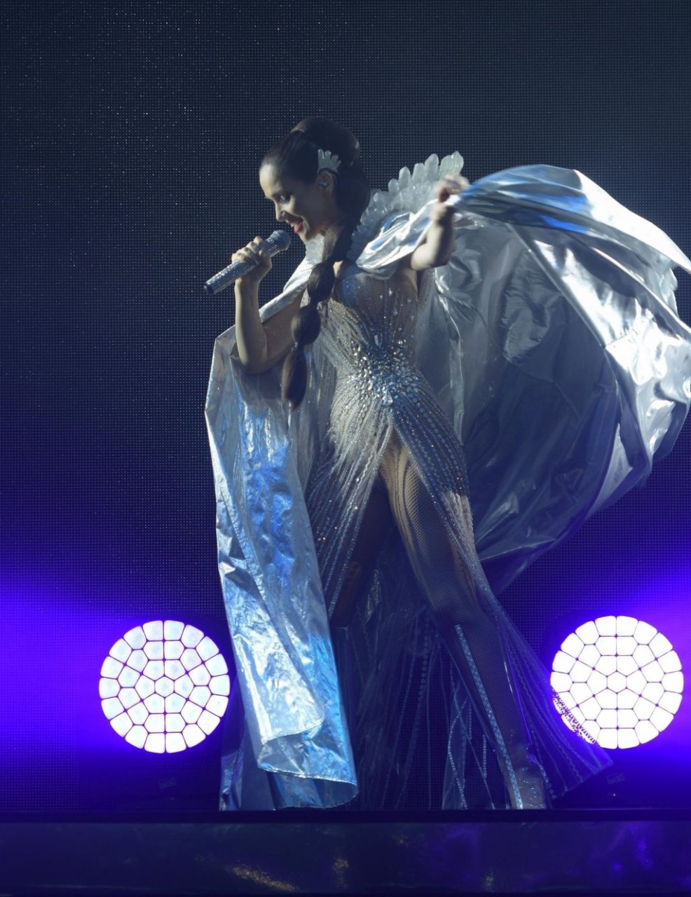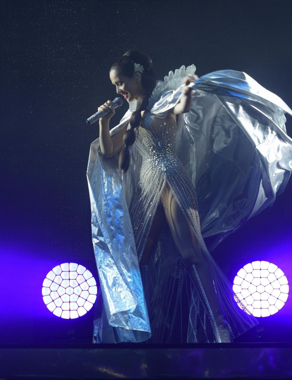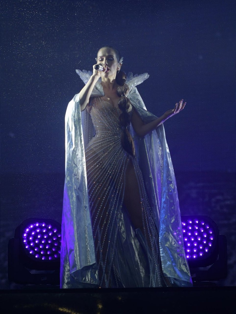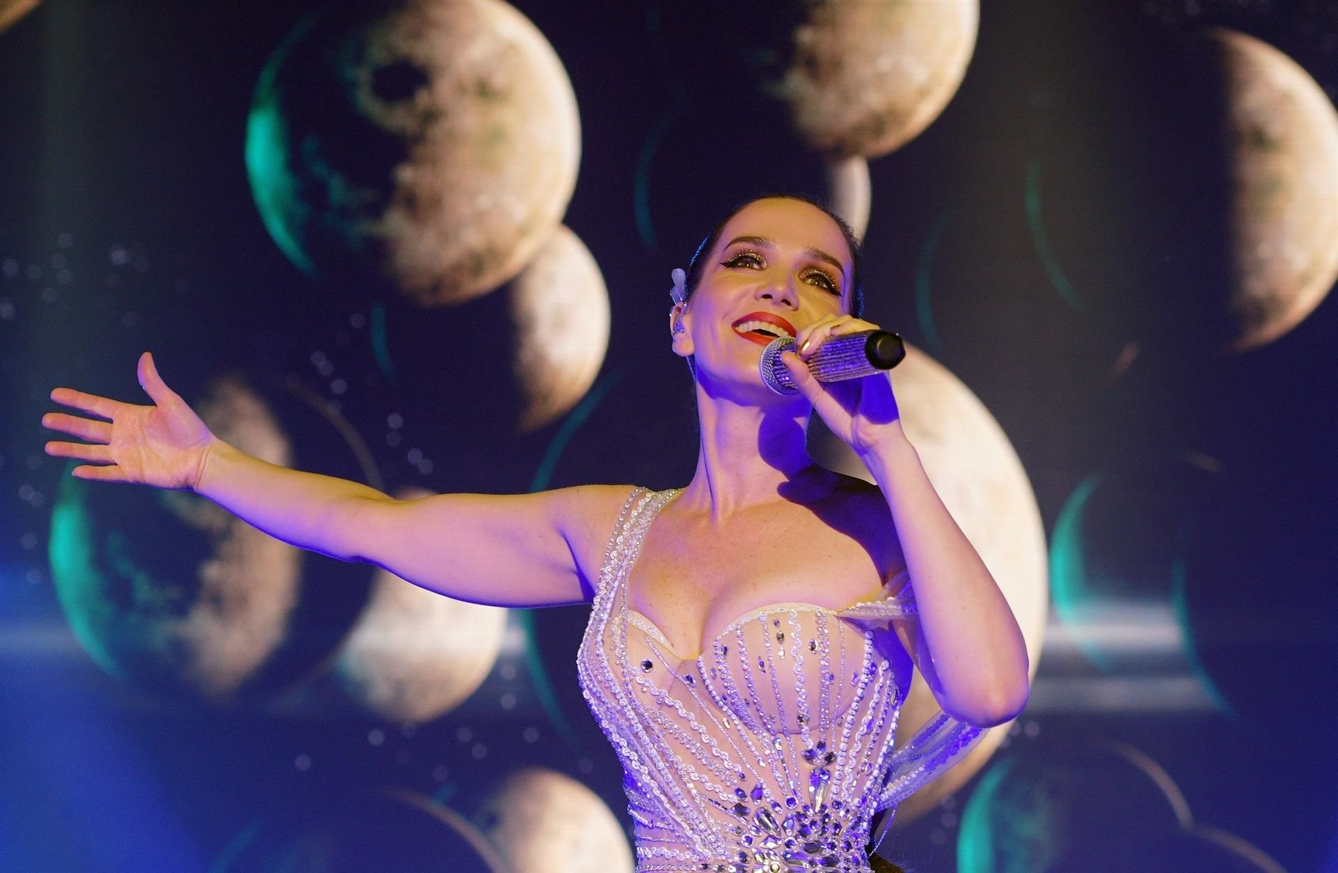 La actriz y cantante uruguaya Natalia Oreiro en el escenario durante un concierto en vivo durante su Gira Inolvidable en el Crocus City Hall de Moscú, 28/03/2019.