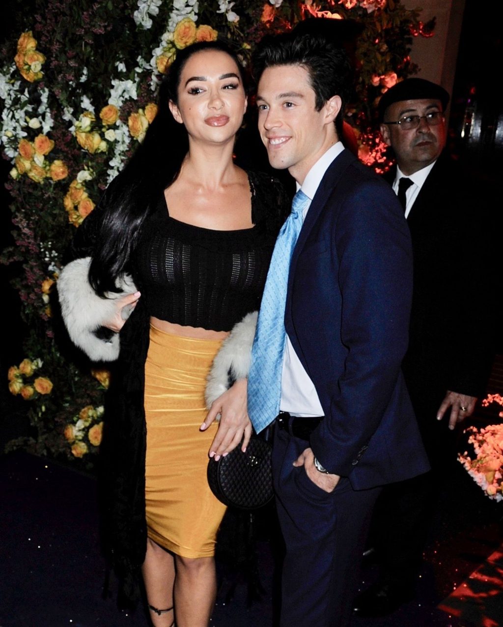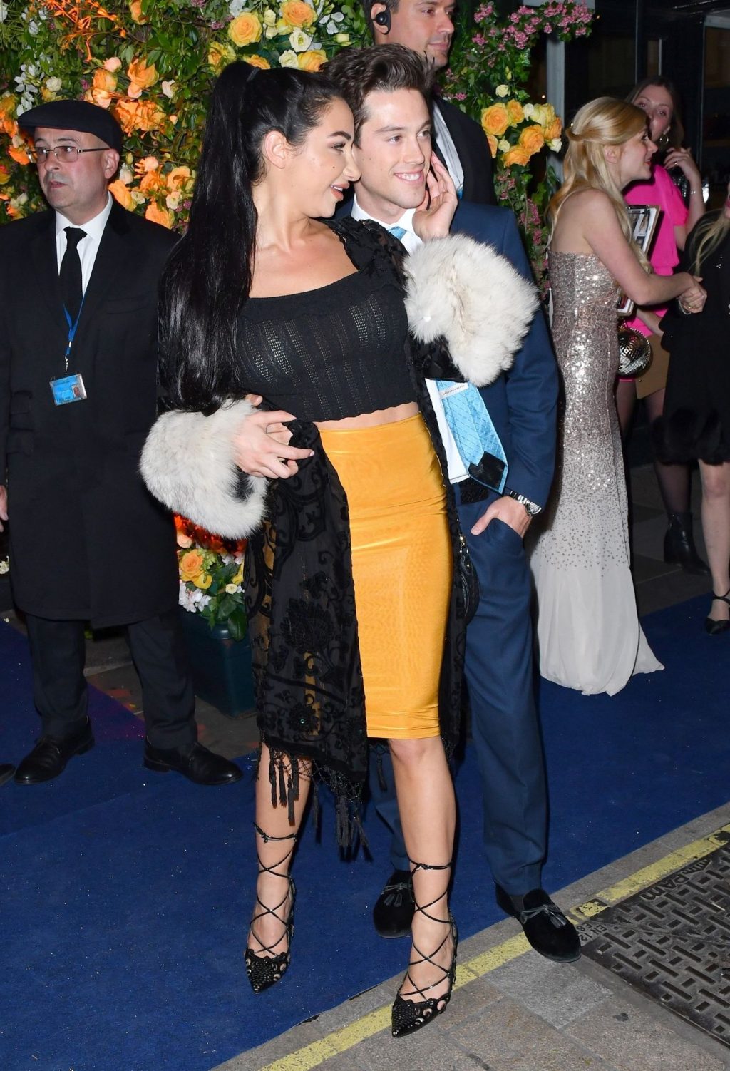 Natasha Grano asiste a la fiesta del 50º aniversario de Tramp en Londres, 23/05/2019. Ella muestra sus grandes pechos, vistiendo una blusa negra transparente.