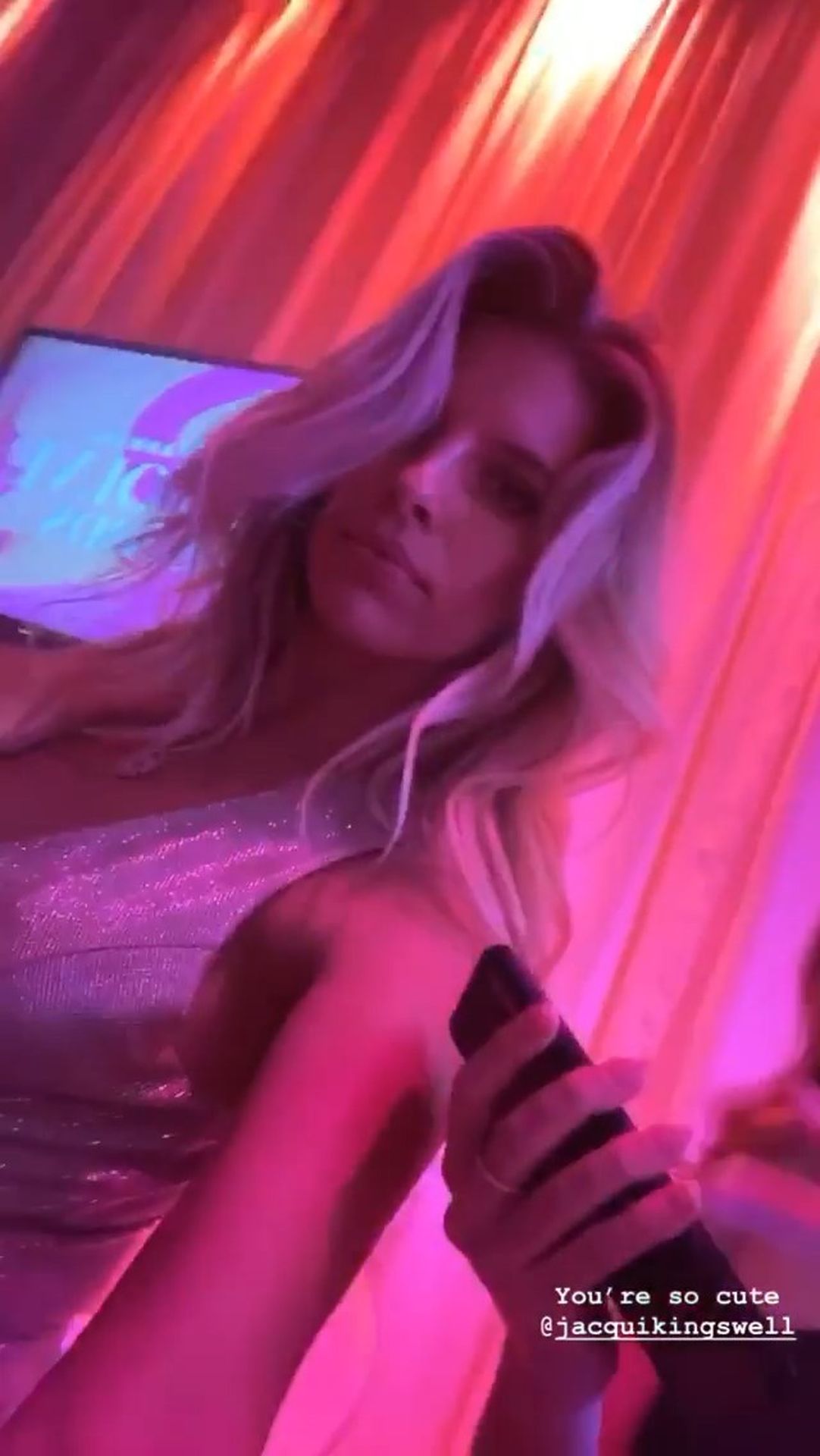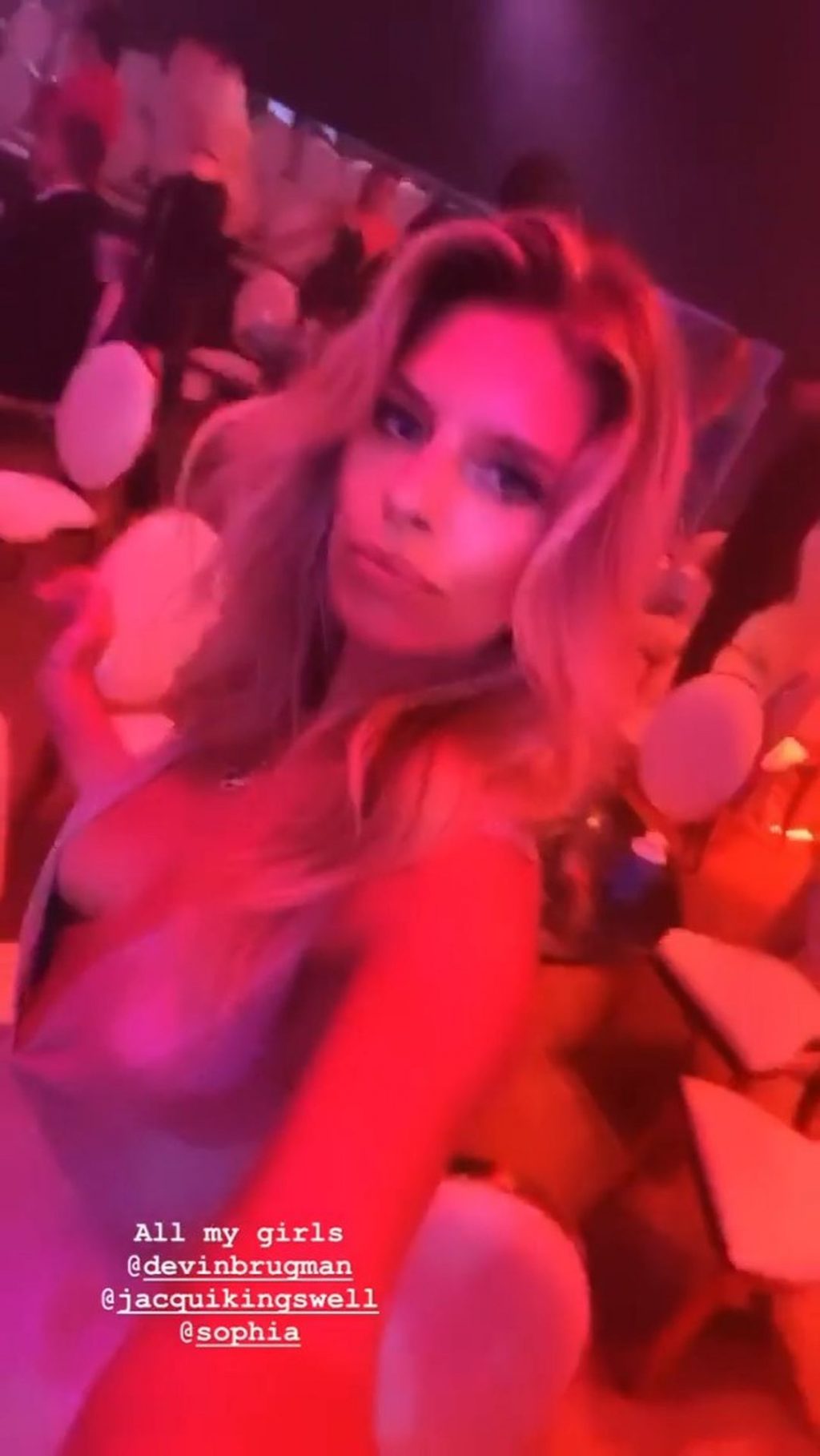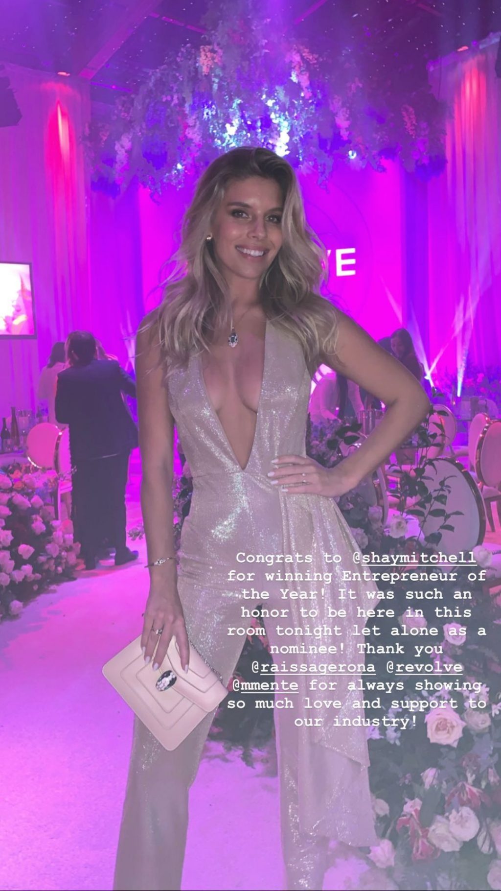 La australiana Natasha Oakley muestra sus pechos en la 3ª edición anual de los #REVOLVEawards 2019 celebrada en Goya Studios en Hollywood, Los Ángeles, 15/11/2019.