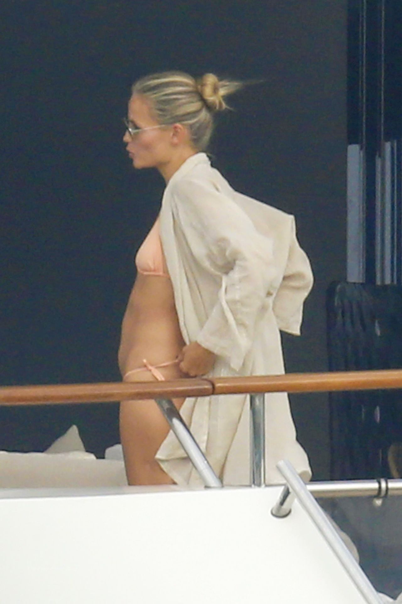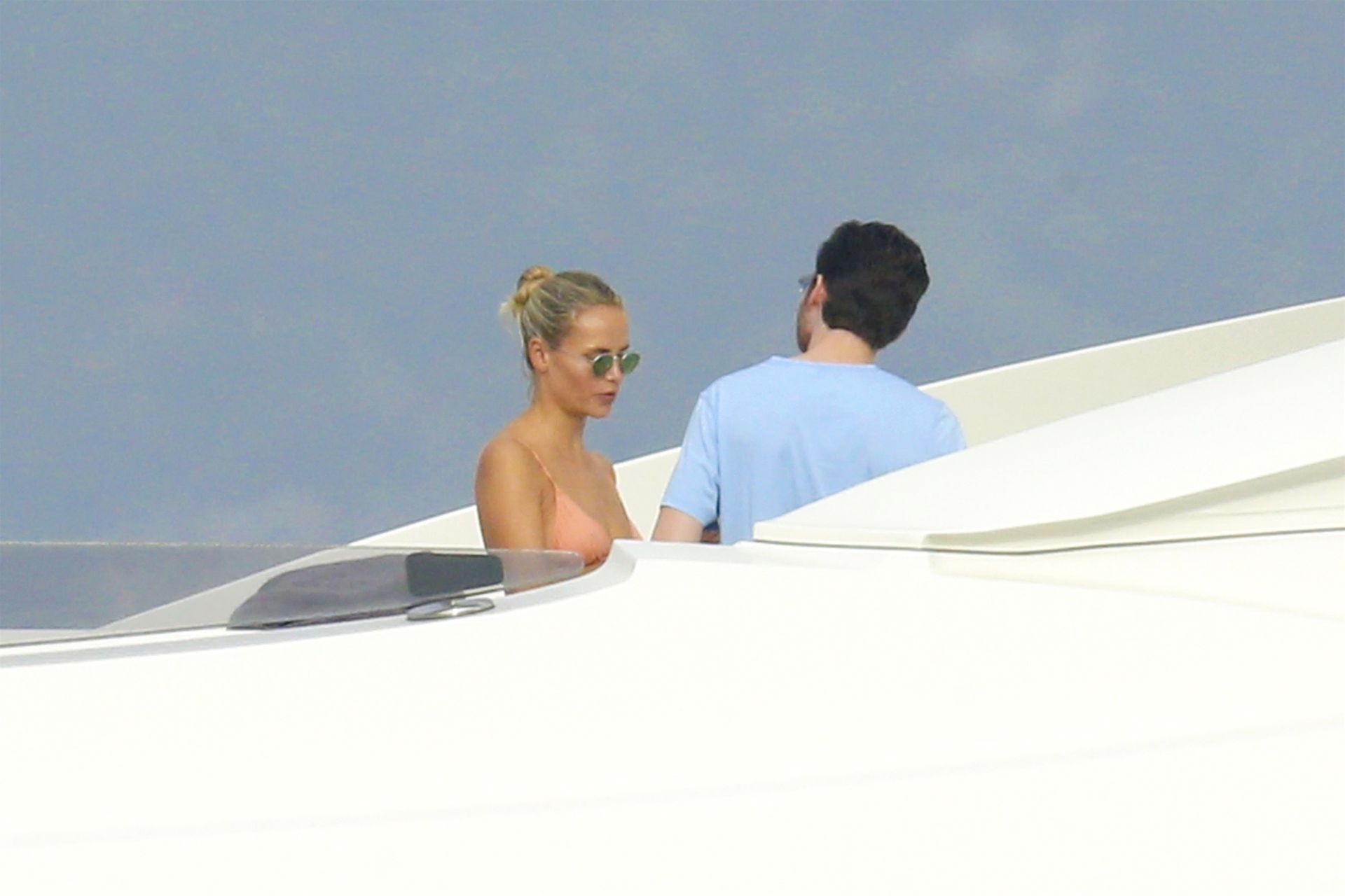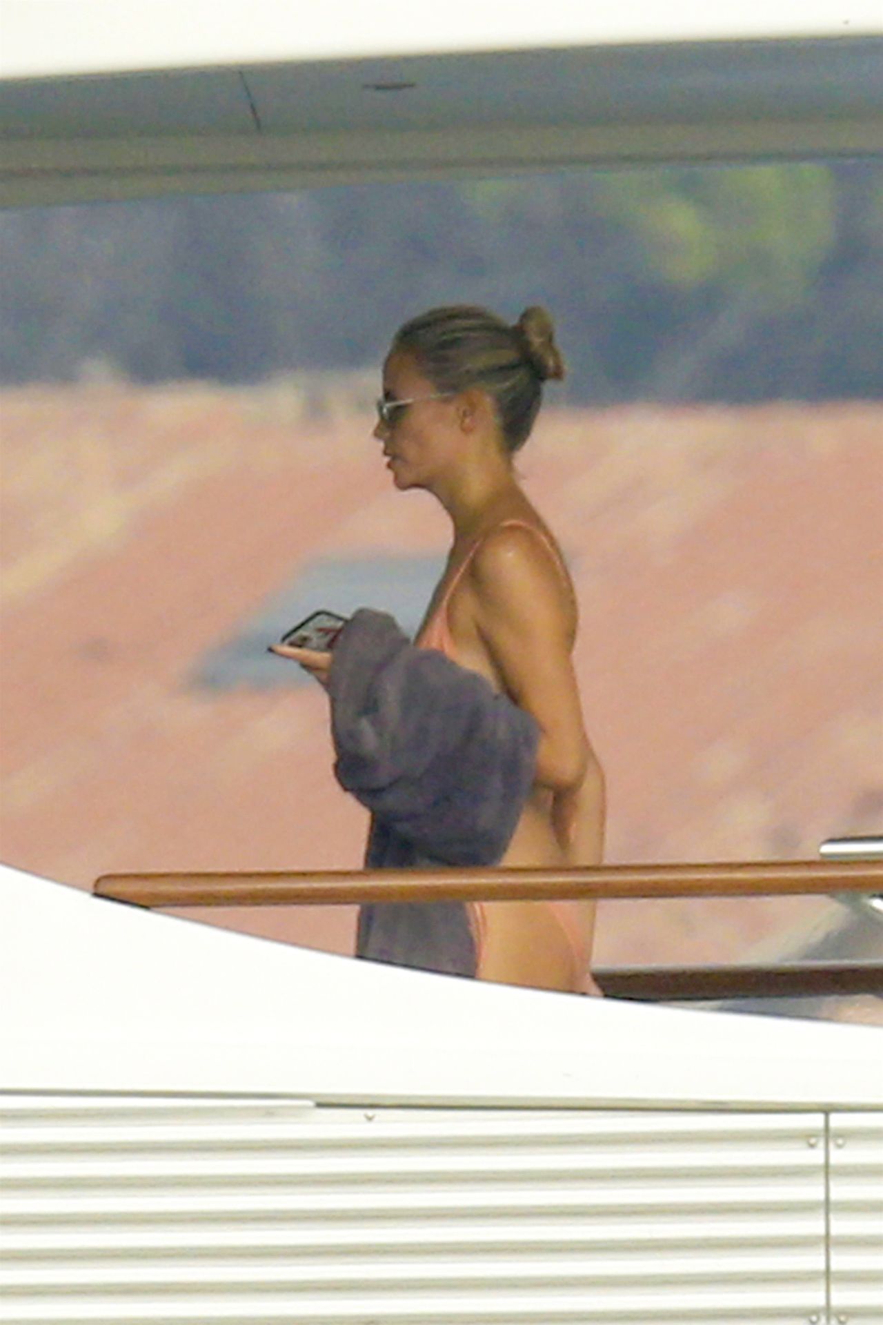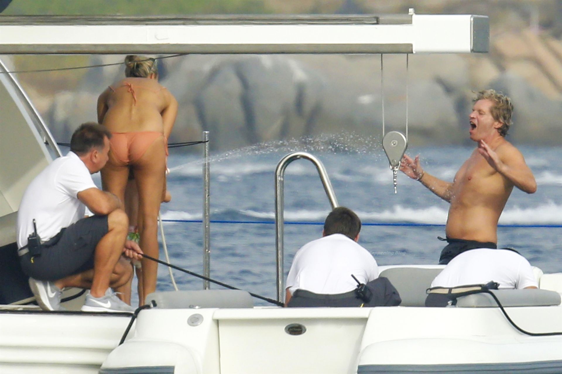 La supermodelo rusa Natasha Poly y su esposo Peter Bakker llevan a sus hijos para divertirse en familia en un yate durante sus vacaciones en Cerdeña, 11/08/2021.