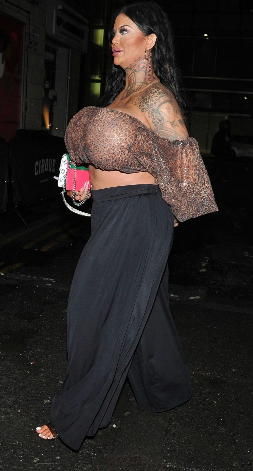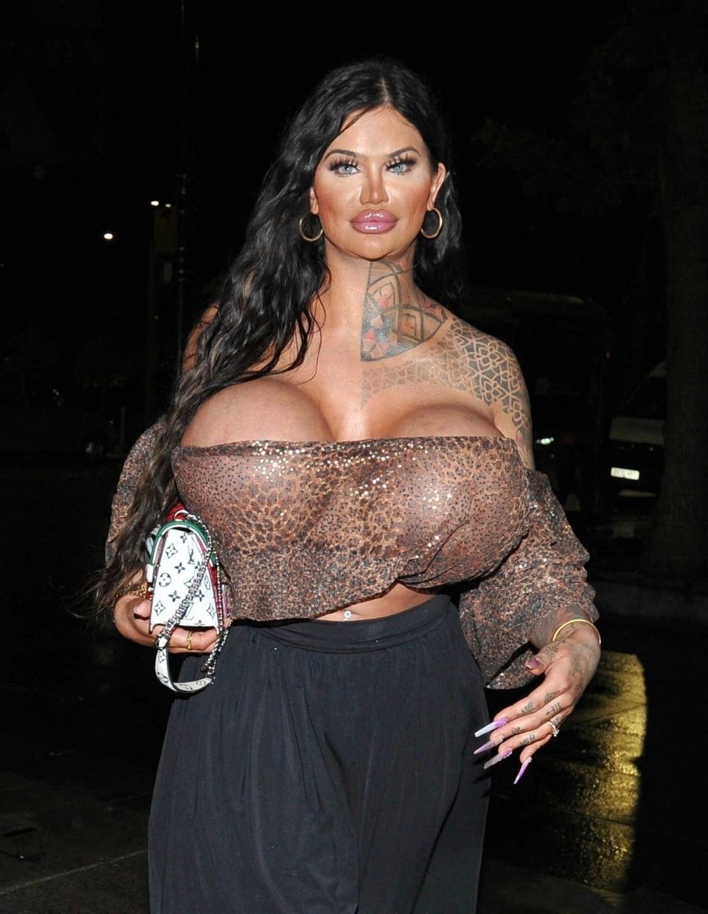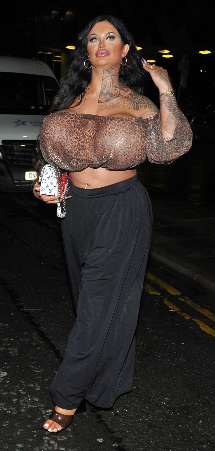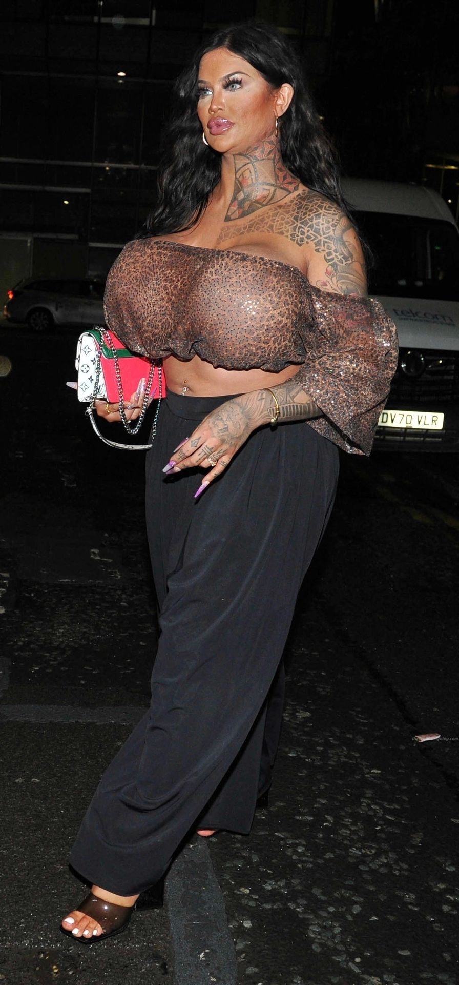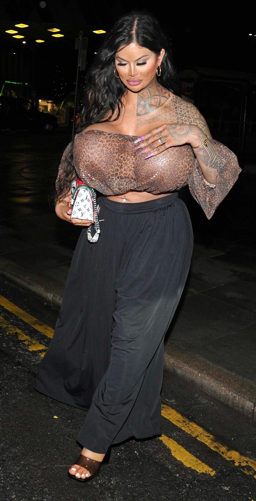 Modelo británica Nicki Valentina Rose, quien tiene los pechos más enormes del Reino Unido y ha gastado más de $55K, es vista saliendo de noche en Manchester, 08/05/2021.