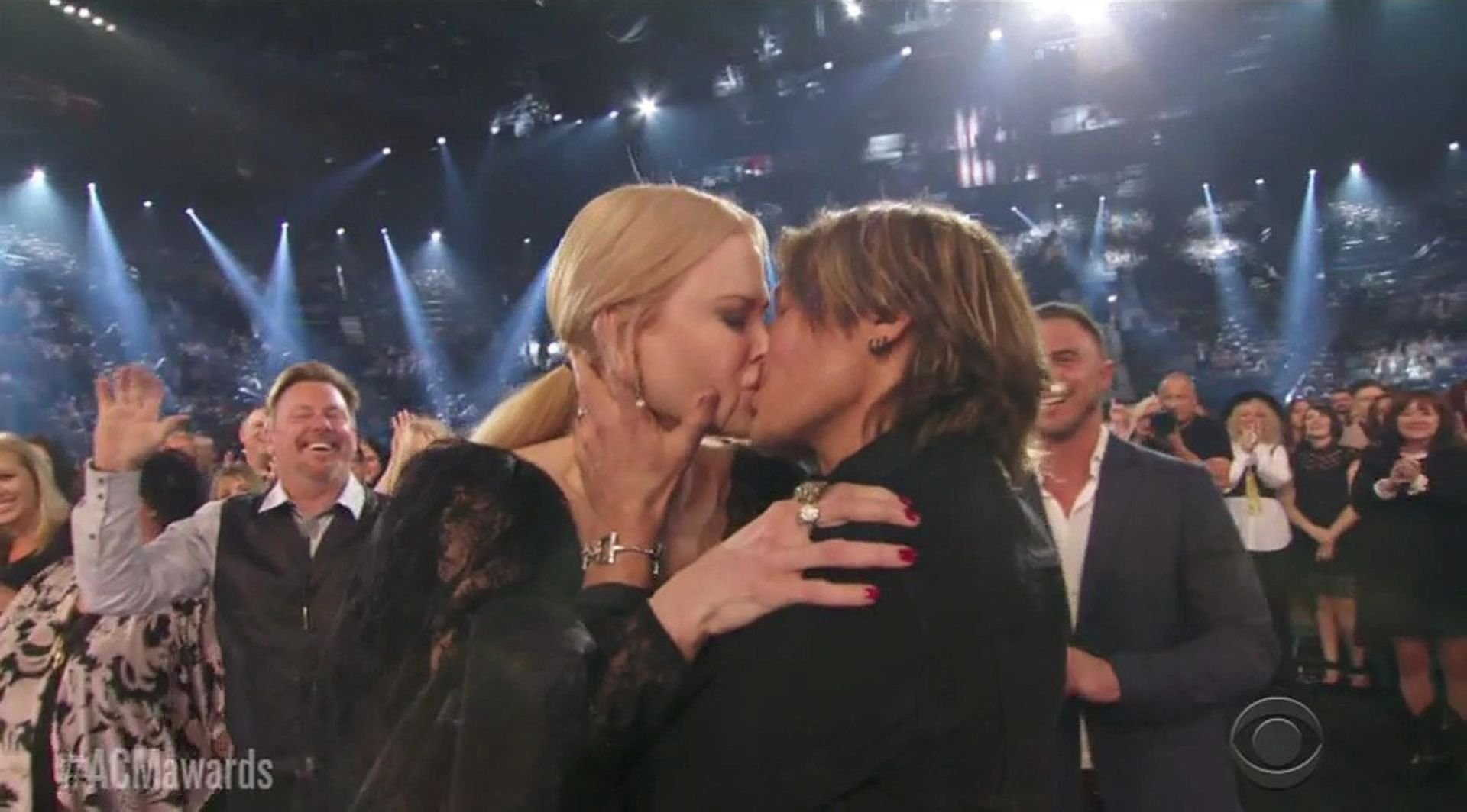La actriz quedó momentáneamente con la boca abierta después de que Urban fuera finalmente nombrado Artista del Año, ¡tras haber sido nominado nueve veces anteriormente! La pareja se miró con sorpresa antes de abrazarse y compartir varios besos. Al subir al escenario, Urban comenzó su discurso de aceptación agradeciendo a Kidman y llamándola su “niña”.