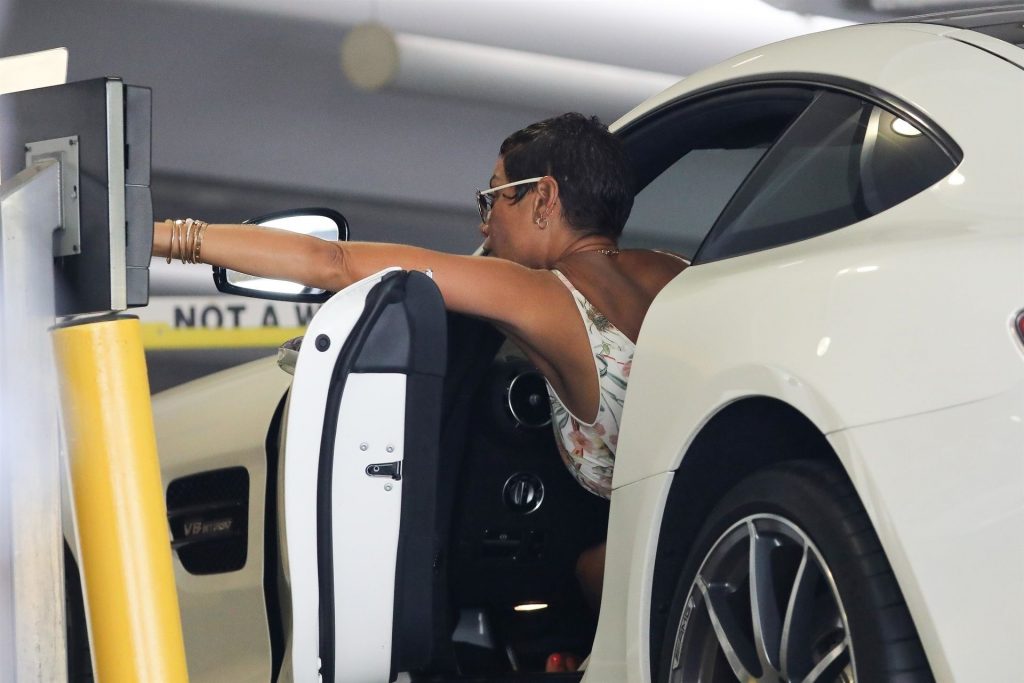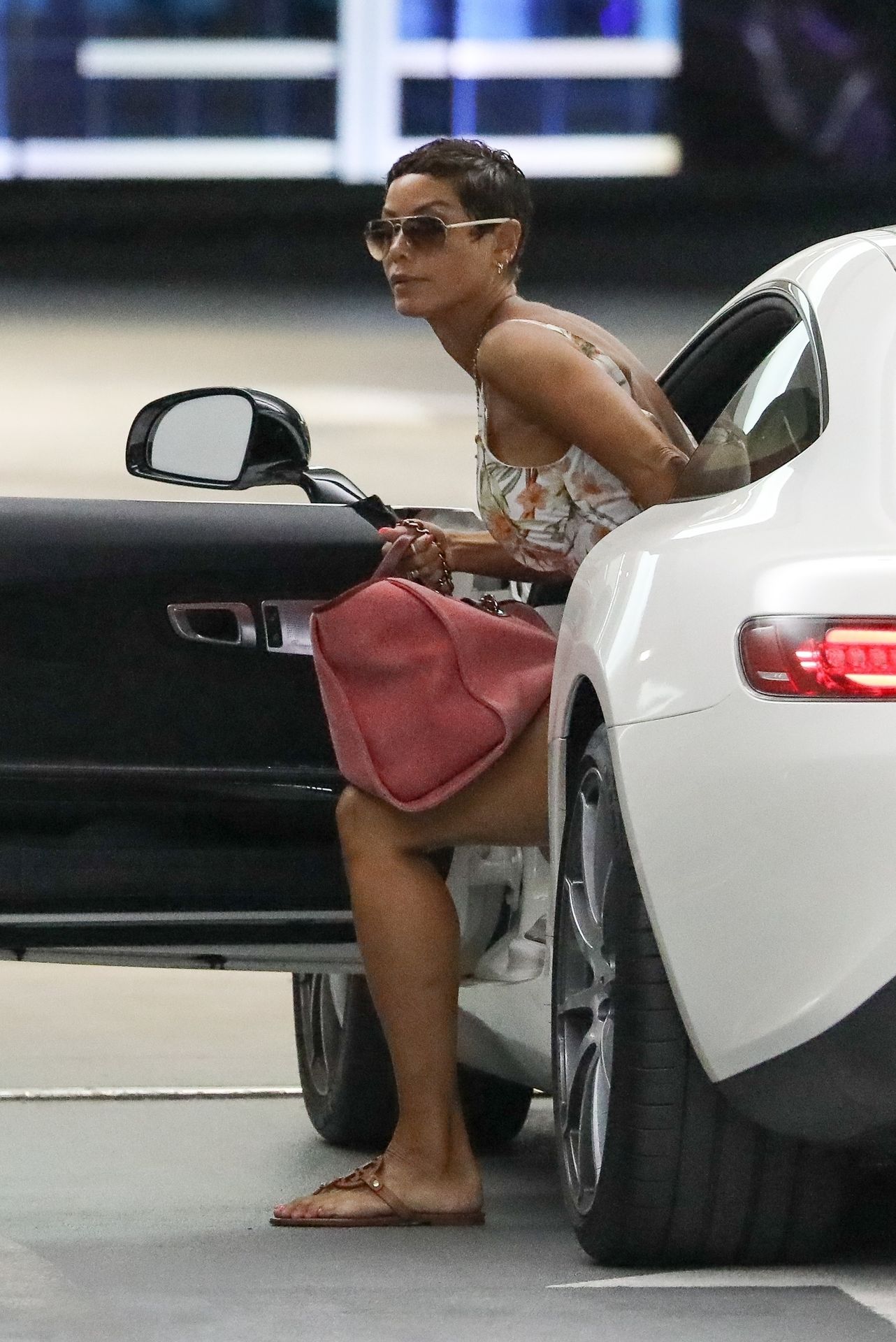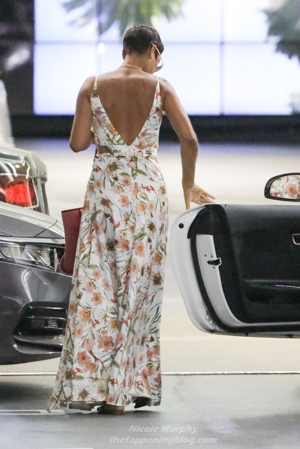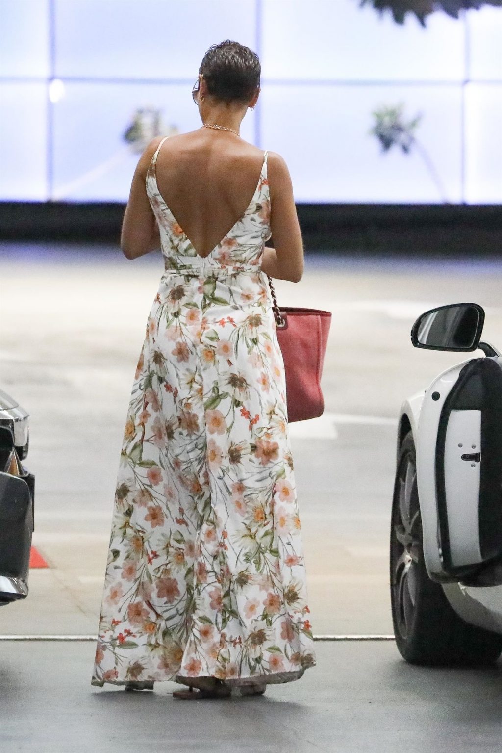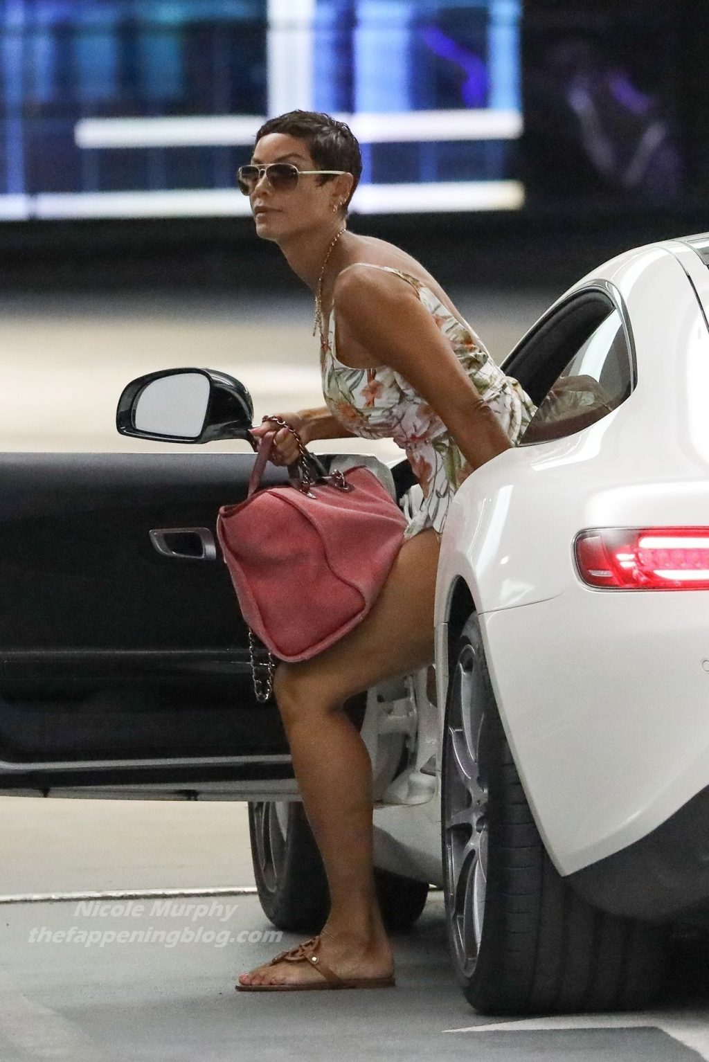 Nicole Murphy deslumbra con un vestido floral sexy con abertura mientras llega para almorzar en Soho House en West Hollywood, 28/10/2020.