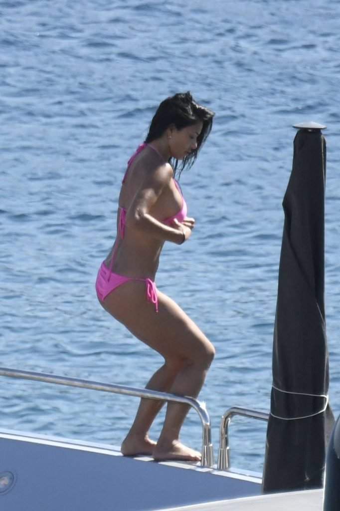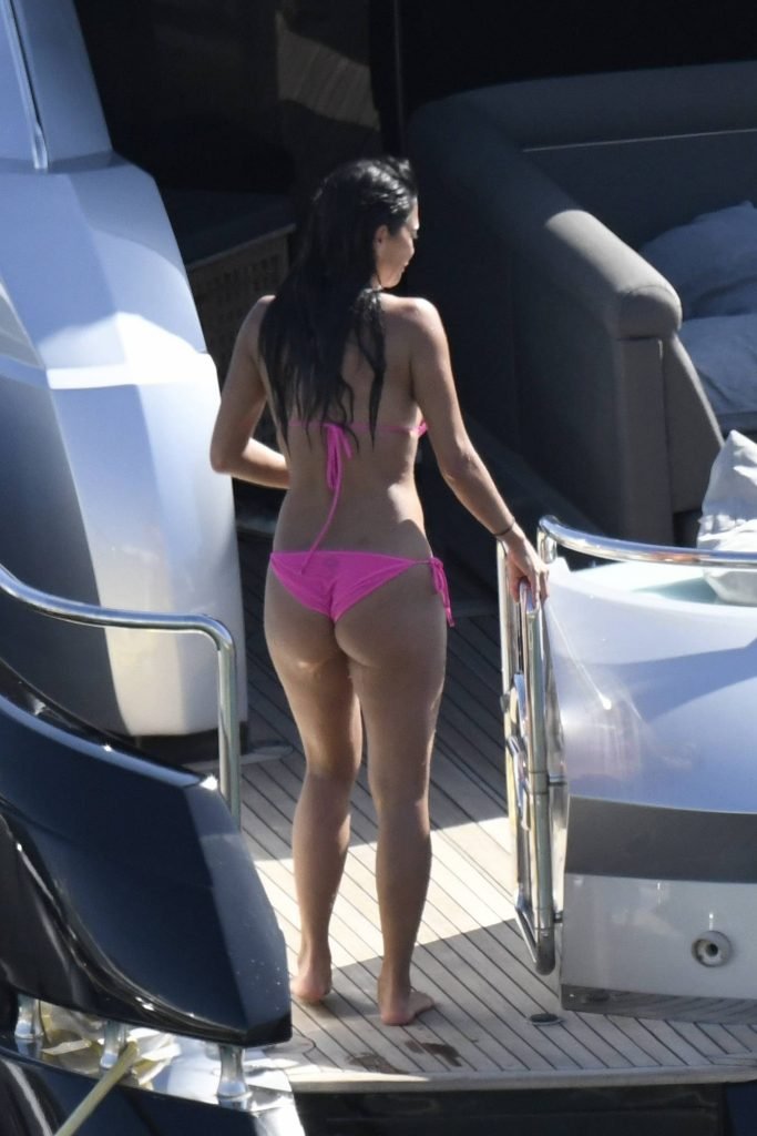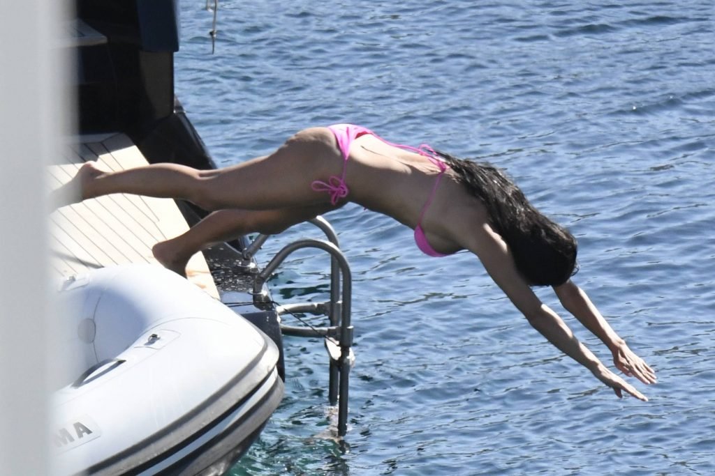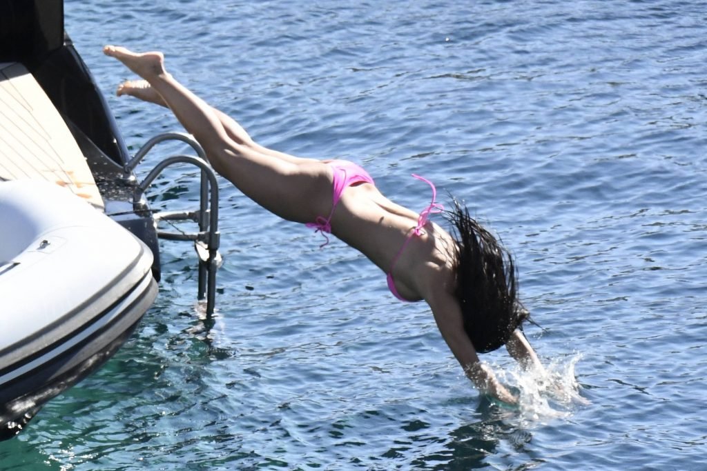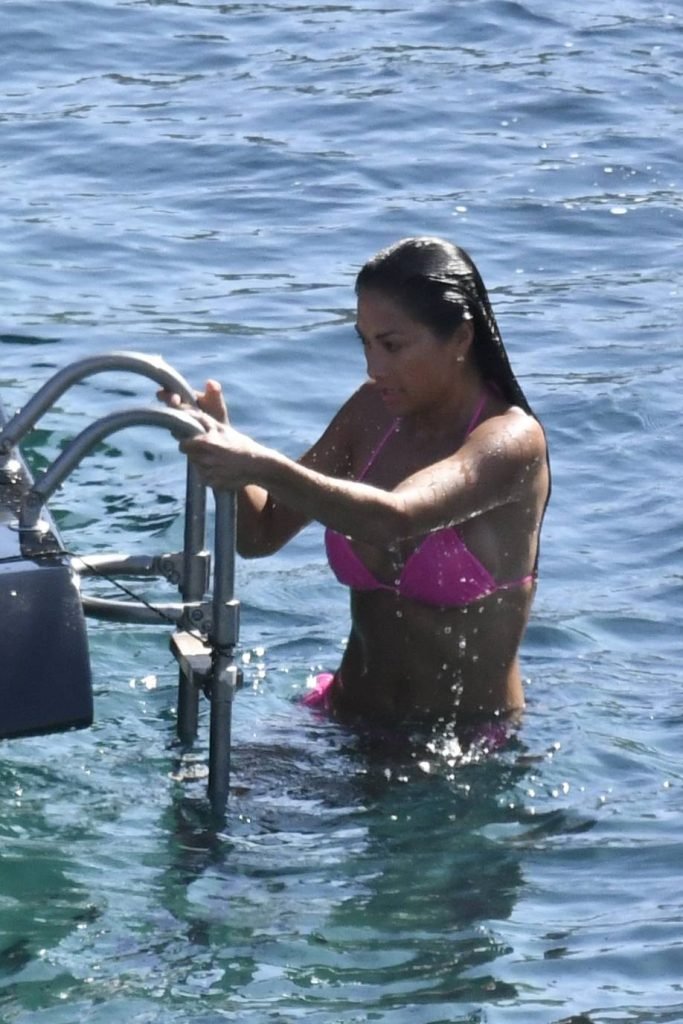 Nicole showed her stunning tanned body in a pink mini bikini, and punged into the sea.