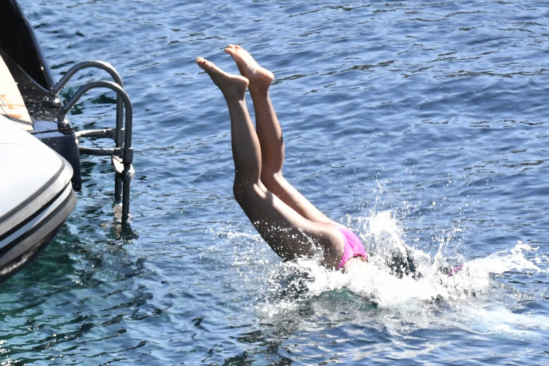 Nicole showed her stunning tanned body in a pink mini bikini, and punged into the sea.