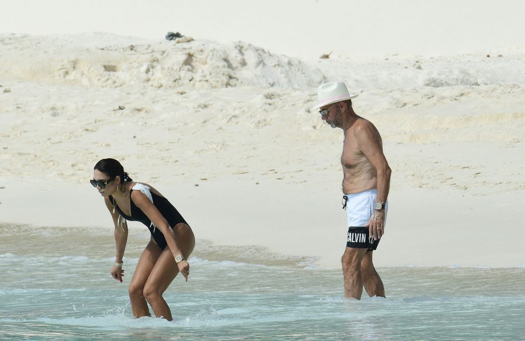 Duncan y Nigora Bannatyne fueron vistos paseando y nadando en el mar frente al Hotel Sandy Lane en Barbados, 27/12/2019.