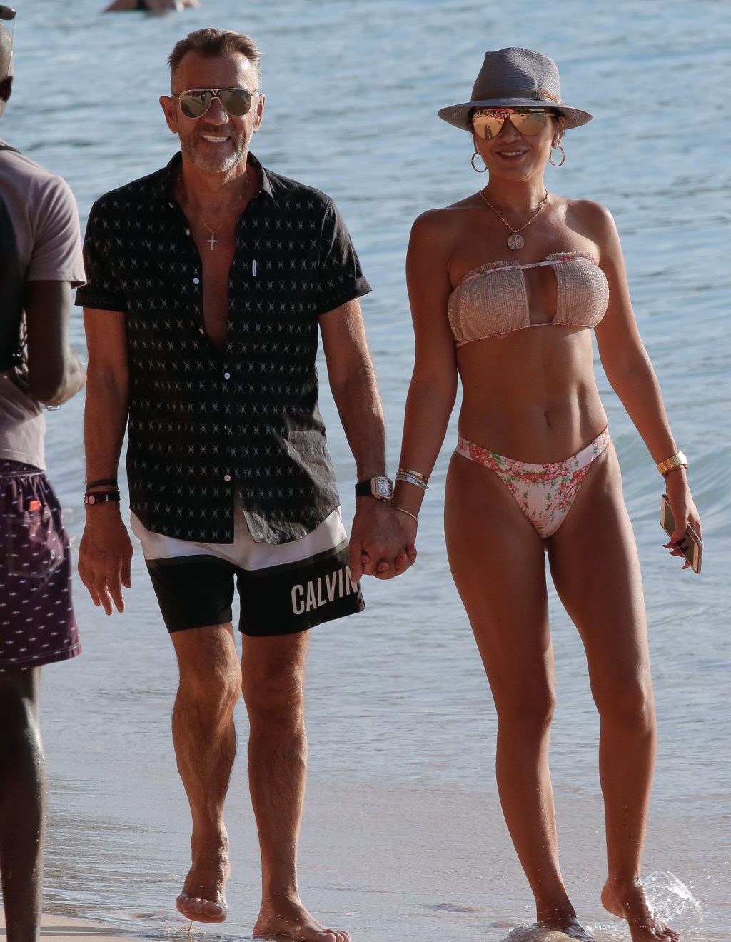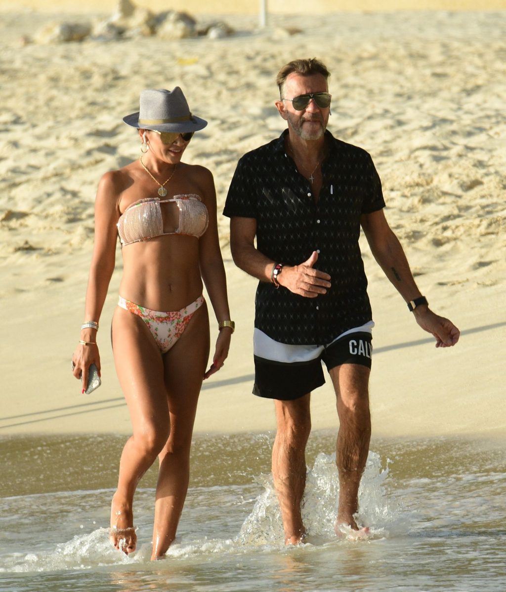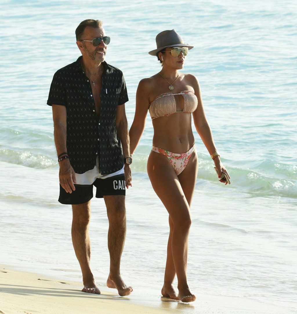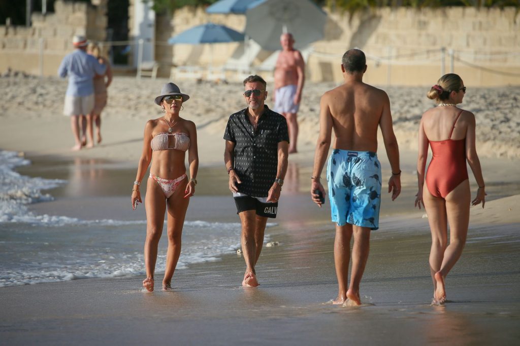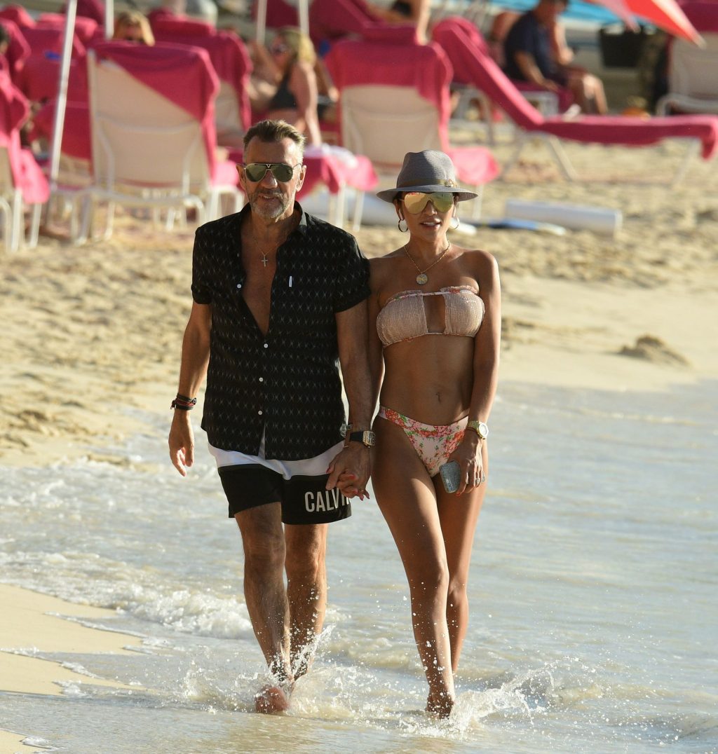 El empresario escocés Duncan Bannatyne y su esposa Nigora Bannatyne fueron fotografiados disfrutando en la playa en Barbados, 27/12/2019.
