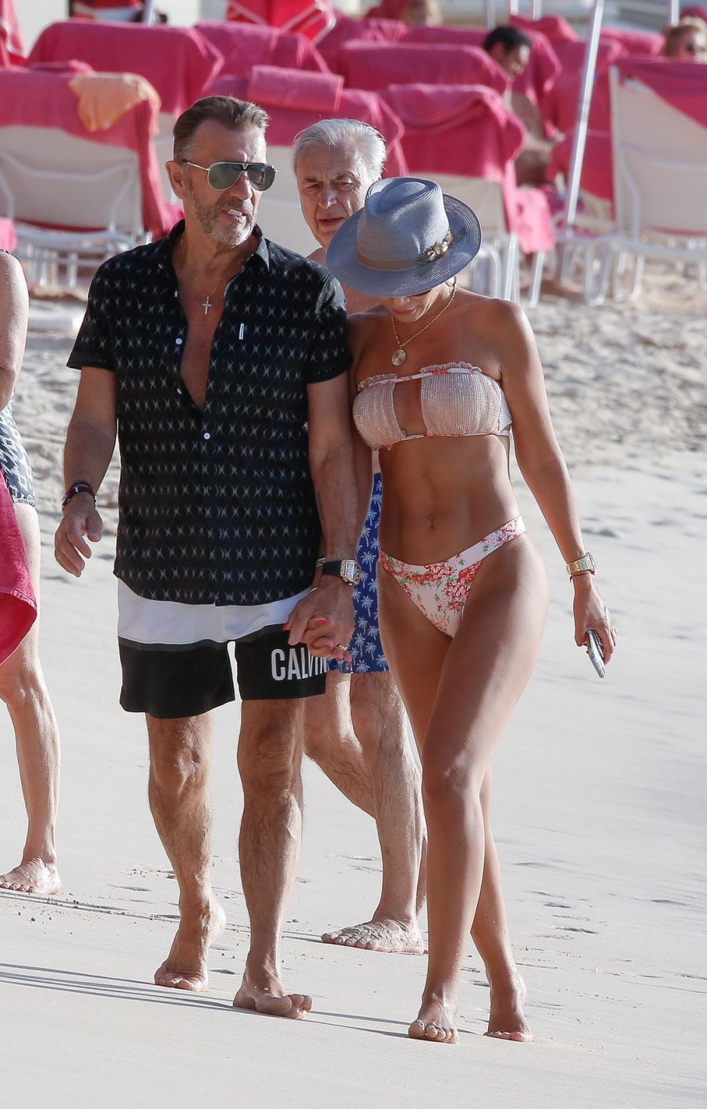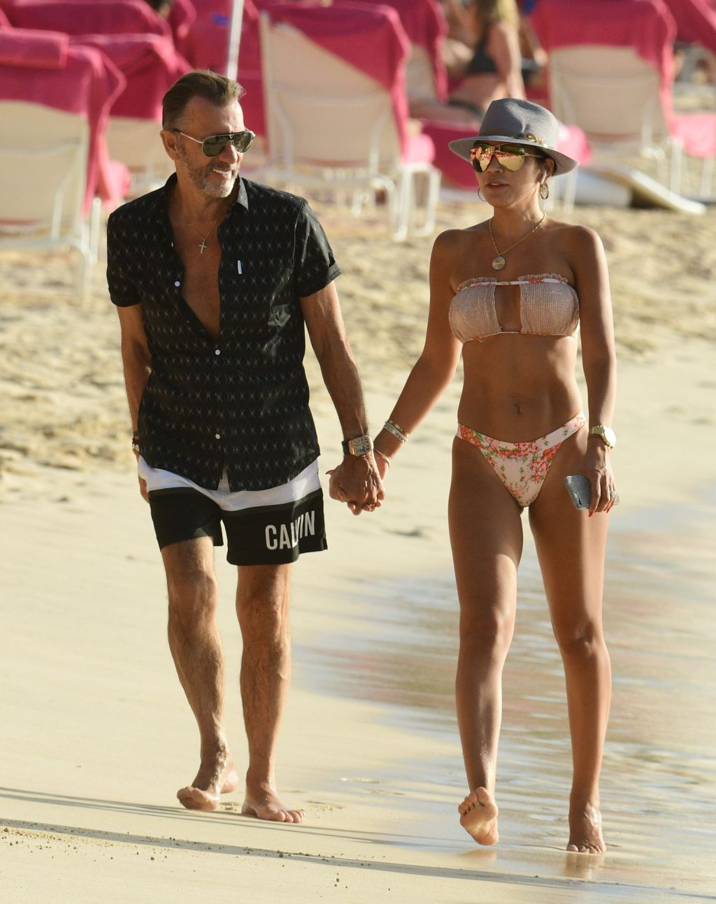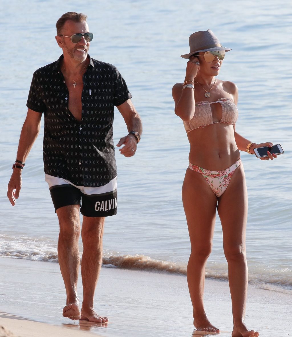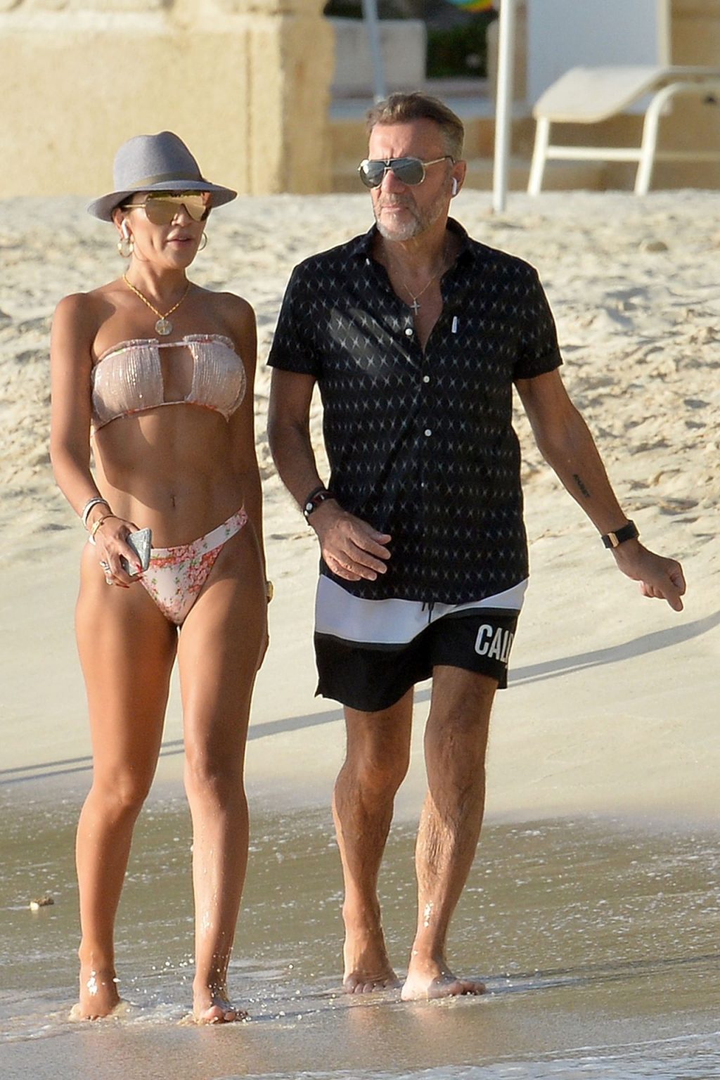 El empresario escocés Duncan Bannatyne y su esposa Nigora Bannatyne fueron fotografiados disfrutando en la playa en Barbados, 27/12/2019.