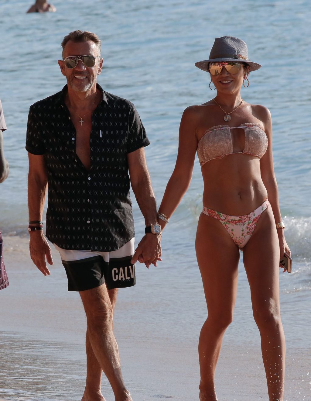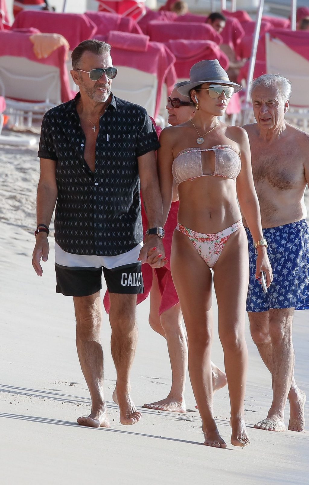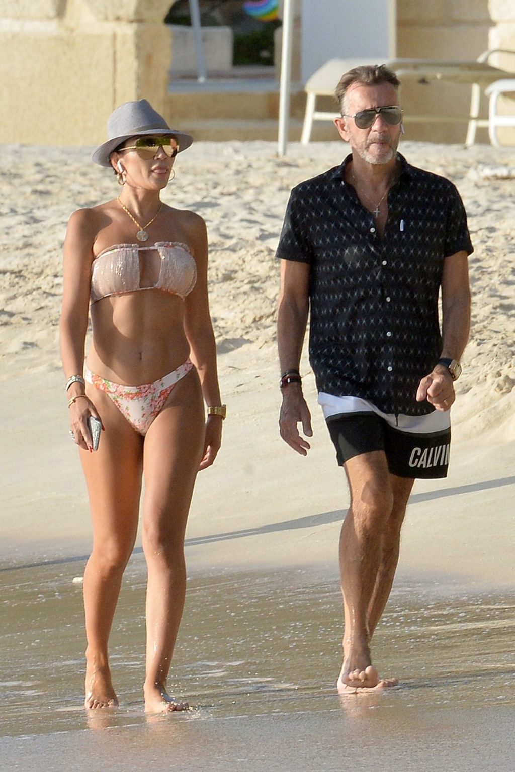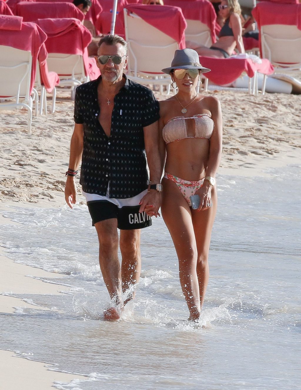 El empresario escocés Duncan Bannatyne y su esposa Nigora Bannatyne fueron fotografiados disfrutando en la playa en Barbados, 27/12/2019.