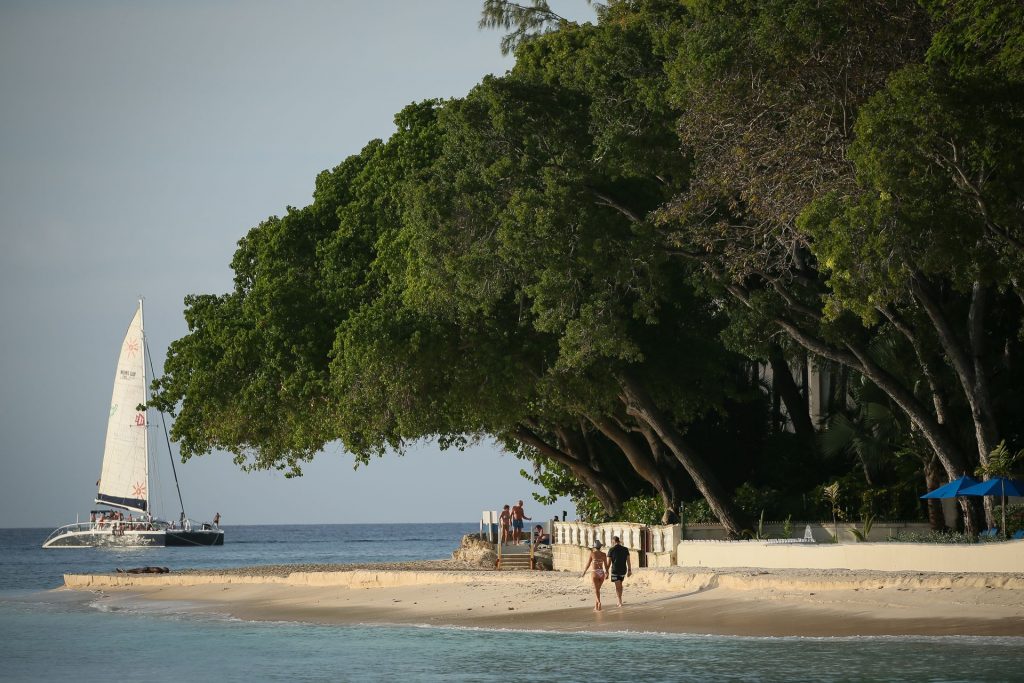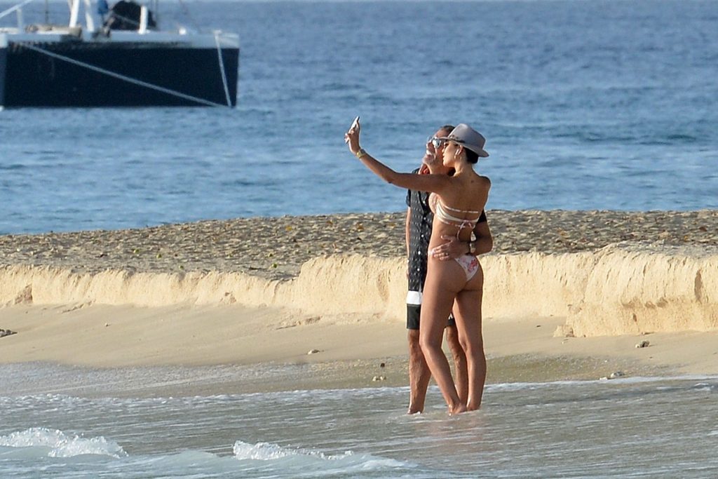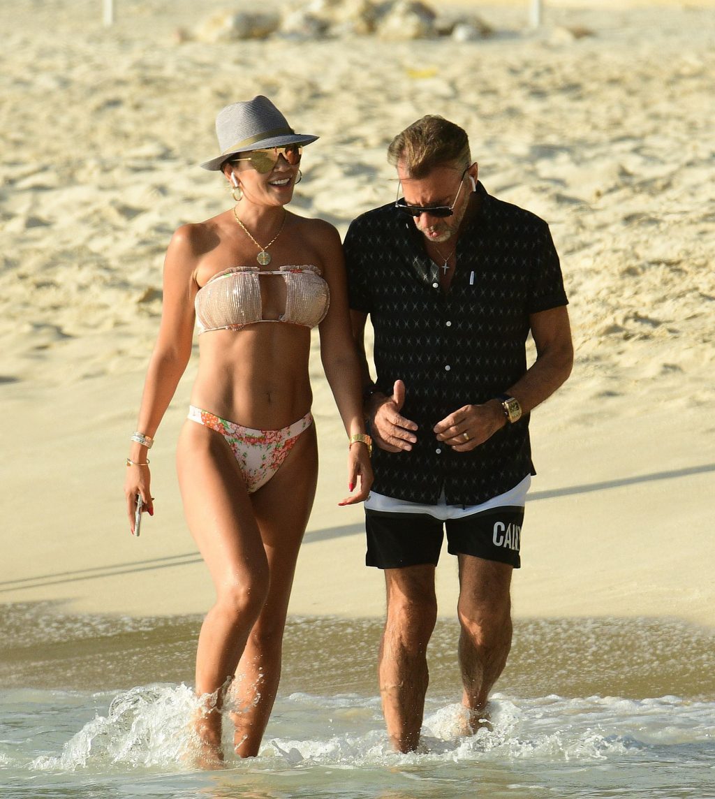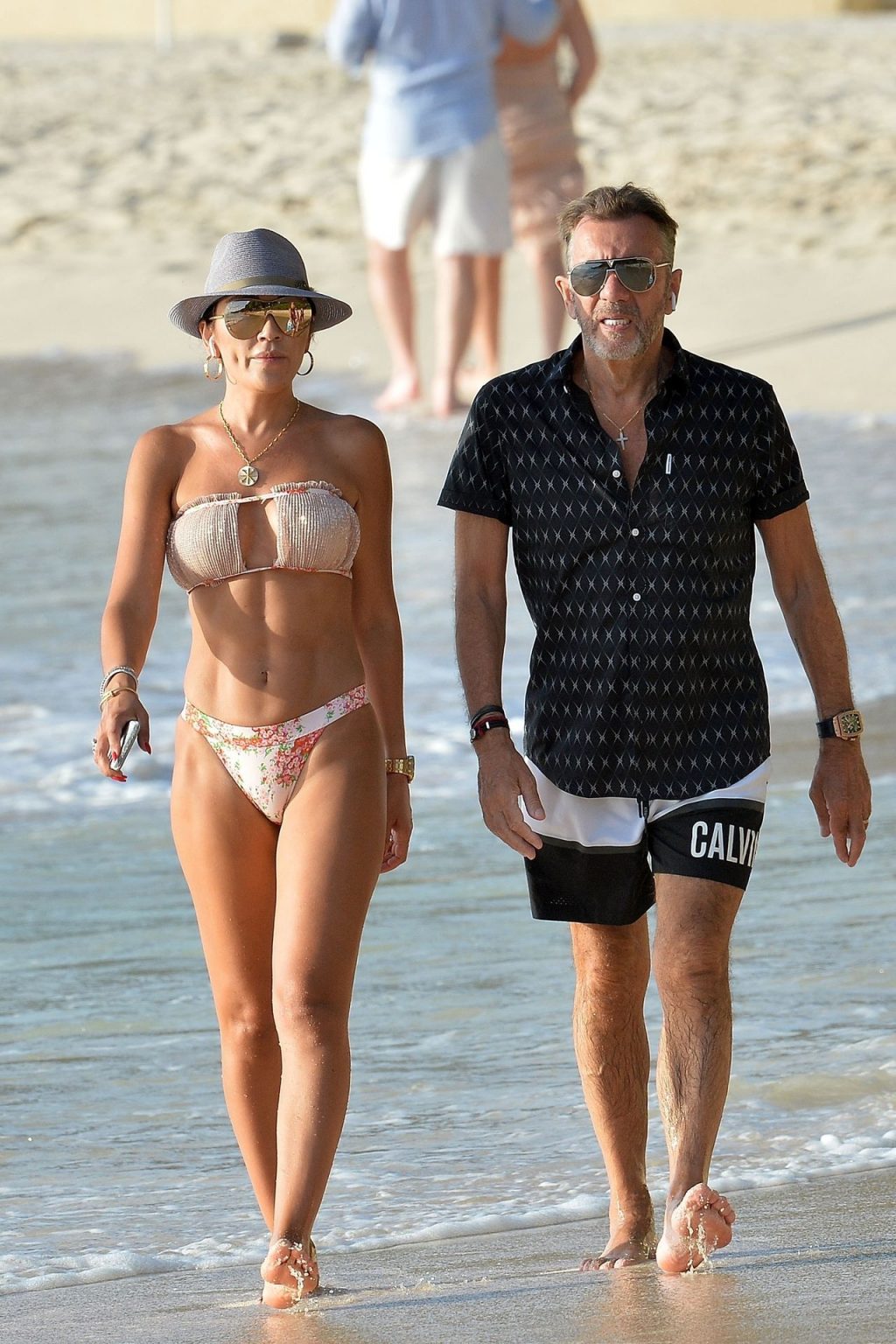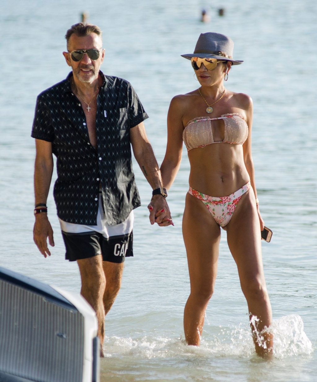 El empresario escocés Duncan Bannatyne y su esposa Nigora Bannatyne fueron fotografiados disfrutando en la playa en Barbados, 27/12/2019.