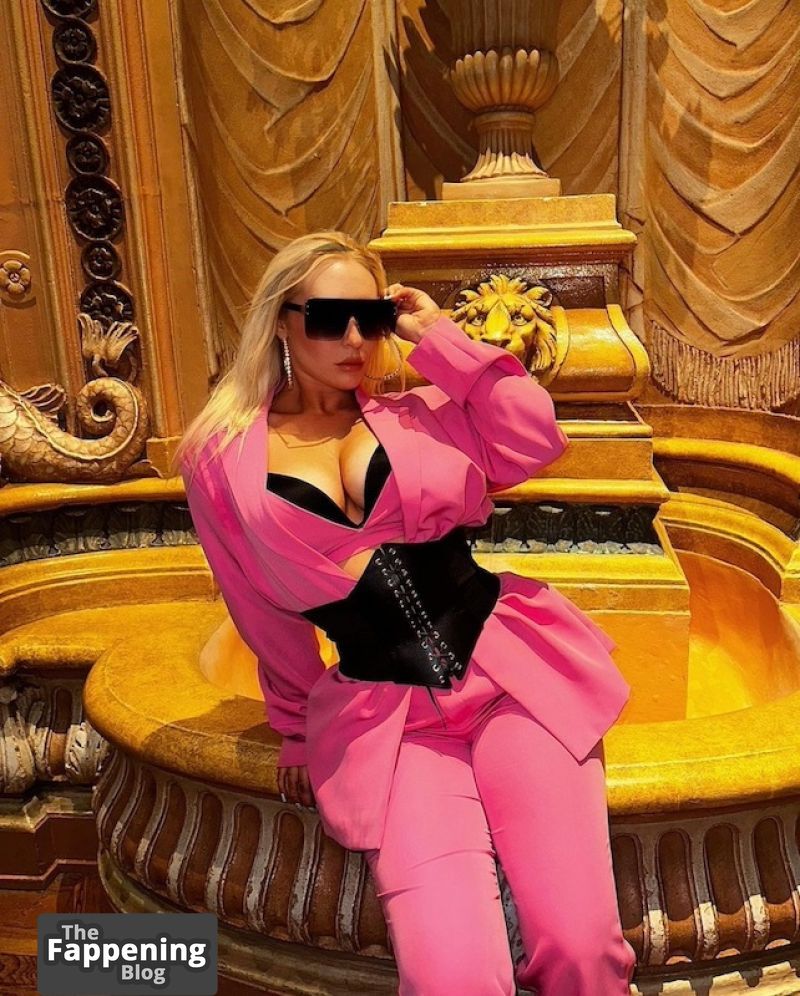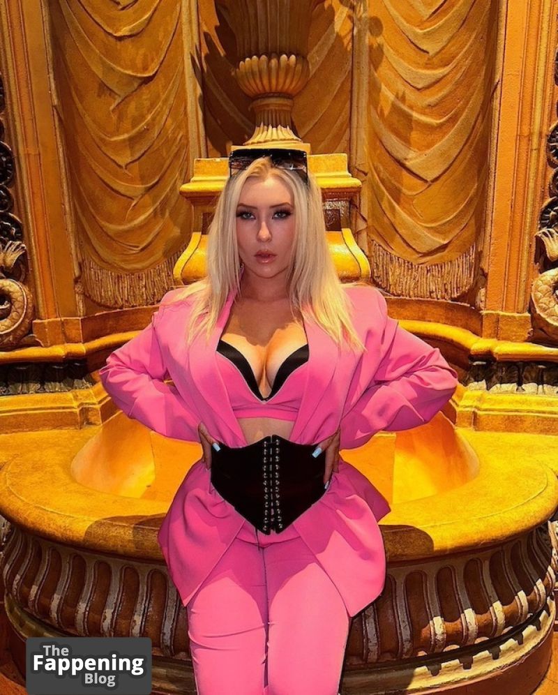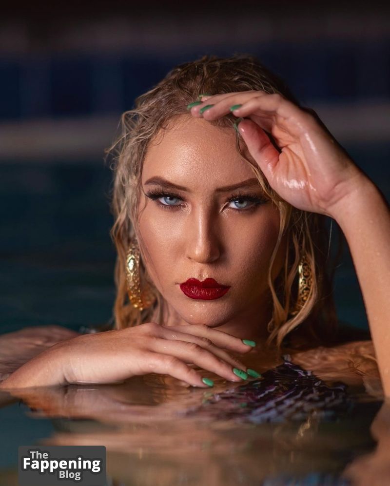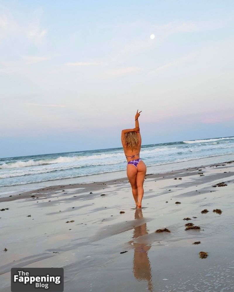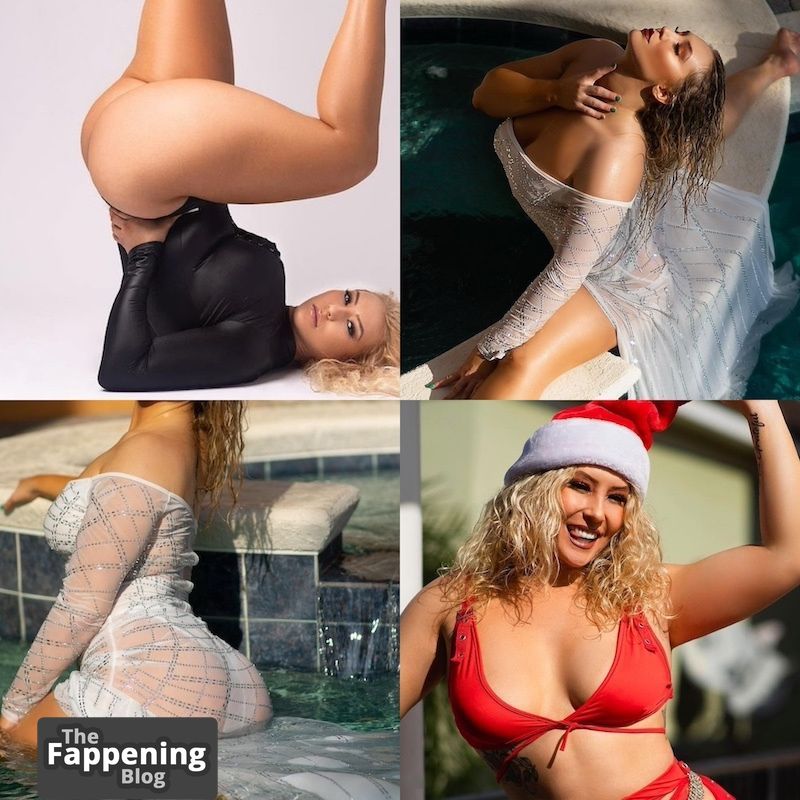 Nikkita Lyons muestra su pecho sin sostén, exhibiendo un escote tentador con sus abundantes melones, su trasero seductor y voluptuoso, y su físico de modelo en bikinis tanga reveladores y conjuntos escasos.