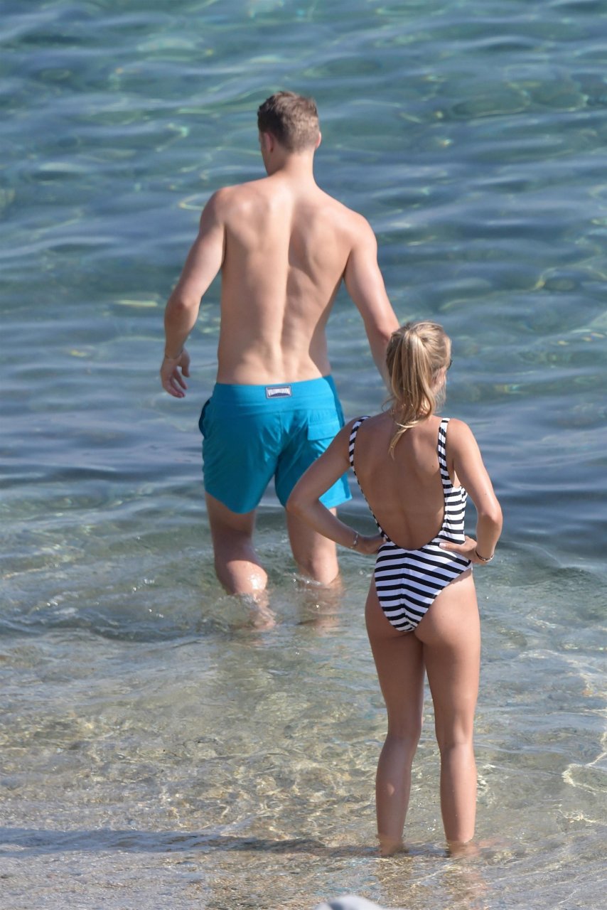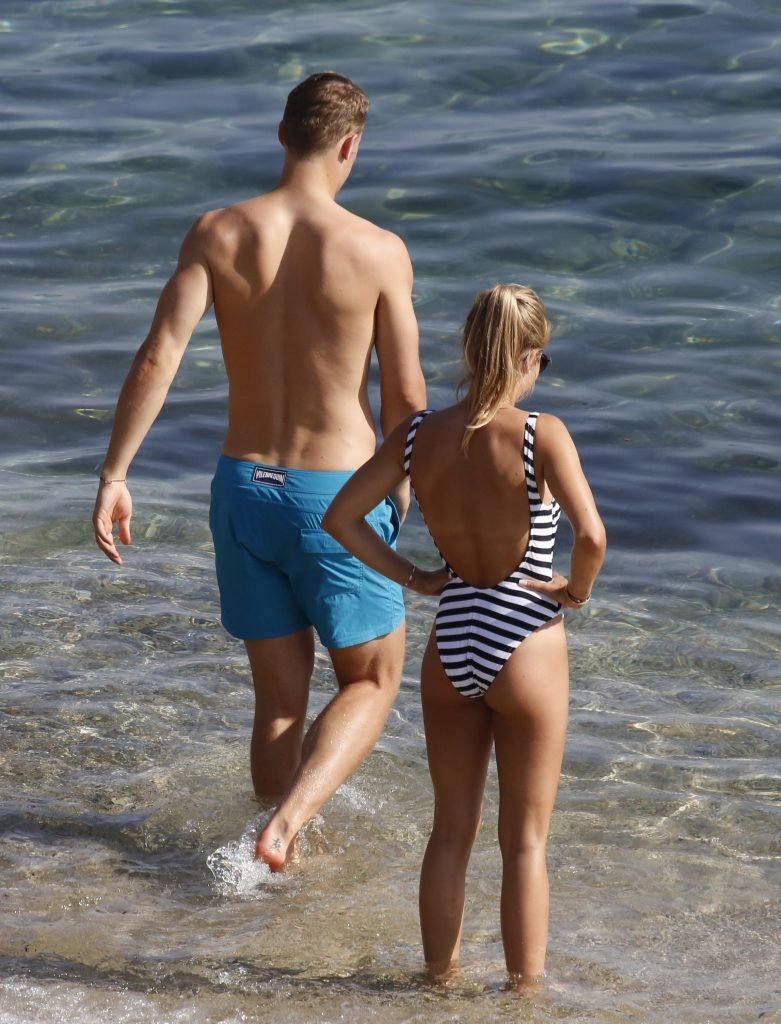 El portero alemán y del Bayern Munich, Manuel Neuer, disfruta de un día en la playa con su esposa Nina Weiss en Mykonos, 07/06/2018.