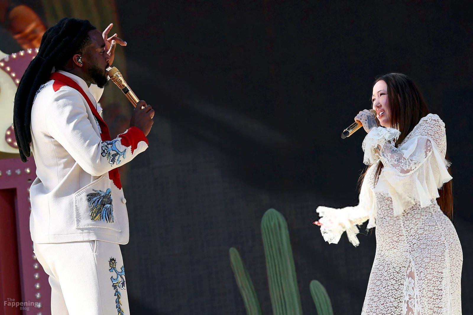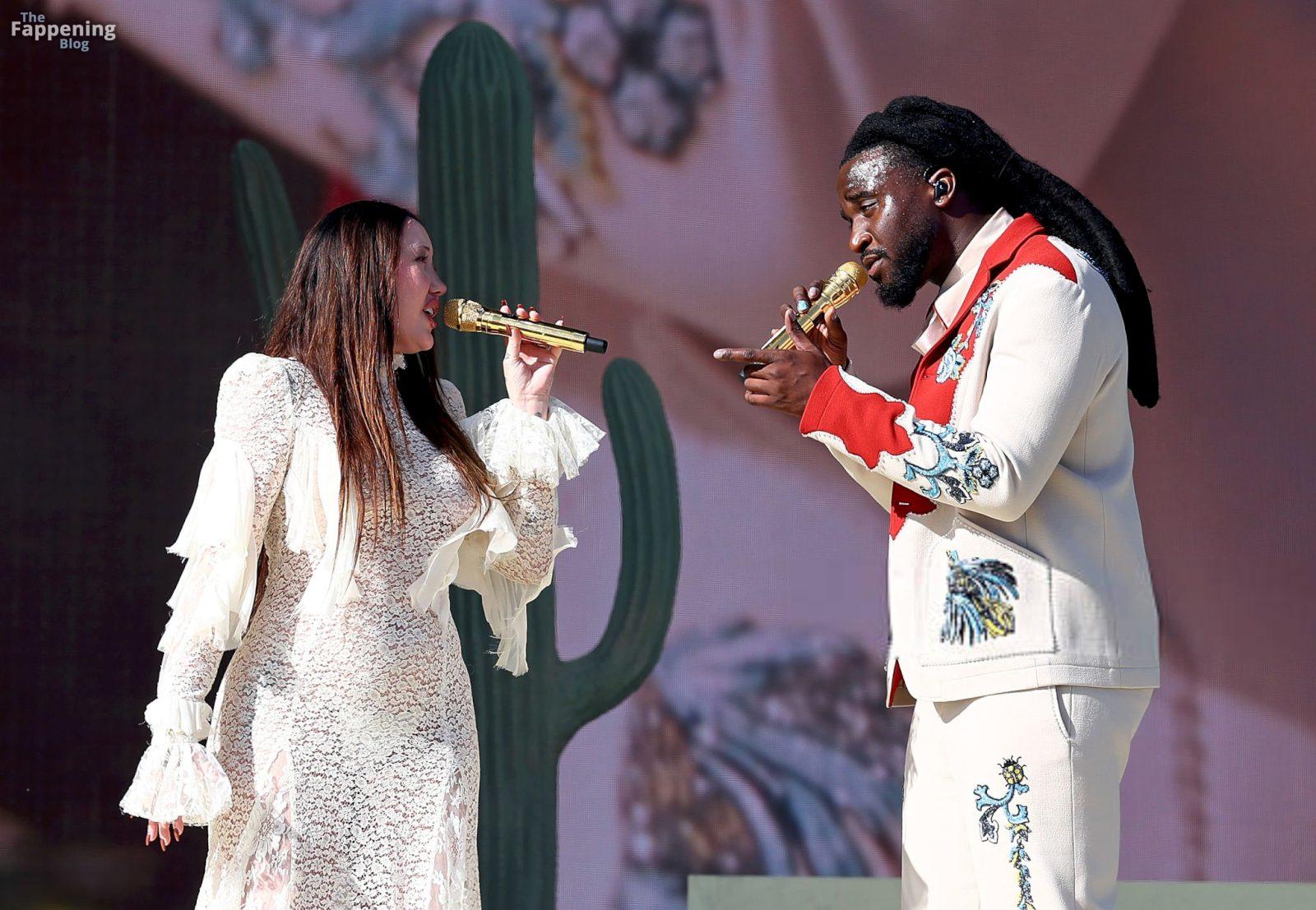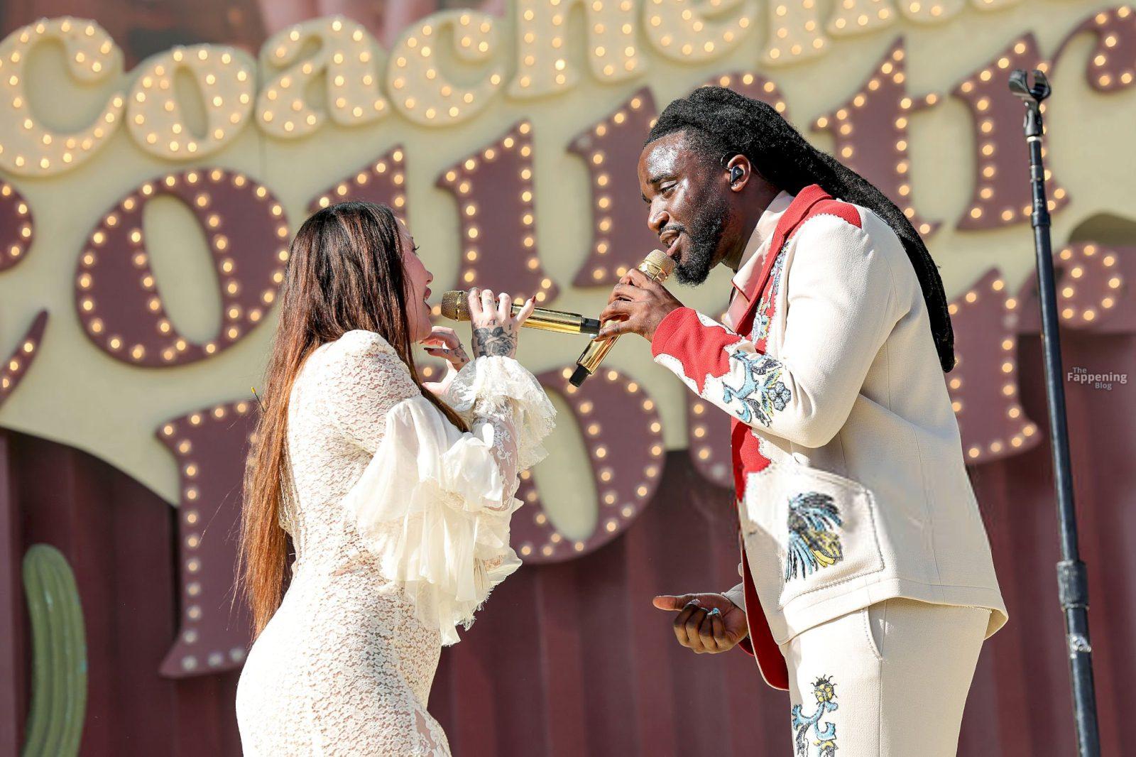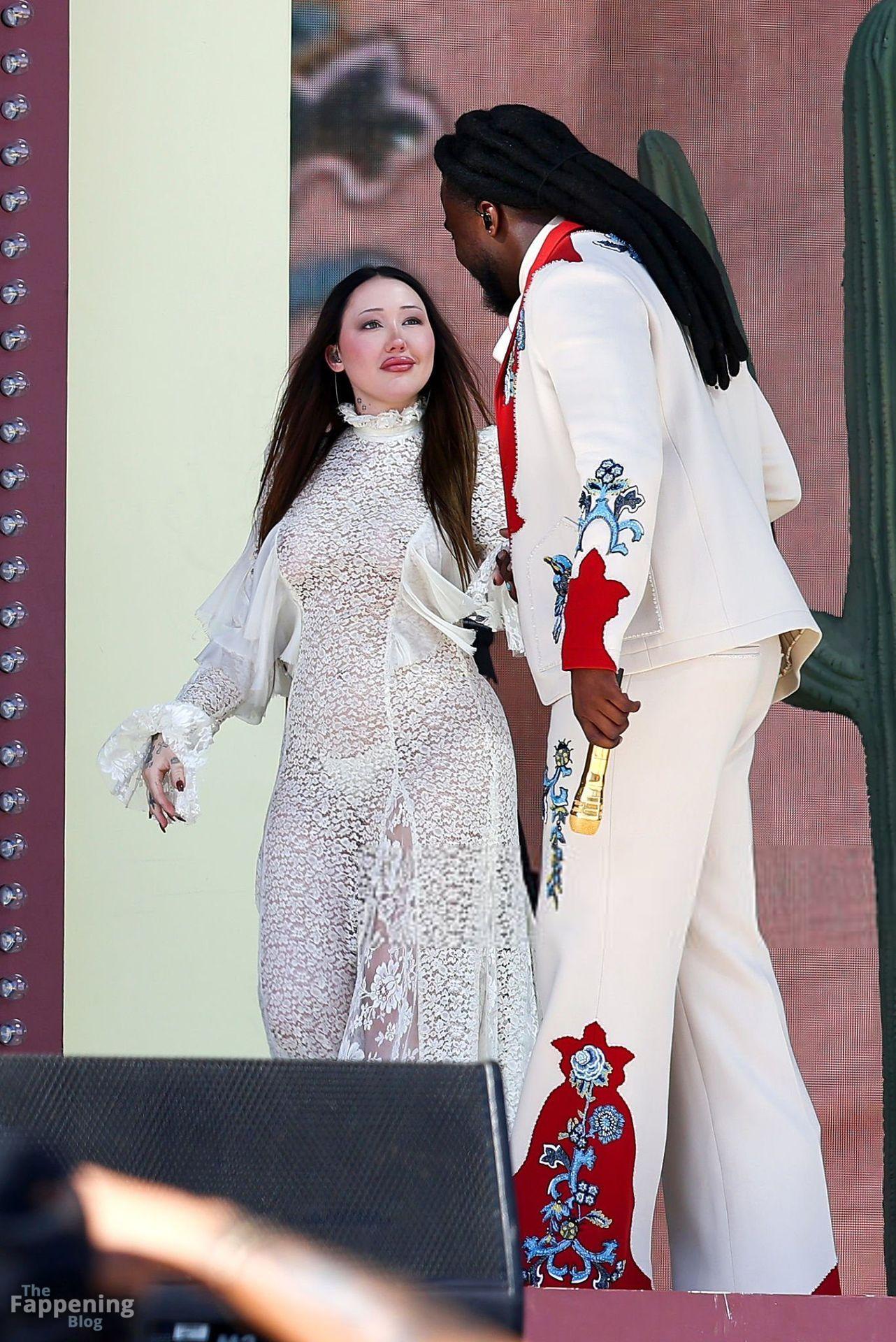 Noah Cyrus muestra sus tetas desnudas mientras actúa con un vestido transparente en Coachella (18 fotos)