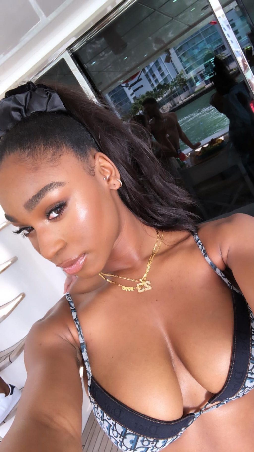 Consulta la sexy colección de fotos de Normani en Instagram (2019-2020). A la chica negra le encanta mostrar sus bonitos pechos, posando en lencería o bikinis para sus admiradores.