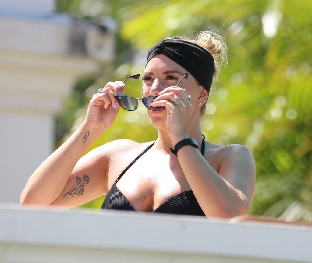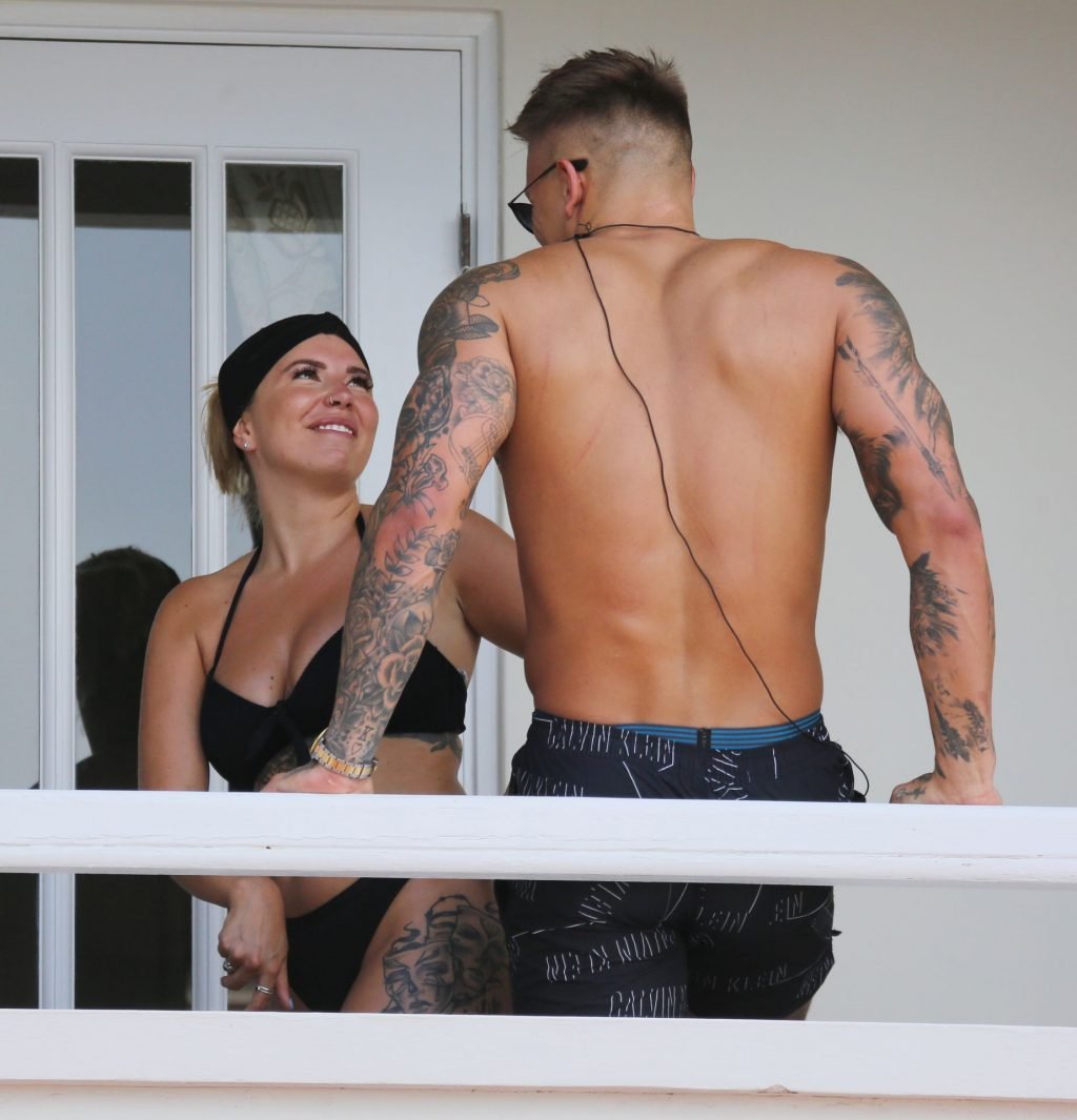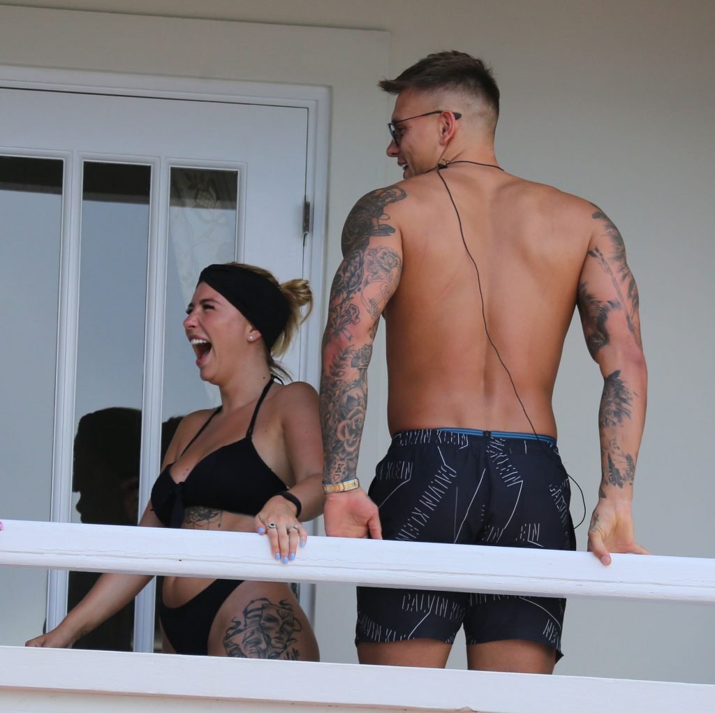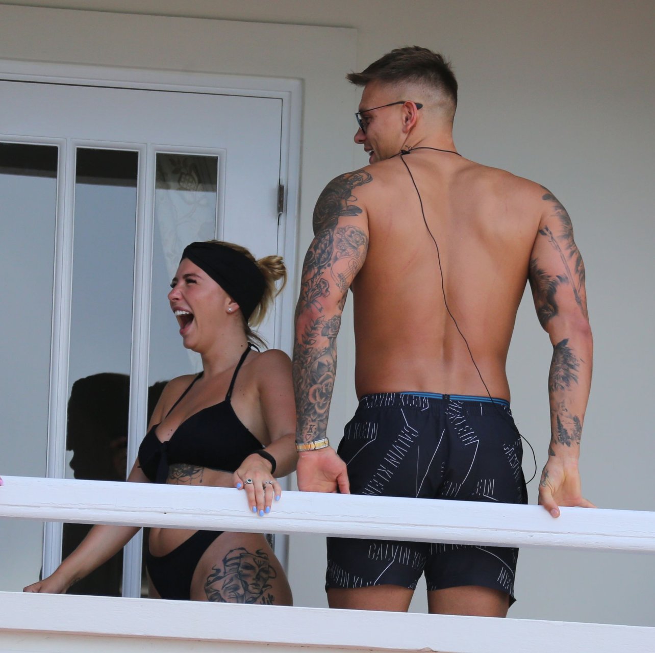 Alex Bowen y Olivia Buckland son fotografiados disfrutando de un día junto a la piscina mientras posan y se besan en un nuevo proyecto en Barbados, 21/07/2019.