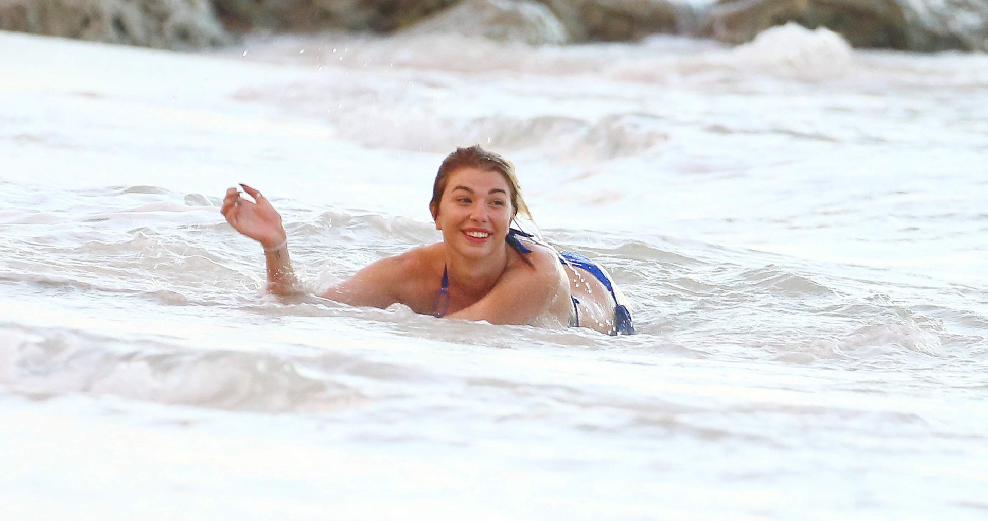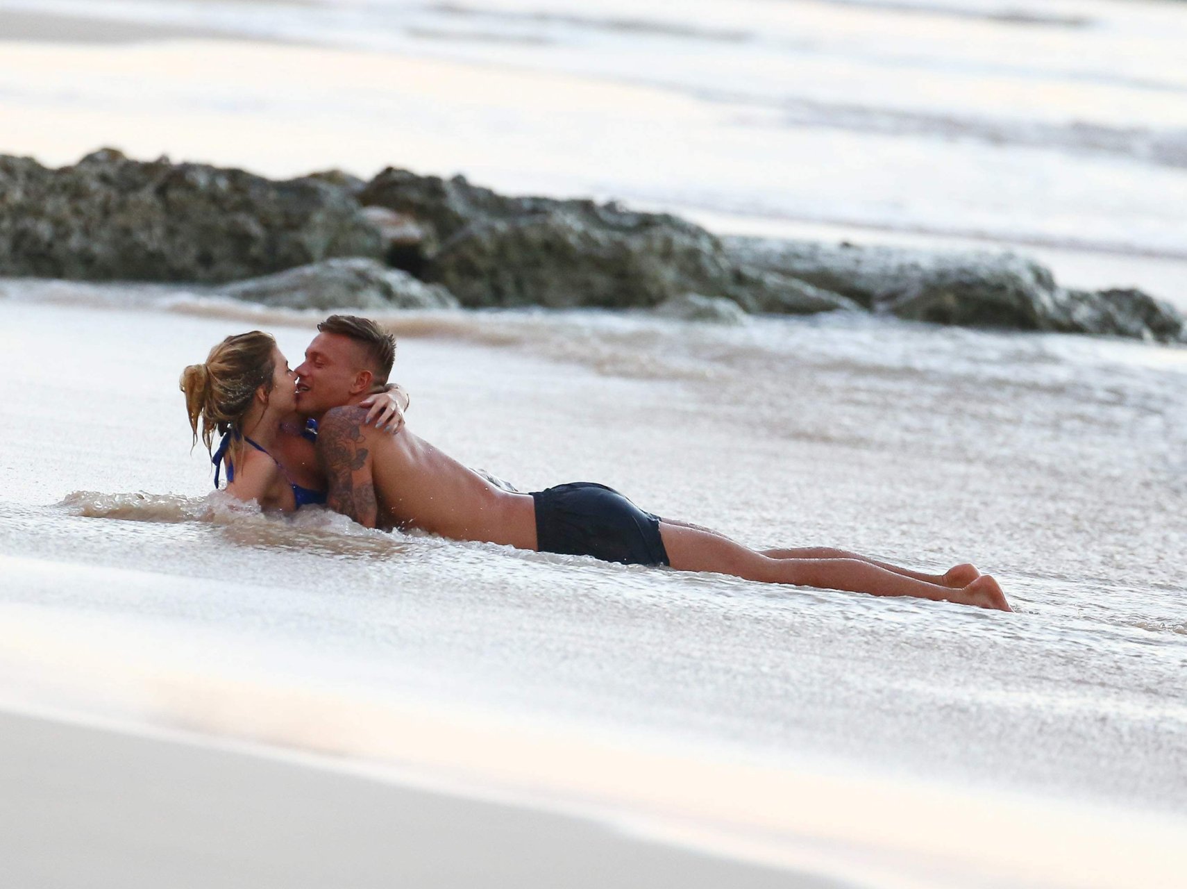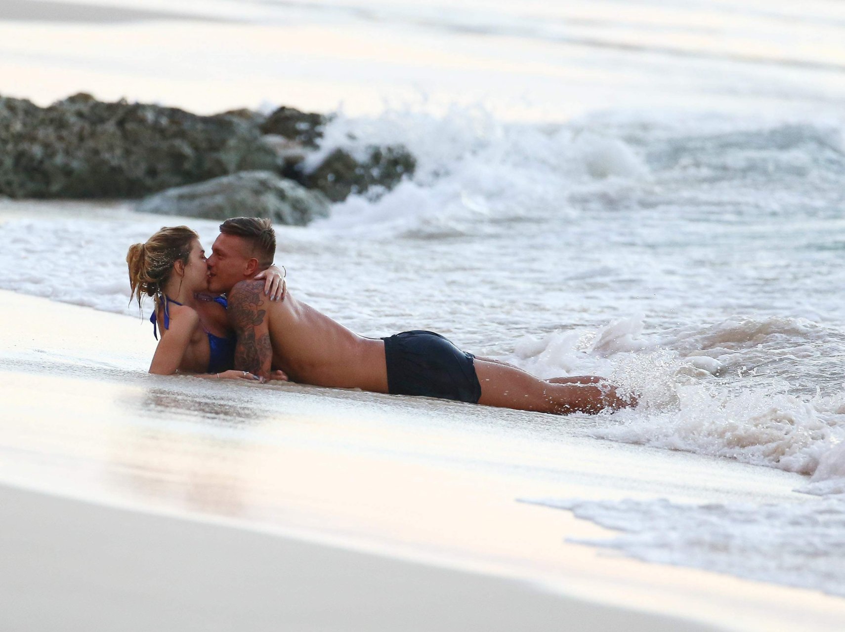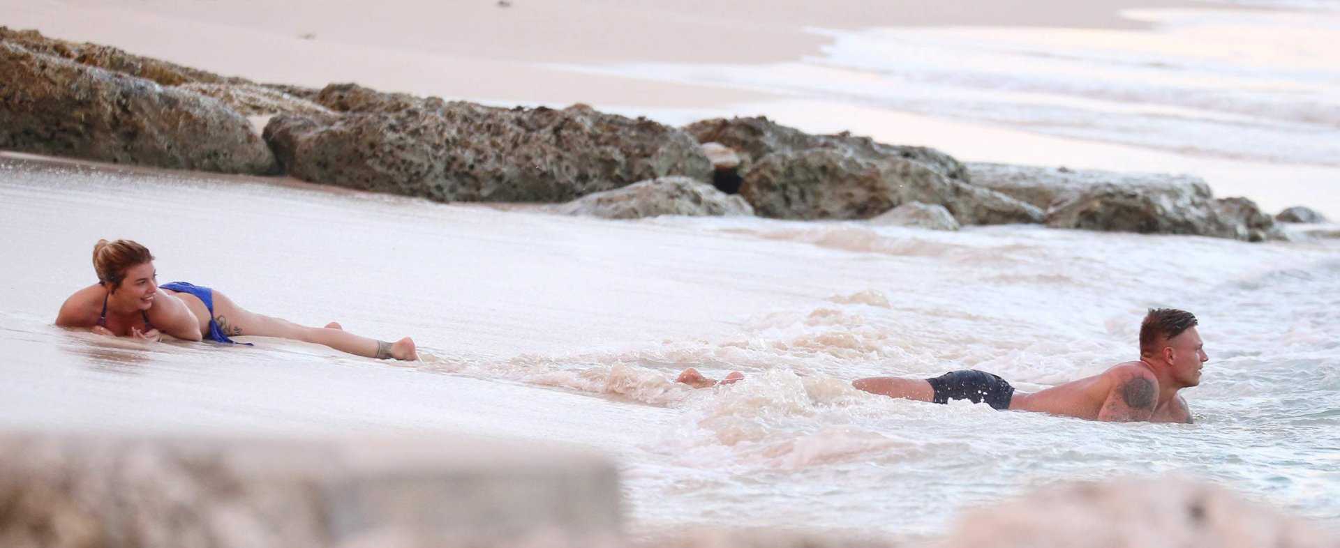 Olivia Buckland lleva un pequeño bikini azul con su pareja en Barbados, 31/10/2016. ¡Está lista para tener sexo en la playa! Olivia Buckland es una estrella británica de reality (Love Island). Edad: 22