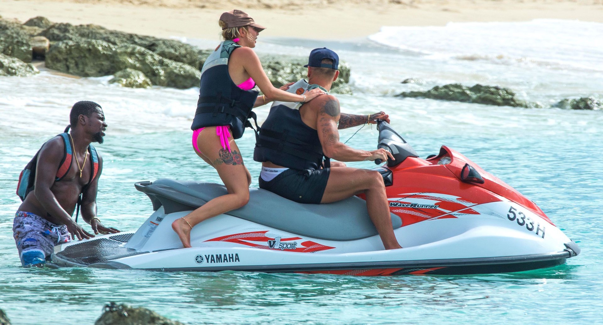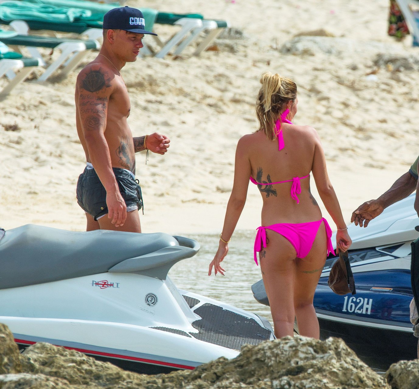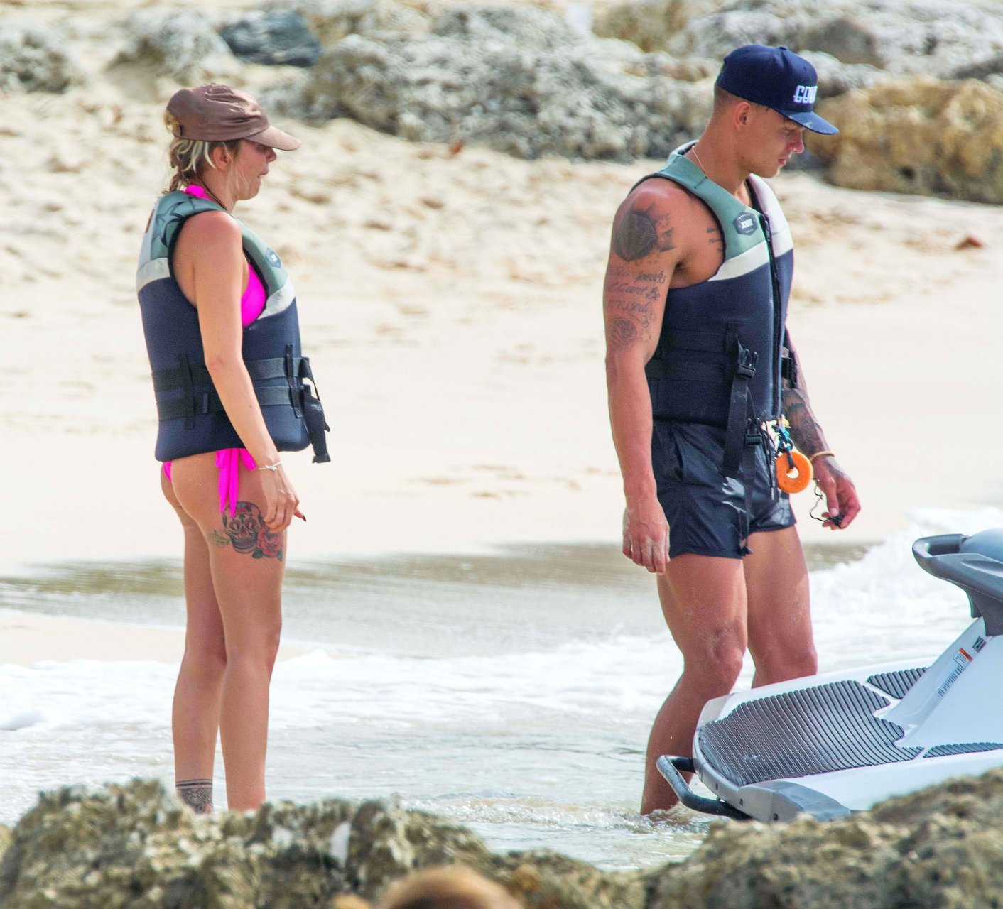 Olivia Buckland continúa sus vacaciones en bikini rosa con su pareja en la playa de Barbados, 11/04/2016. Olivia Buckland es una estrella británica de reality (Love Island). Edad: 22
