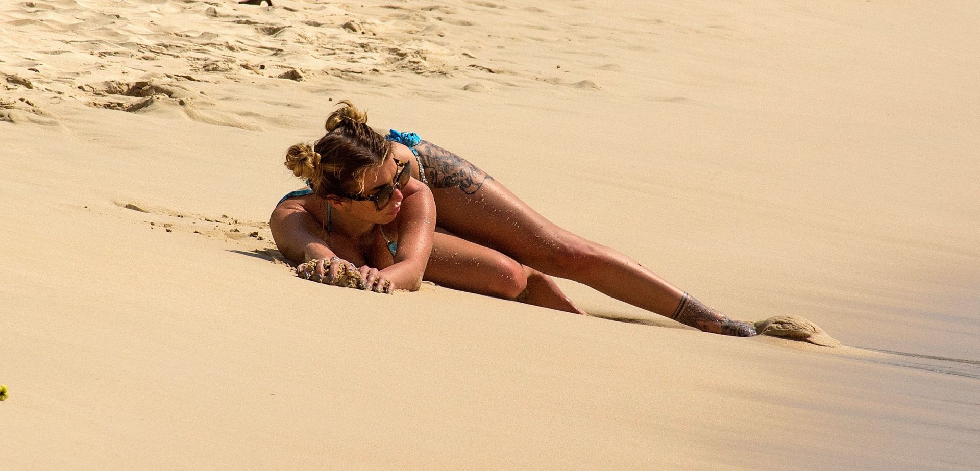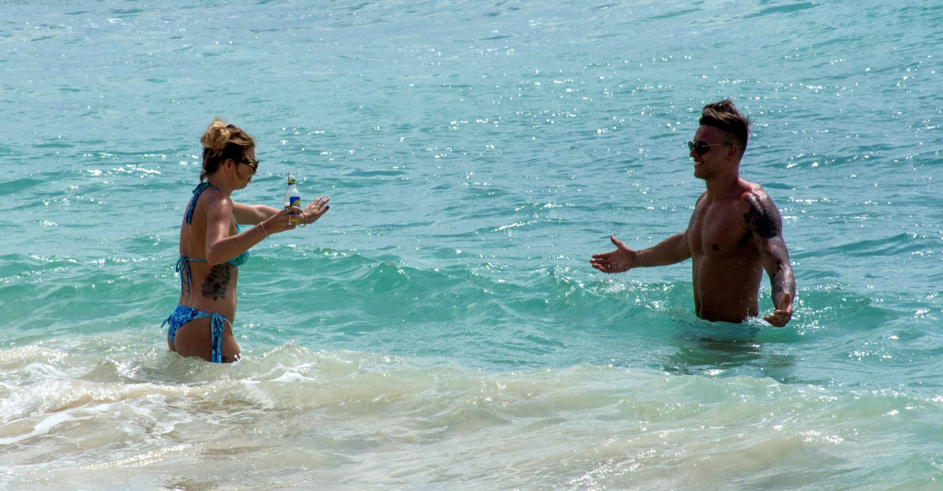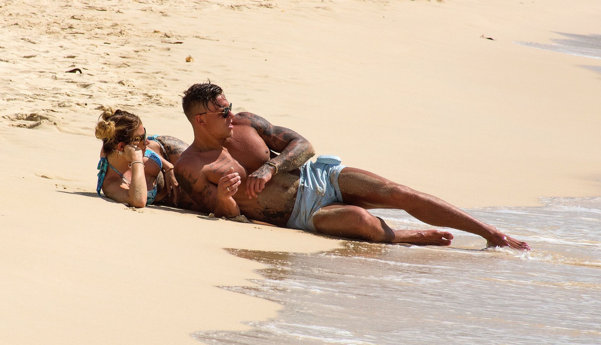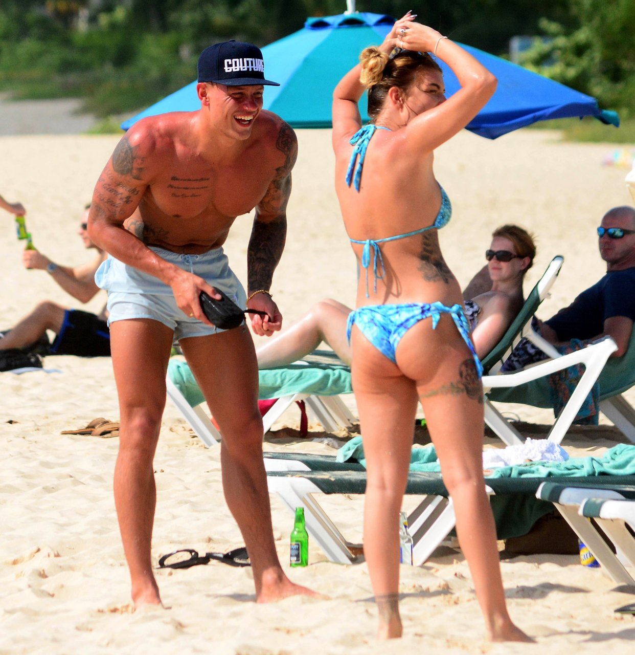Olivia Buckland disfruta de las vacaciones con su pareja en Barbados, 01/11/2016. ¡Bonita pareja tatuada! Olivia Buckland es una estrella británica de reality (Love Island). Edad: 22