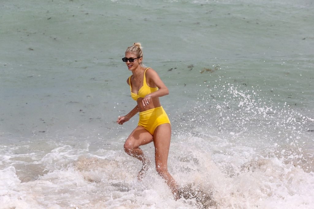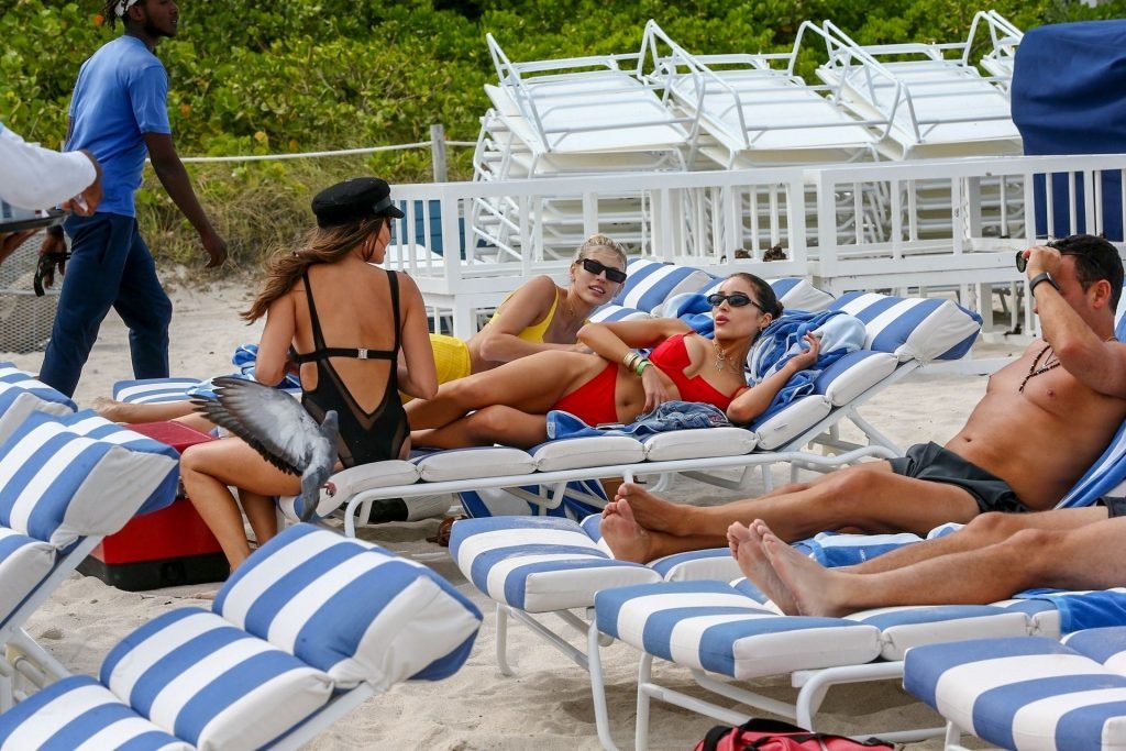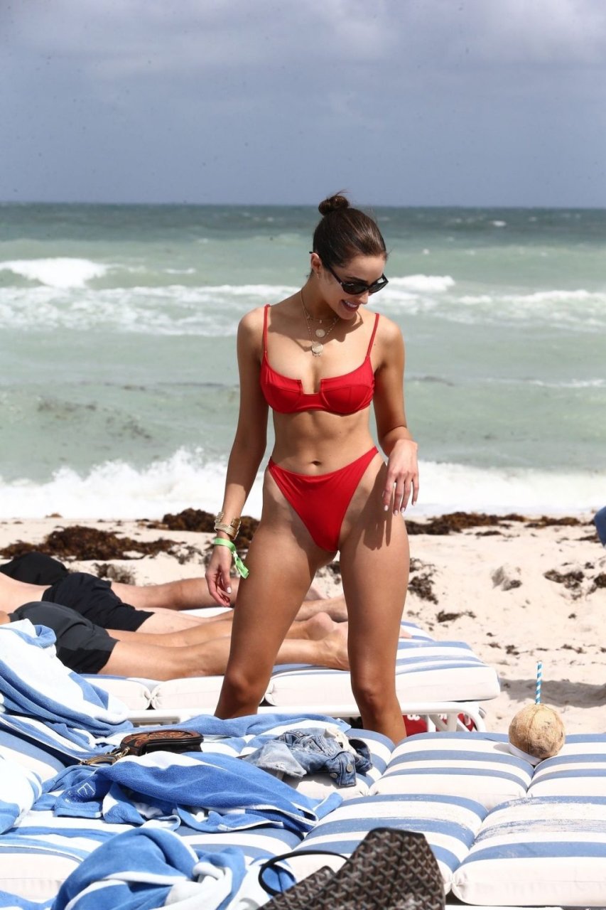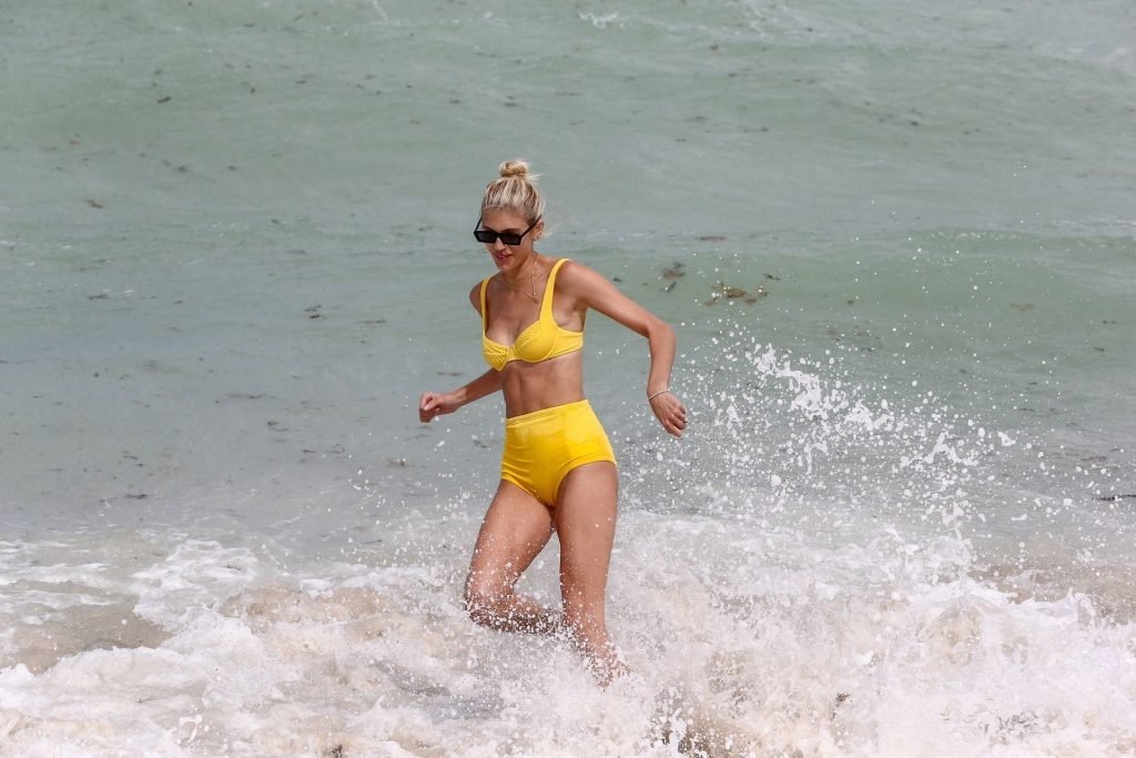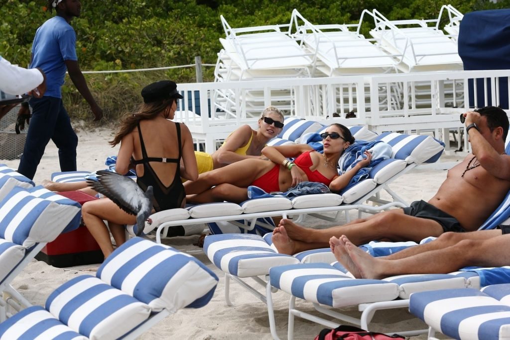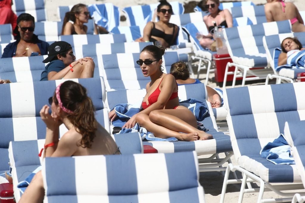 Las dos atraen bastante atención luciendo bikinis brillantes y escasos. Olivia lleva un bikini rojo de dos piezas mientras se recuesta en una silla de playa, mientras que Devon se pone un traje de baño amarillo para la diversión junto a la playa.