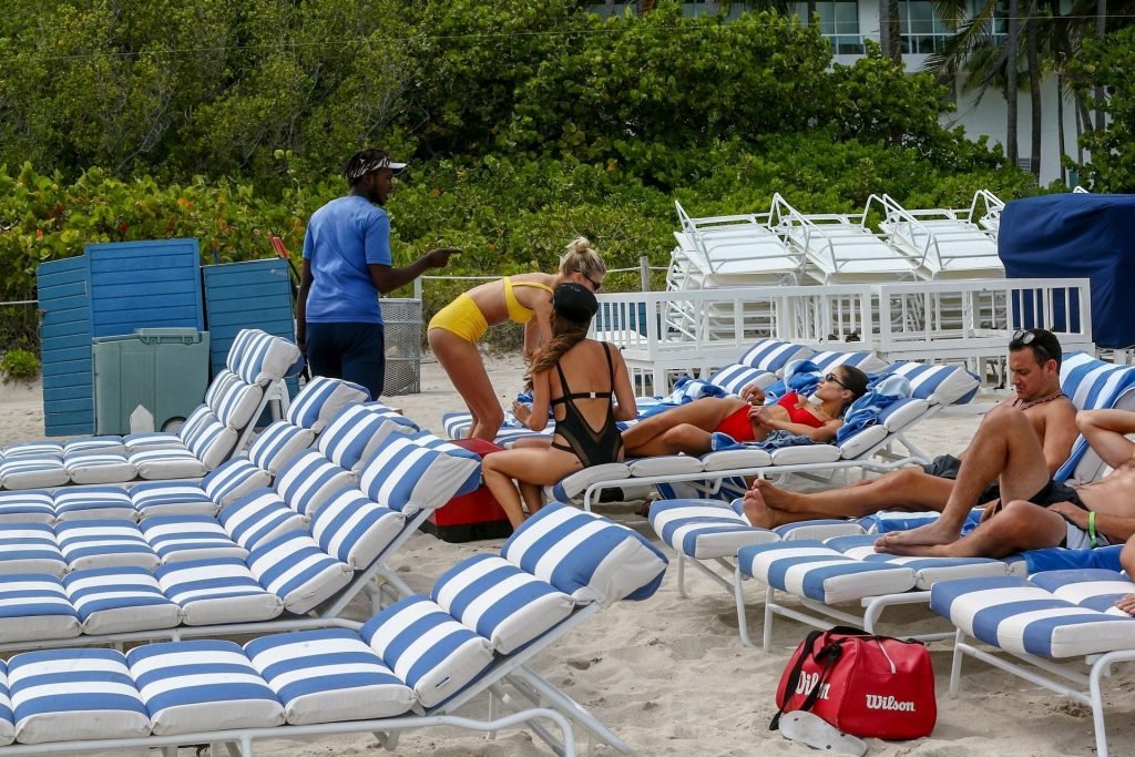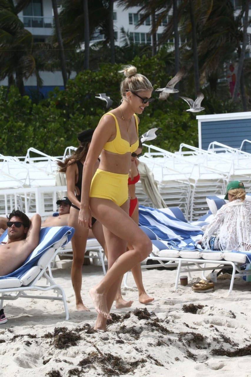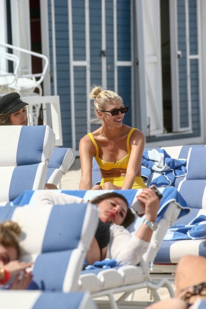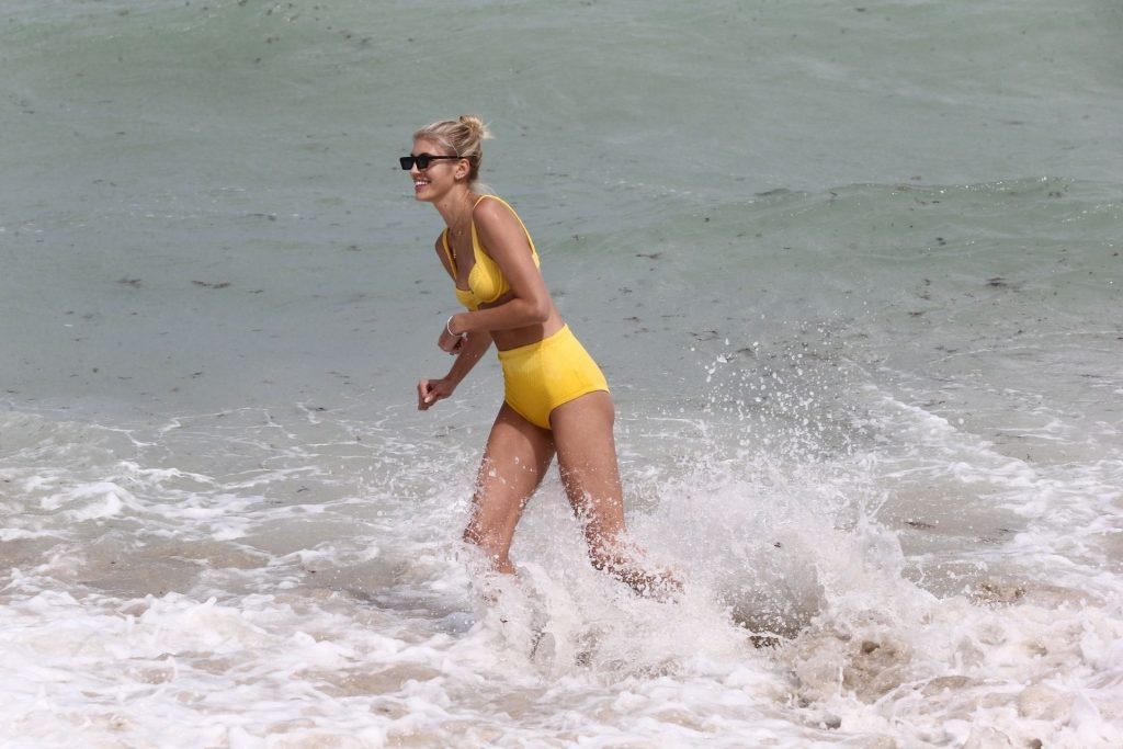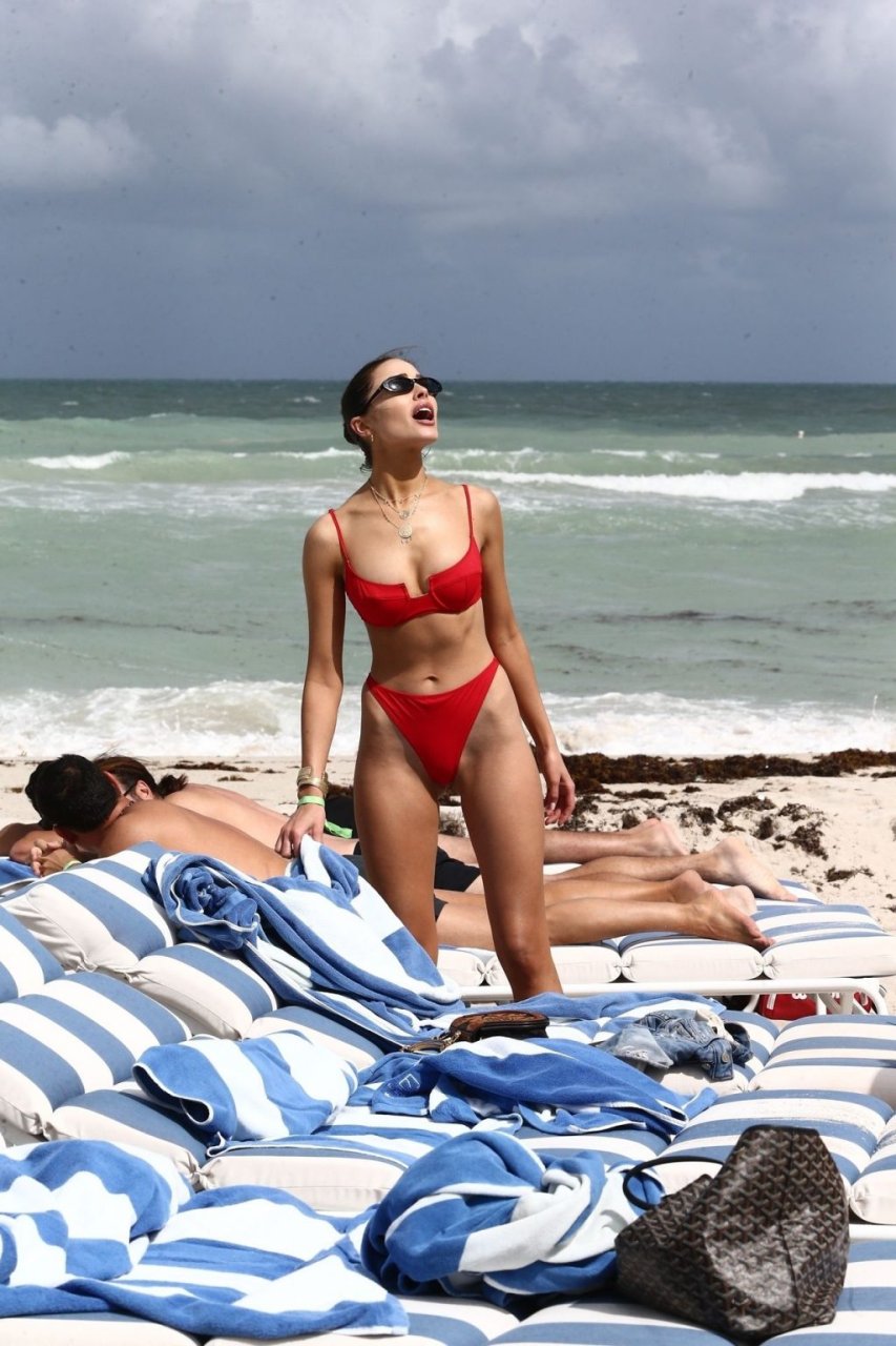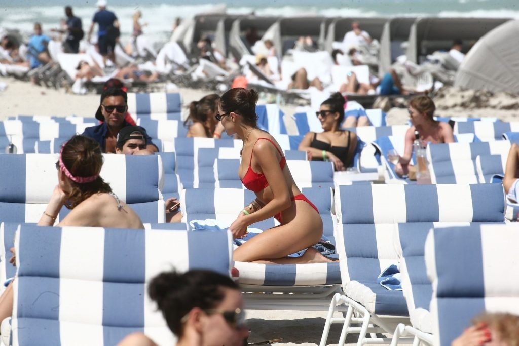 Las dos atraen bastante atención luciendo bikinis brillantes y escasos. Olivia lleva un bikini rojo de dos piezas mientras se recuesta en una silla de playa, mientras que Devon se pone un traje de baño amarillo para la diversión junto a la playa.